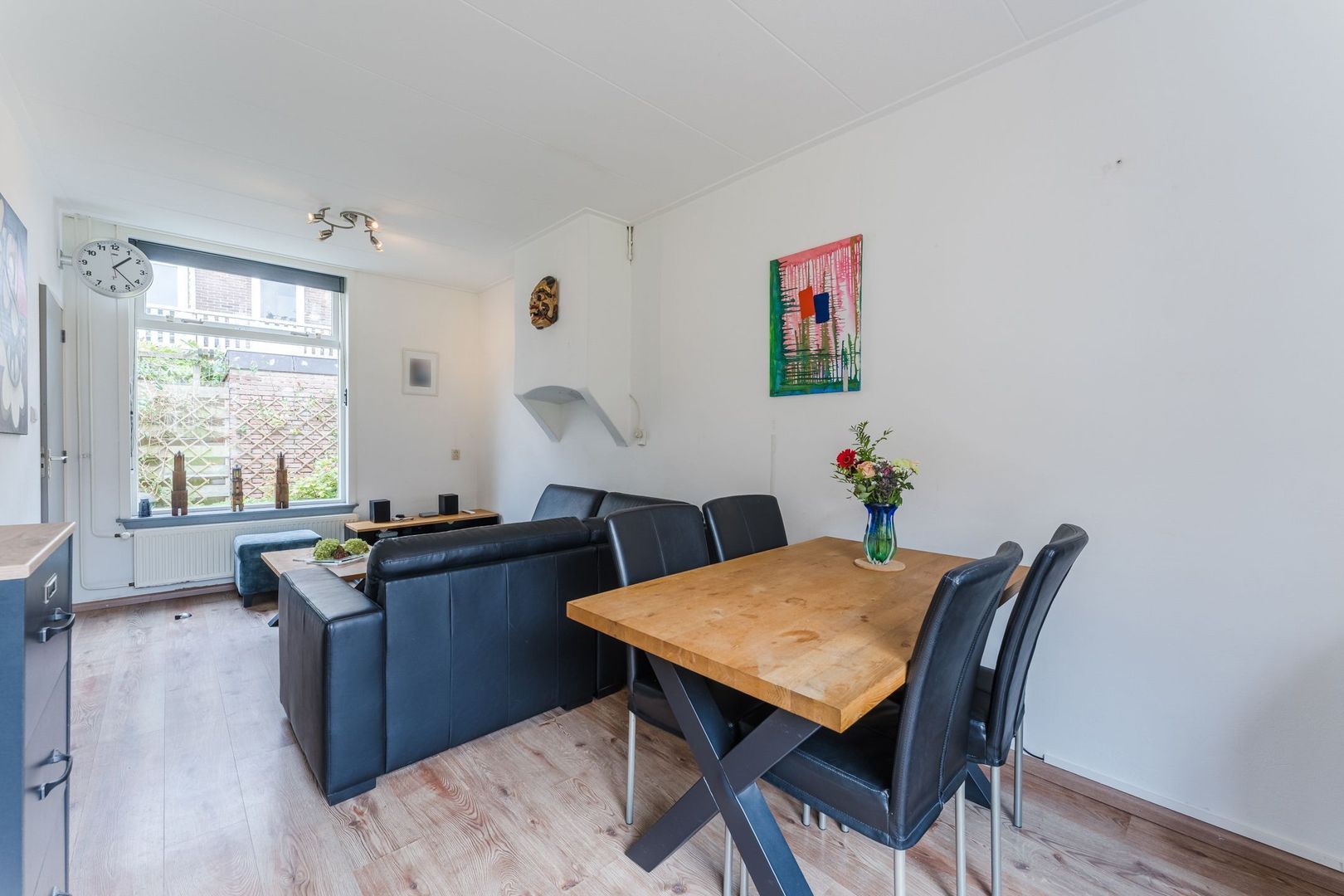 Entree via je eigen voortuin (enkele buren hebben recht van overpad) die uitermate geschikt is voor een gezellig zitje en siertuintje. Vanuit de hal, die ruimte biedt aan de groepenkast en kapstok, bereik je als eerst de badkamer met douchecabine, wastafel en toilet en vervolgens de woonkamer. De doorzon woonkamer kenmerkt zich door de fraaie plafond hoogte en grote raampartijen met prettig lichtinval. Dankzij het nieuwe schuifraam aan de achterzijde creëer je in de vensterbank ook een écht buitengevoel. De kamer is efficiënt ingedeeld met een zithoek aan de voorzijde en eethoek aan de achterzijde. Laatst genoemde grenst aan de open keuken in L-opstelling met de nodige apparatuur zoals een kooktoestel, vaatwasser en koelkast. Vanuit de woonkamer is de trapopgang naar boven toegankelijk met bergruimte en opstelplaats voor de wasmachine en droger.