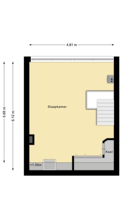 • Aantal kamers: 2 (waarvan 1 slaapkamer, derde kamer mogelijk);