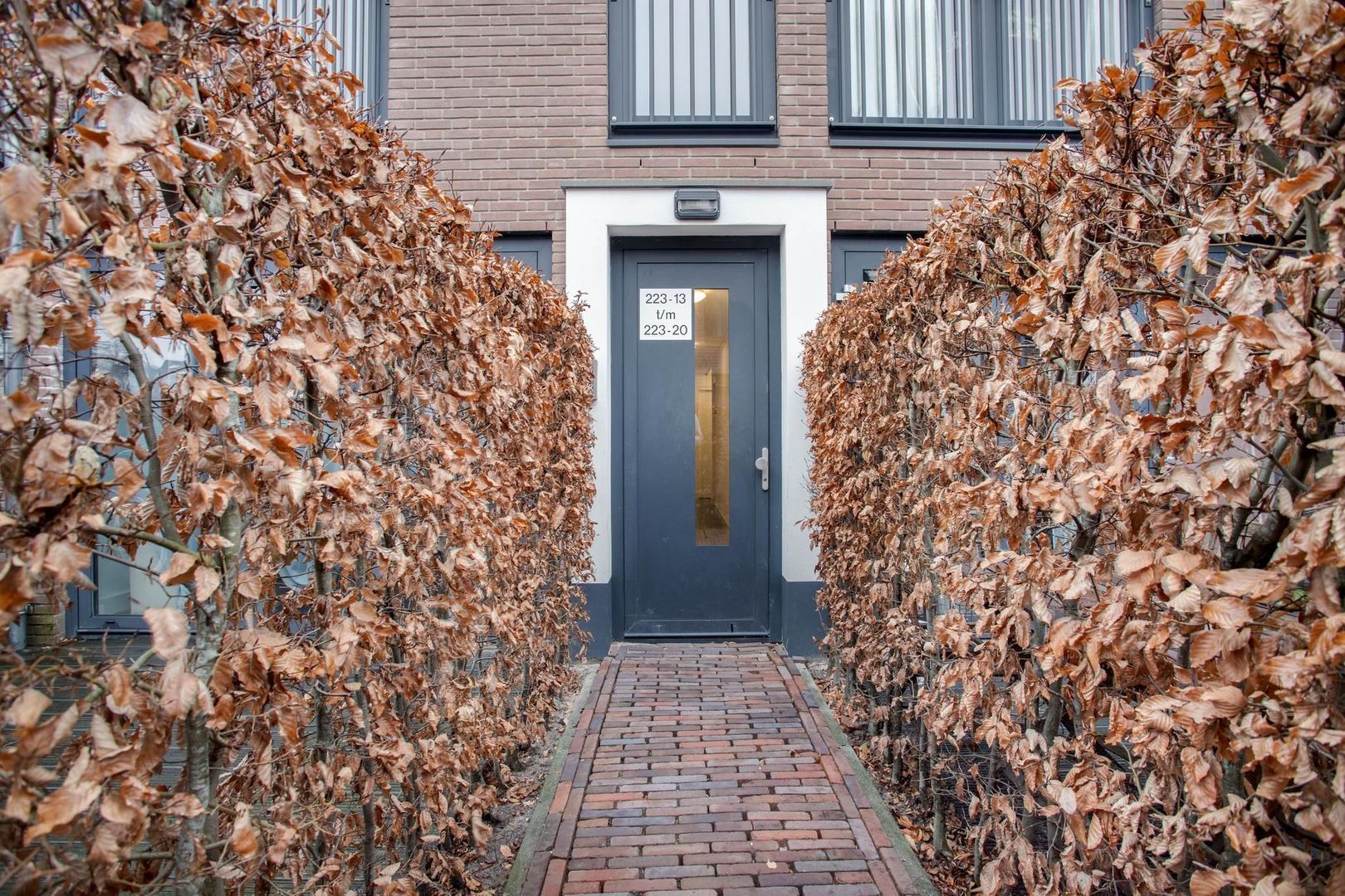 Vanaf de openbare weg bereik je de gebouwen die toebehoren tot het complex Jutfaseweg 223. Via de gezamenlijke en keurig onderhouden binnentuin waar je gezellige zithoekjes hebt bereik je het entree van het woonblok.