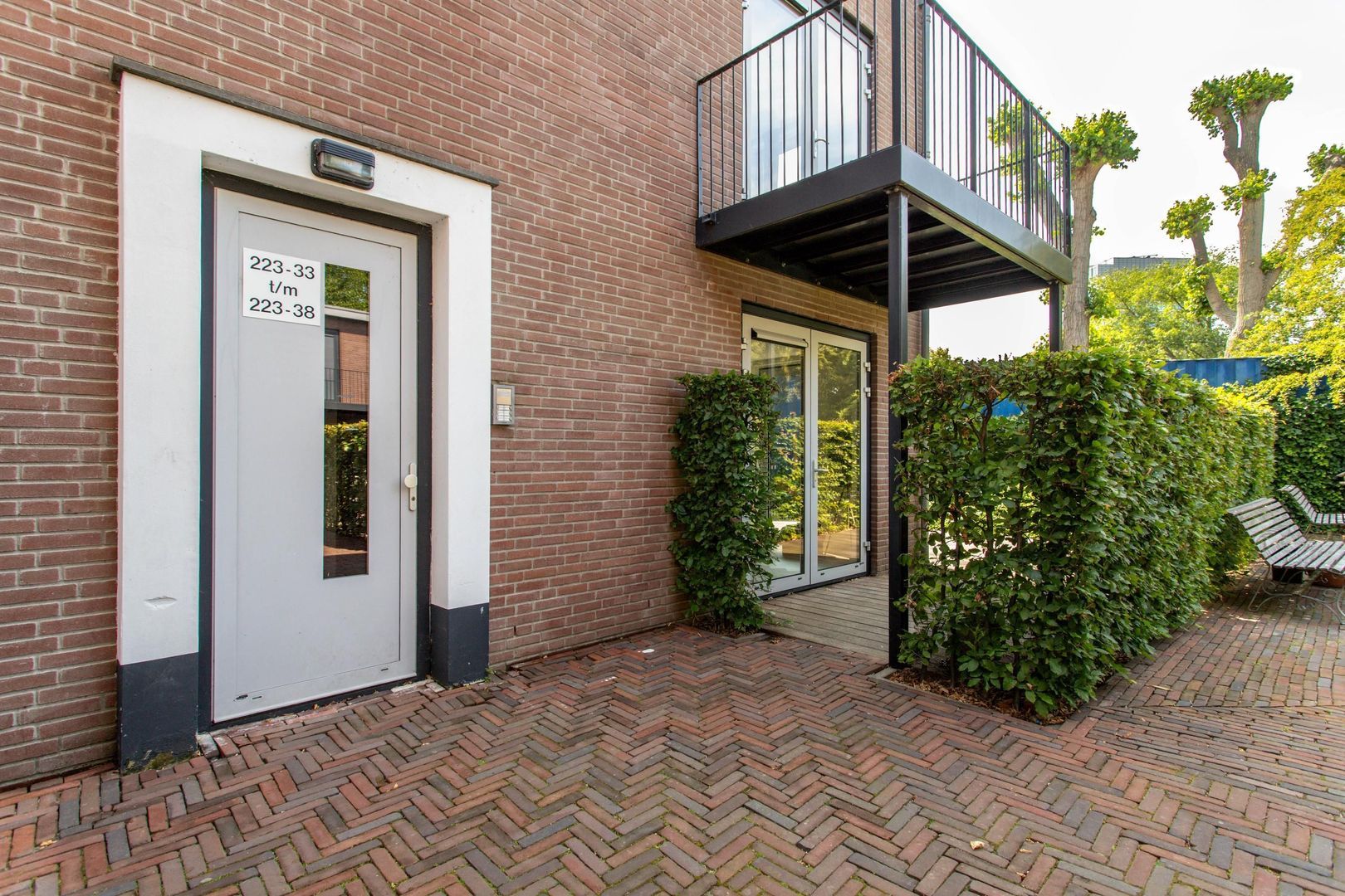 Vanaf de openbare weg bereik je de gebouwen die toebehoren tot het complex Jutfaseweg 223. Via de gezamenlijke en keurig onderhouden binnentuin waar je gezellige zithoekjes hebt bereik je het entree van het gebouw met centrale hal.