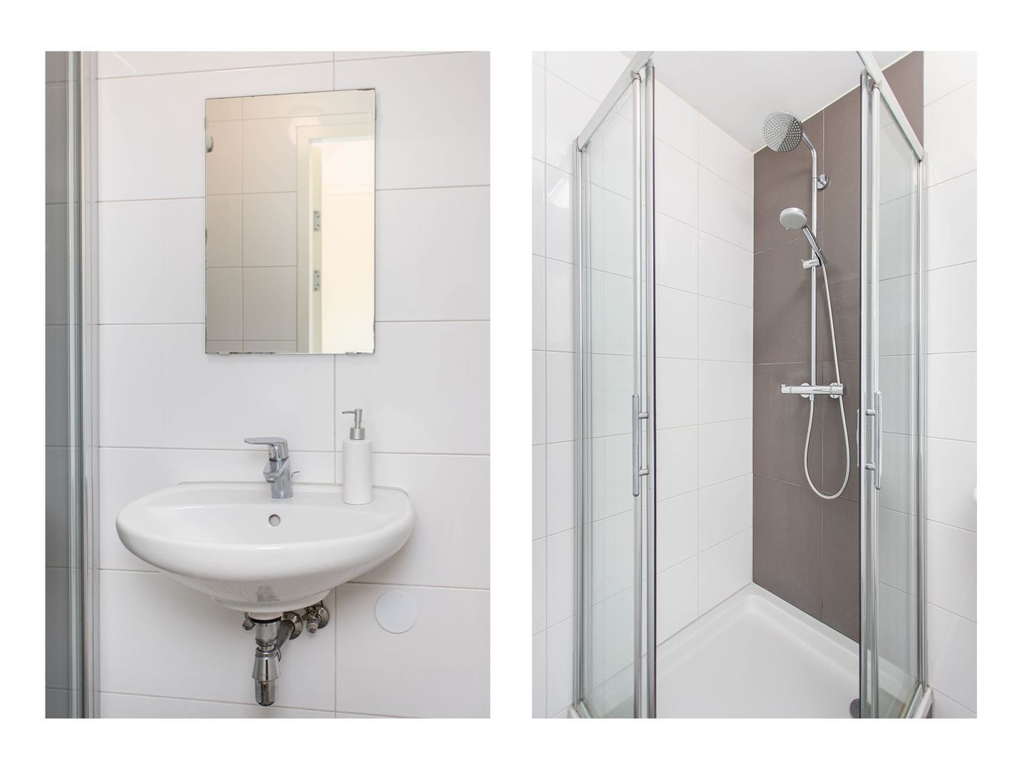 De moderne keuken is strak afgewerkt en voorzien van diverse inbouwapparatuur, waaronder een koelkast, vriezer, oven, gasfornuis, afzuigkap en vaatwasser. Vanuit de woonkamer heb je toegang tot de ruime en lichte slaapkamer. De nette badkamer is uitgerust met een douche, wastafel en toilet. De wasmachine bevindt zich naast de keuken in een aparte kast.