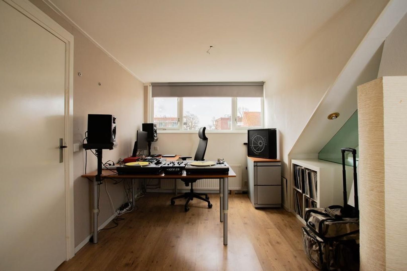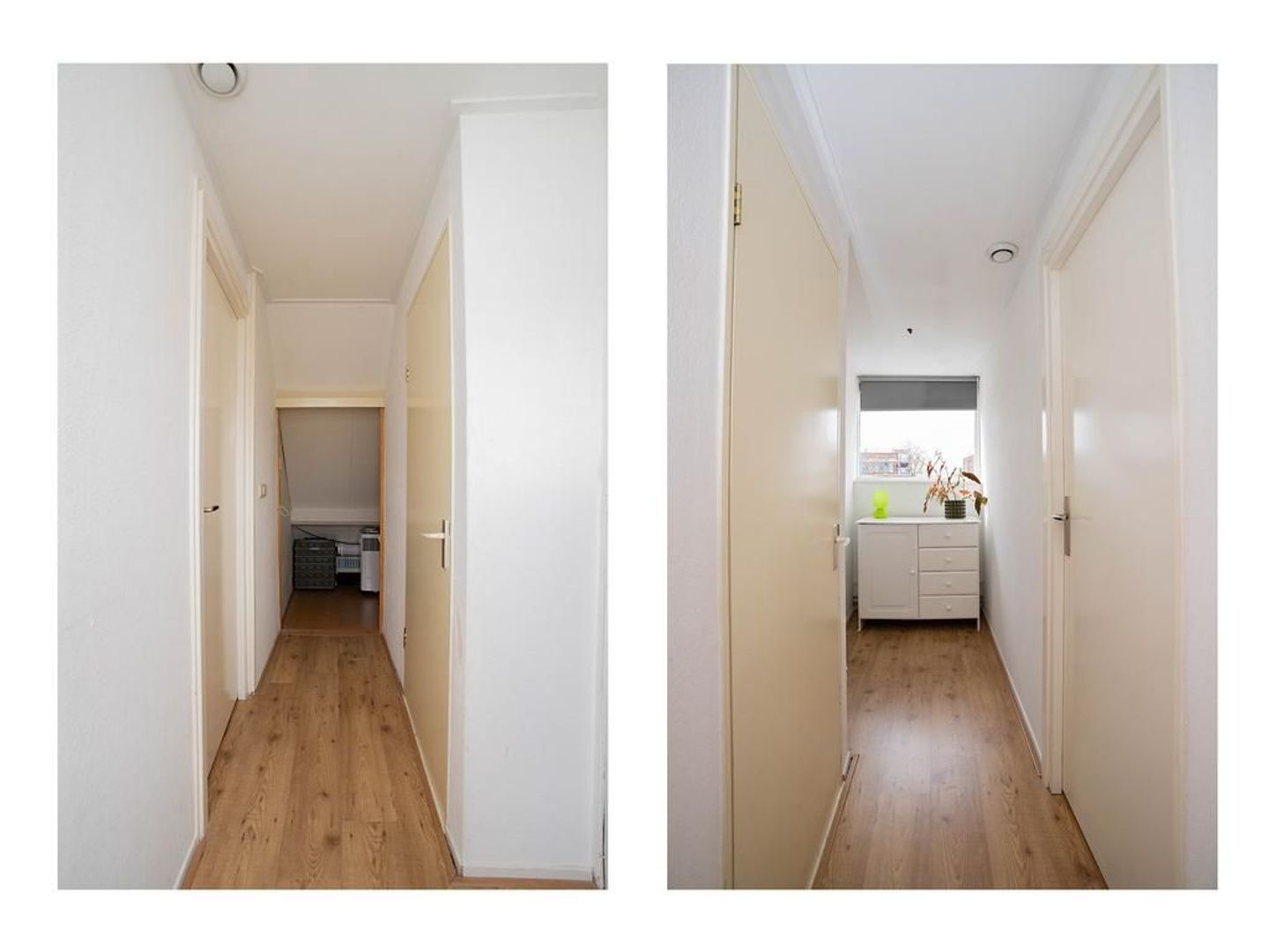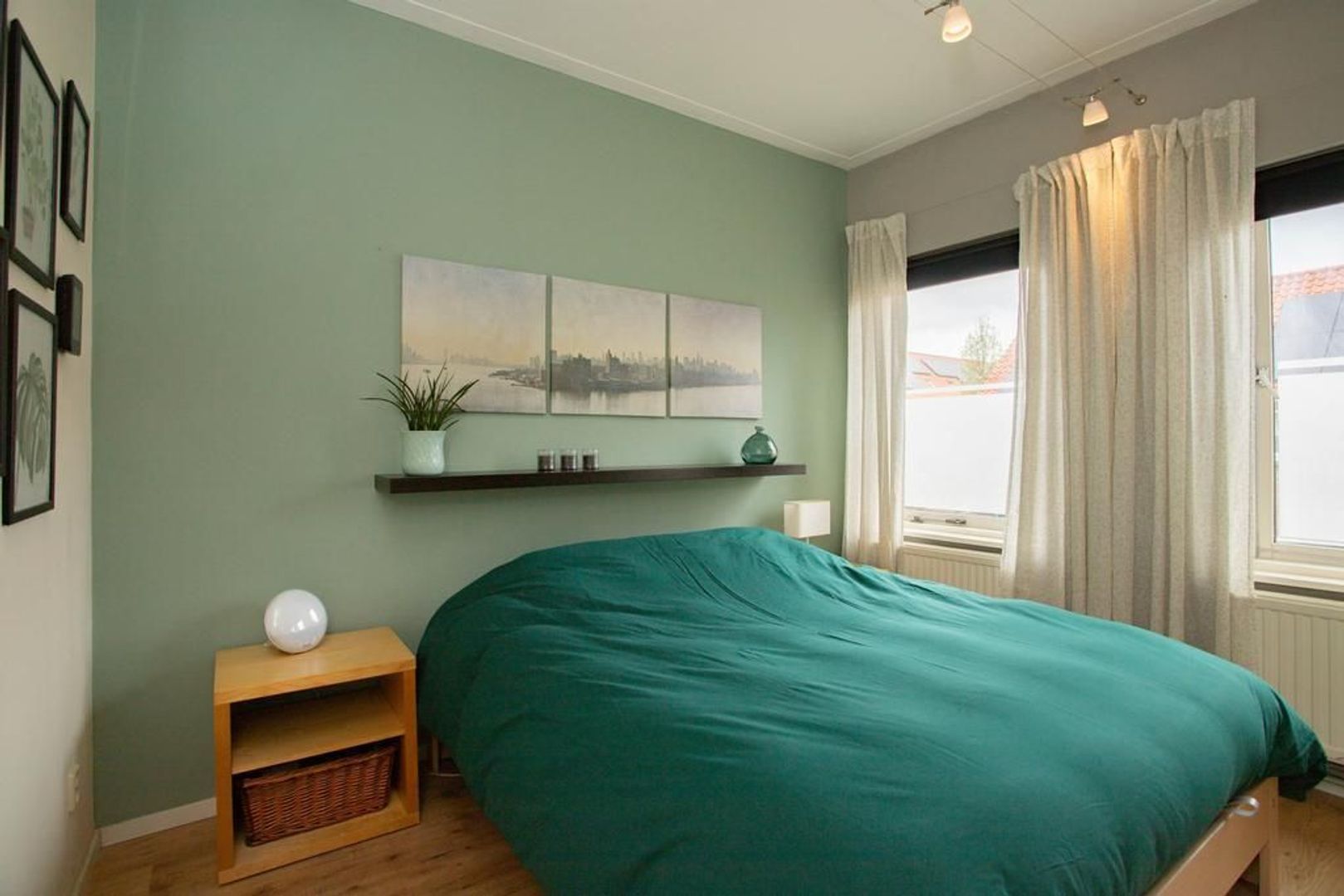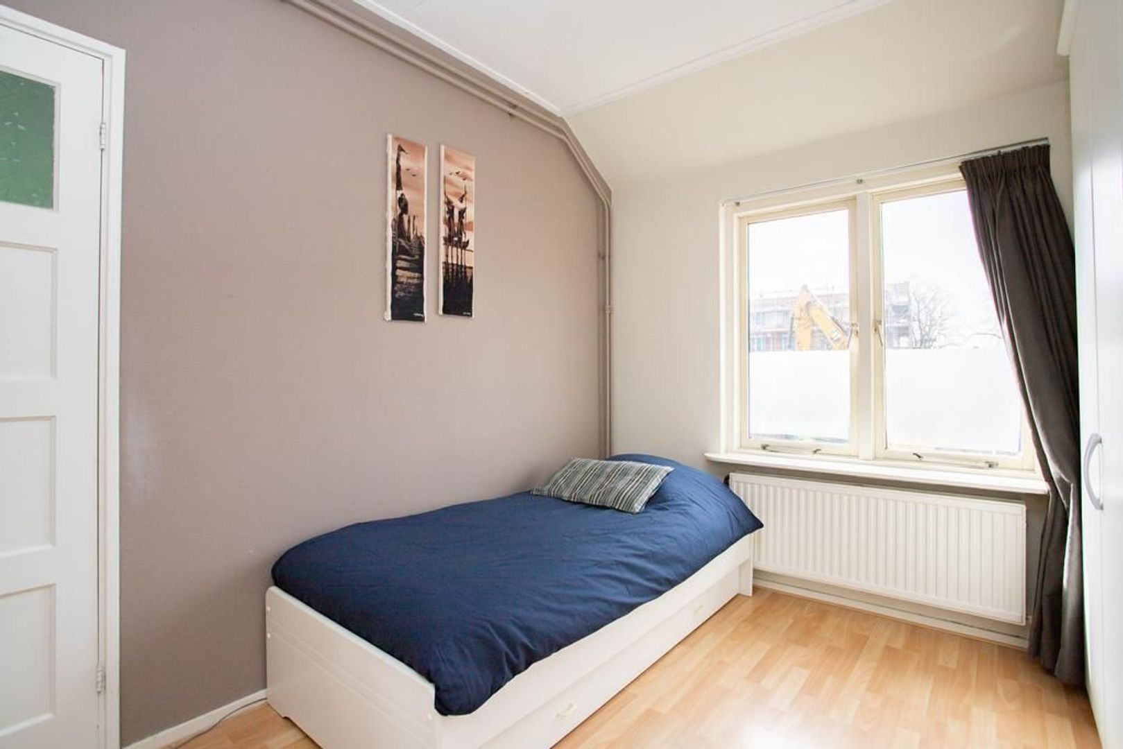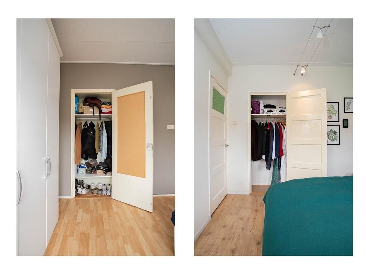 Via de vaste trap bereik je de eerste verdieping, waar twee fijne slaapkamers en de badkamer zijn gelegen. De eerste slaapkamer aan de voorzijde van de woning is zeer ruim en heeft een inbouwkast. Naast ruimte voor een groot tweepersoonsbed biedt deze kamer ook mogelijkheden voor een werkplek of inloopkast. De tweede slaapkamer aan de achterzijde is eveneens ruim en heeft een inbouwkast. De badkamer is voorzien van een ligbad met douche, wastafel en aansluitingen voor witgoed. Vanuit de badkamer heb je toegang tot het balkon, een extra buitenruimte met vrij uitzicht over de buurt.