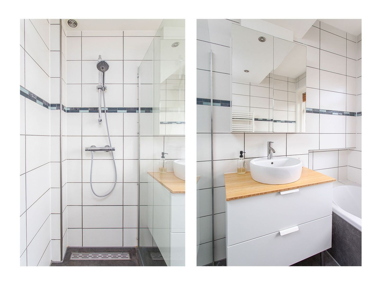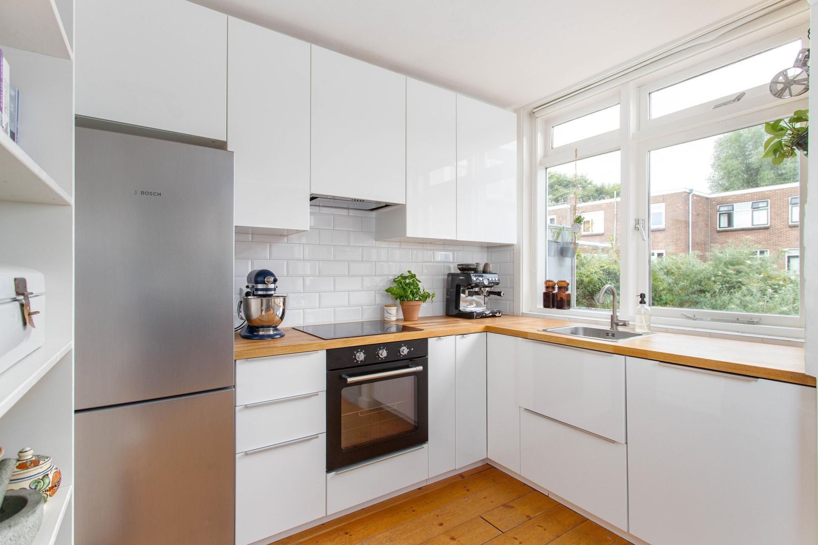 De woonkamer is licht, voorzien van een houten vloer en openslaande deuren naar het balkon. De open keuken is het middelpunt van het huis en leent zich ideaal om heerlijk te tafelen met vrienden en familie. Op de bovenverdieping zijn twee ruime slaapkamers, een extra (werk)kamer en een badkamer met ligbad en inloopdouche. Er is ook een aparte wasruimte.