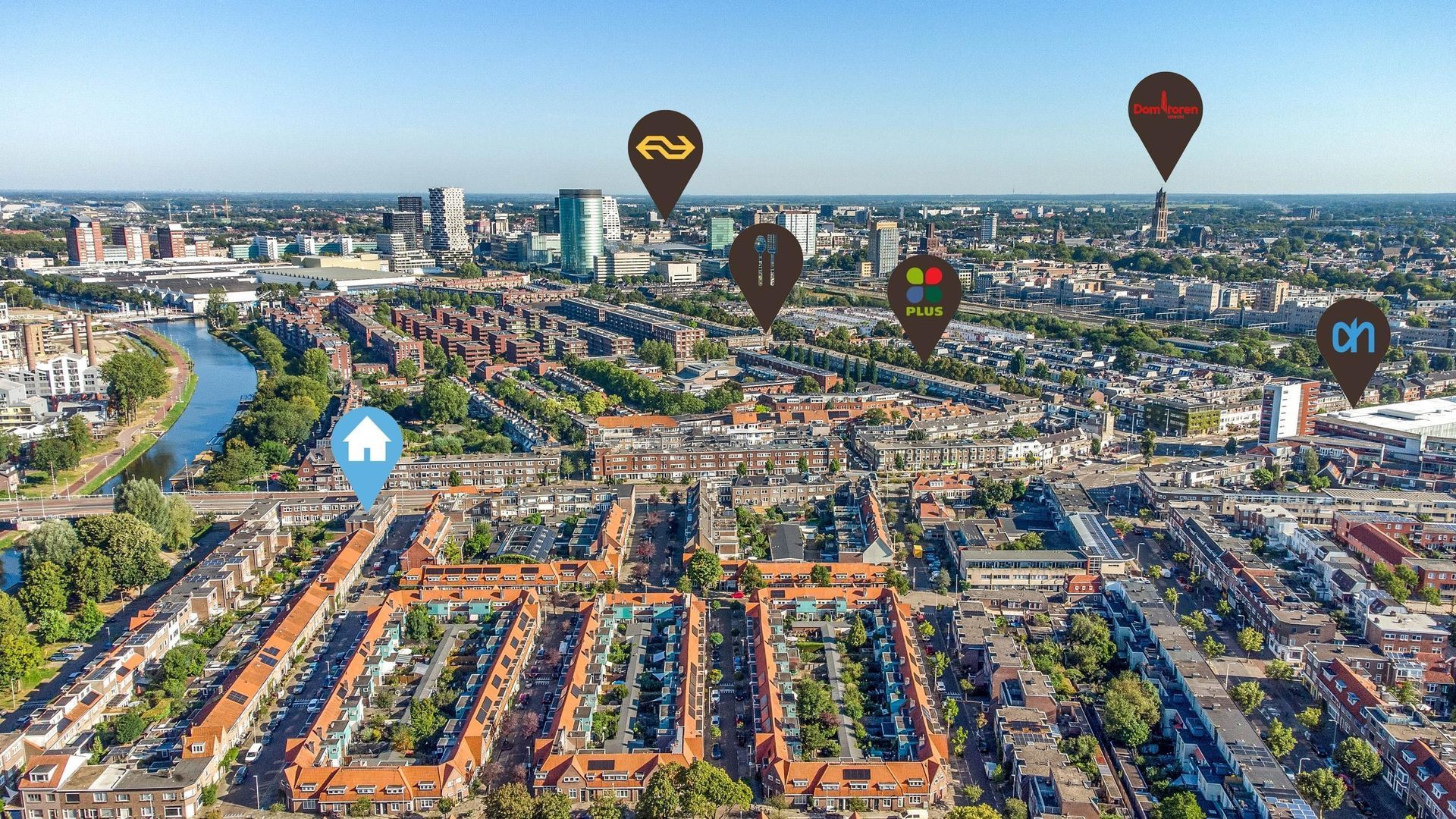 De woning ligt in een autoluwe straat, met voorzieningen als winkels, horeca en openbaar vervoer op loopafstand. Het centrum van Utrecht is binnen enkele minuten per fiets bereikbaar. Ook de uitvalswegen richting snelwegen zijn goed te bereiken.