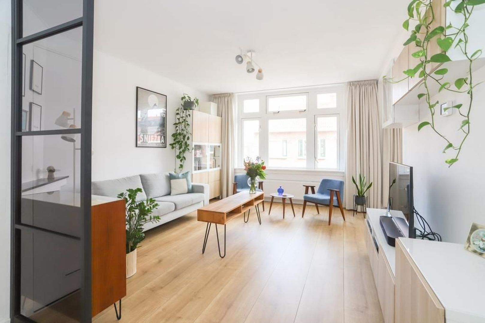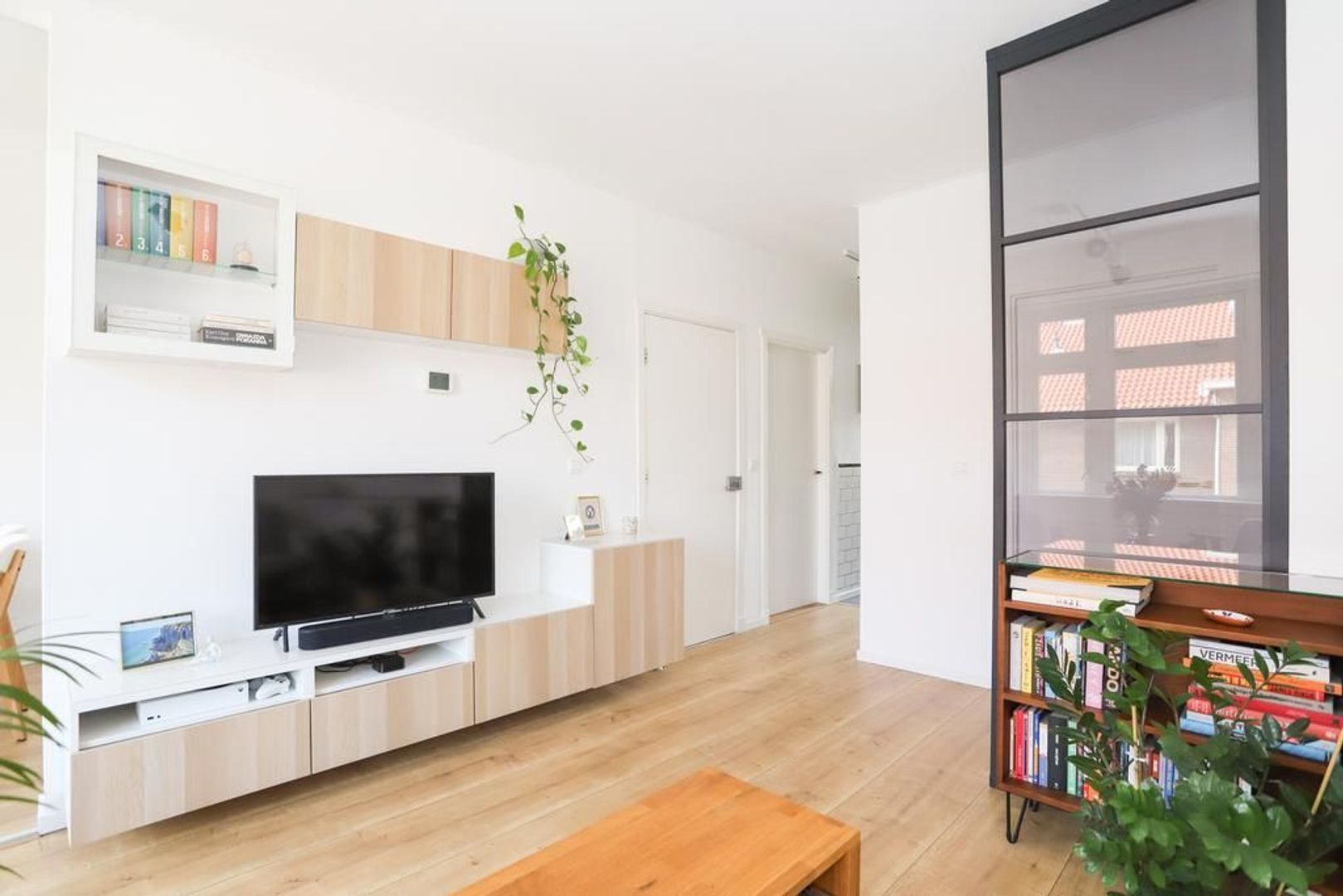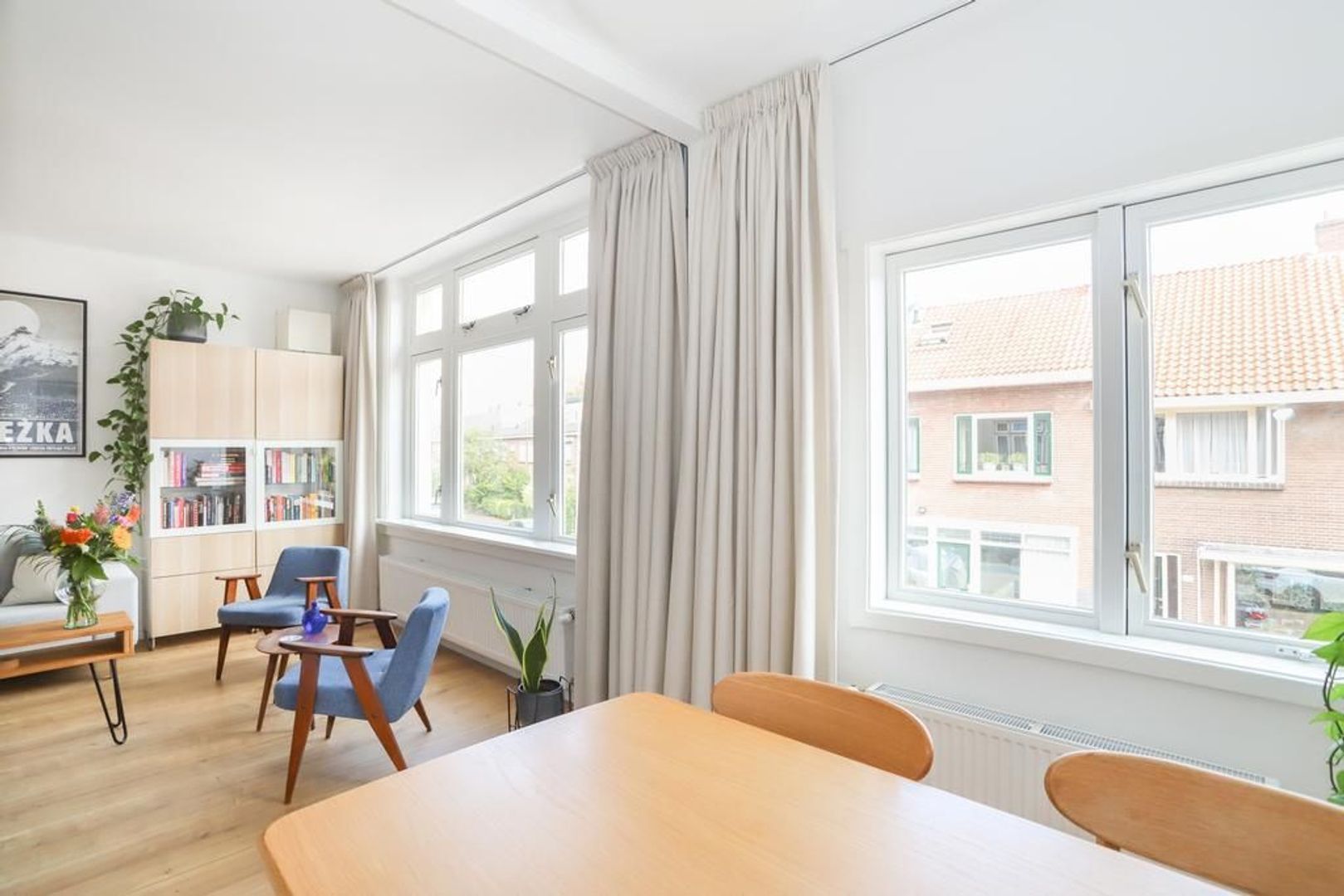 Eerste verdieping: Aan de voorzijde van de woning is de heerlijk lichte en ruime woon- en eetkamer gelegen. Door de verschillende raampartijen komt er veel natuurlijk daglicht binnen. In 2019 is er een nette laminaatvloer gelegd en zijn de wanden voorzien van schildersbehang. Aan de achterzijde van de woning is de moderne keuken aanwezig die voorzien is van inbouwapparatuur zoals een inductiekookplaat, afzuigkap, koel-vriescombinatie en vaatwasser. Verder is de keuken voorzien van een plavuizen (2020) en geeft het toegang tot het balkon. Het balkon is gelegen op het zuiden en biedt een fijn terras aan.