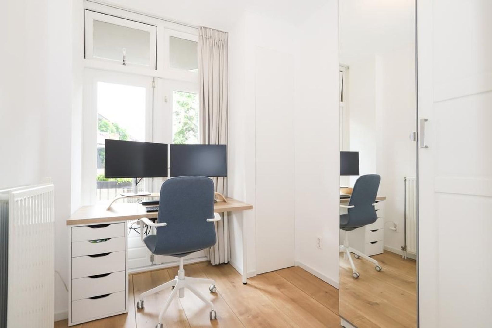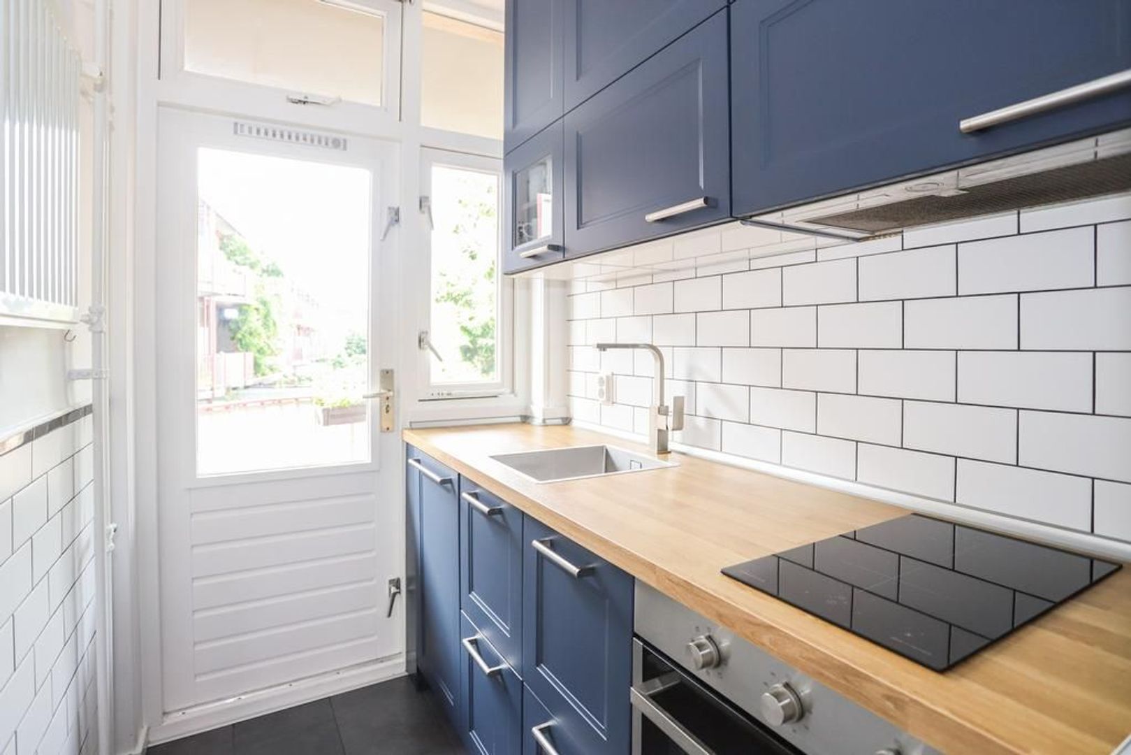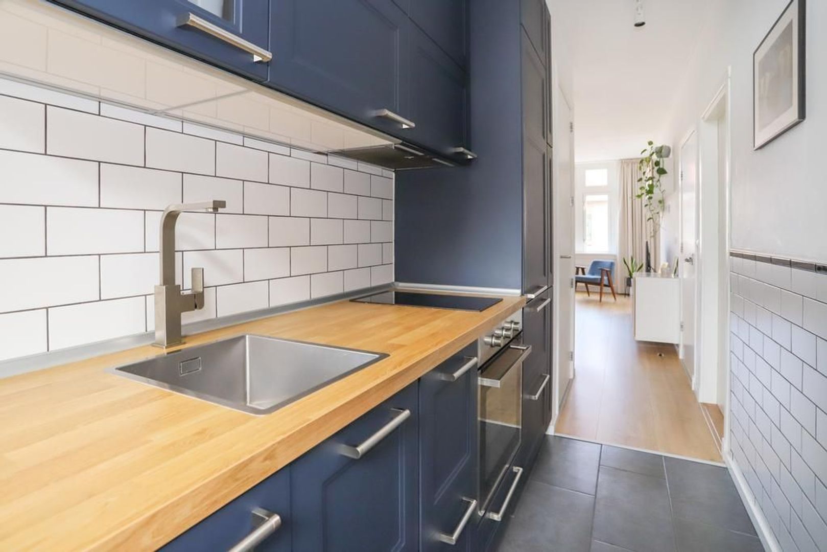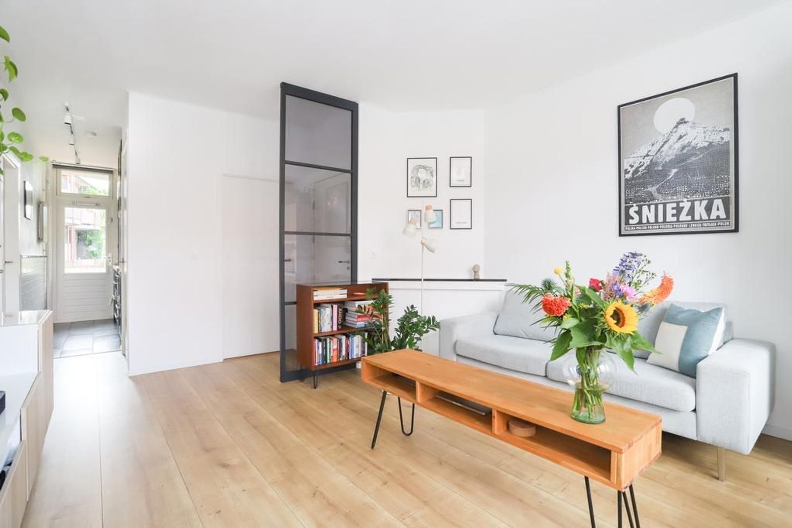Eerste verdieping: Aan de voorzijde van de woning is de heerlijk lichte en ruime woon- en eetkamer gelegen. Door de verschillende raampartijen komt er veel natuurlijk daglicht binnen. In 2019 is er een nette laminaatvloer gelegd en zijn de wanden voorzien van schildersbehang. Aan de achterzijde van de woning is de moderne keuken aanwezig die voorzien is van inbouwapparatuur zoals een inductiekookplaat, afzuigkap, koel-vriescombinatie en vaatwasser. Verder is de keuken voorzien van een plavuizen (2020) en geeft het toegang tot het balkon. Het balkon is gelegen op het zuiden en biedt een fijn terras aan.