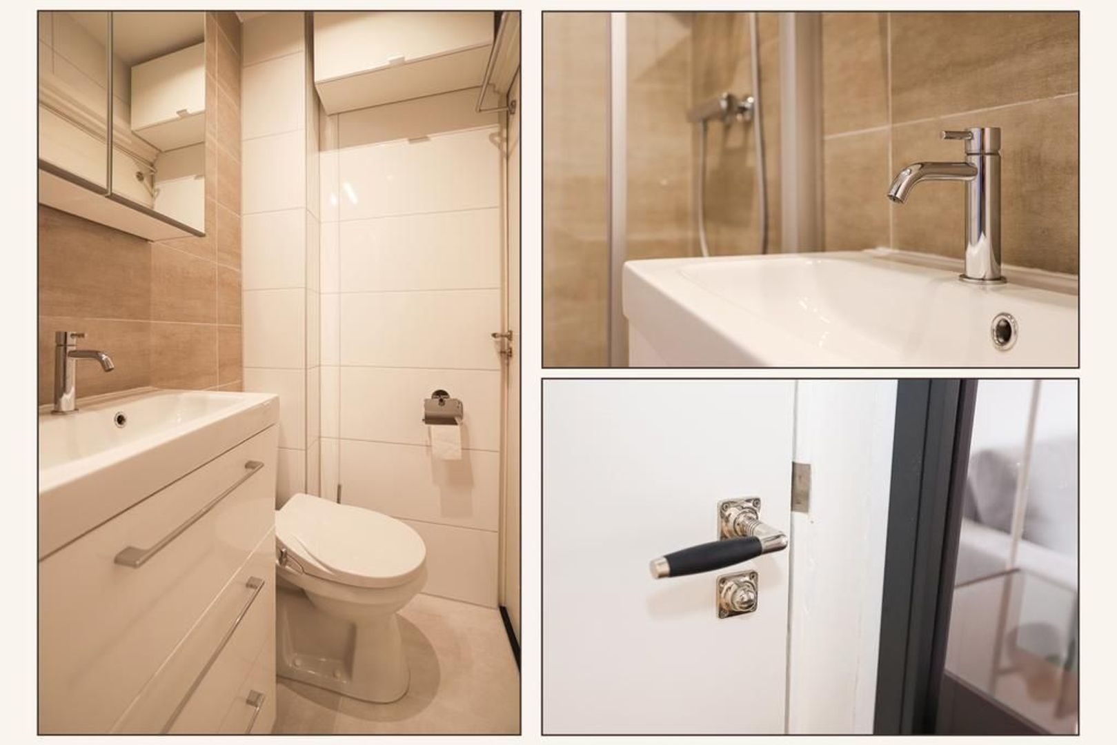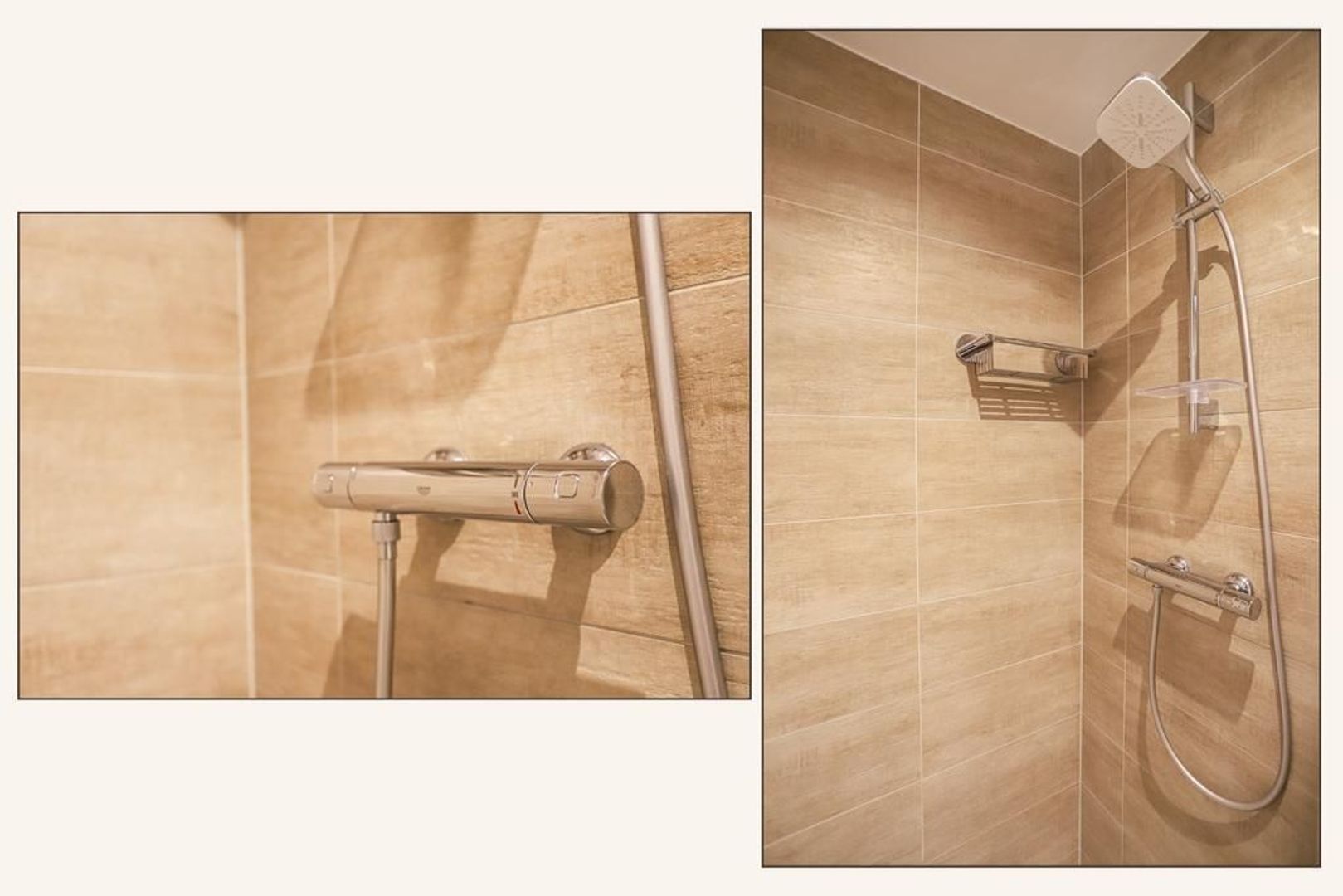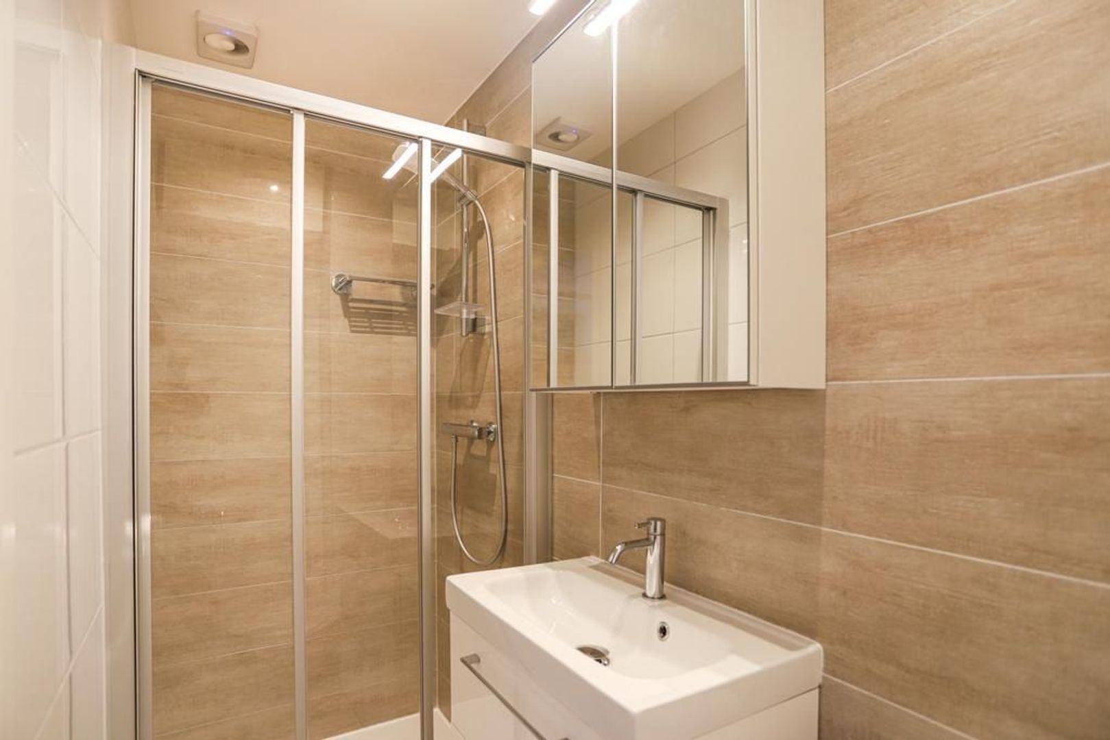 Vanuit de woonkamer is de badkamer te bereiken die uitgevoerd is met modern tegelwerk en voorzien is van een toilet, inloopdouche, wastafel en een wastafelmeubel.