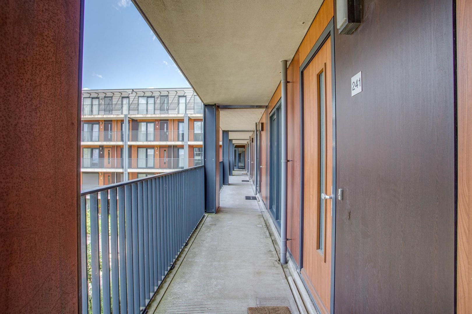 Via de galerij bereik je de woning. Vanaf de galerij heb je een mooi uitzicht over de gezamenlijke binnentuin. De binnentuin is fraai aangelegd en dient als een extra buitenruimte naast je eigen balkon. Je komt de woning binnen in de ruime hal met separaat toilet en meterkast. De hal geeft toegang tot de woonkamer. De woonkamer heeft een praktische inrichting en wordt dankzij de grote raampartijen voorzien van een fijne lichtinval. In de woonkamer is voldoende ruimte voor het creëren van een gezellige zithoek.