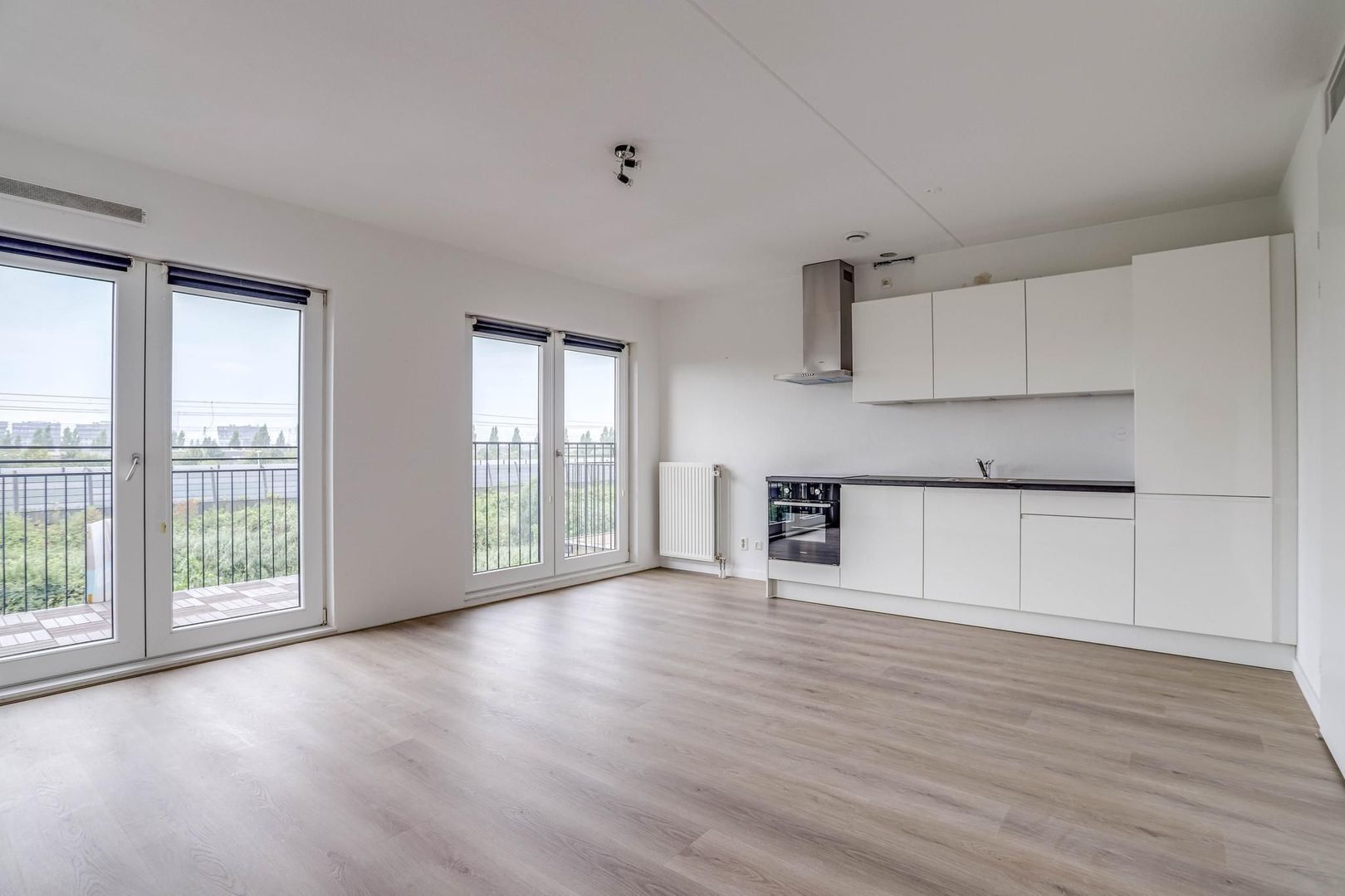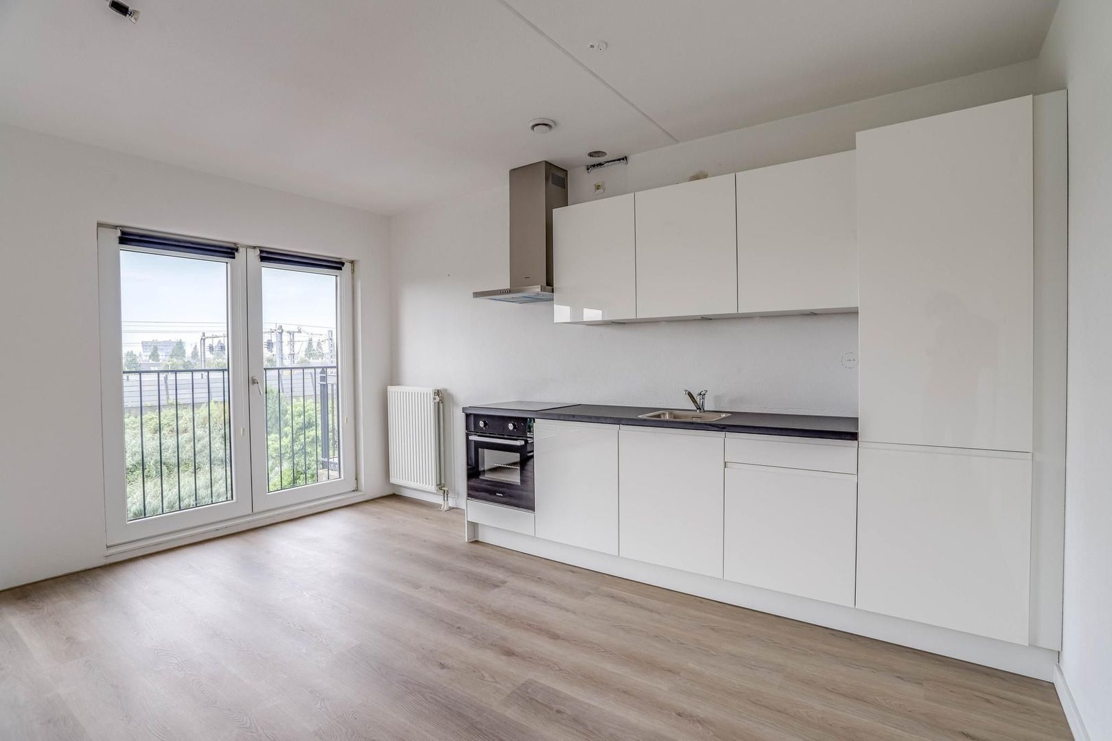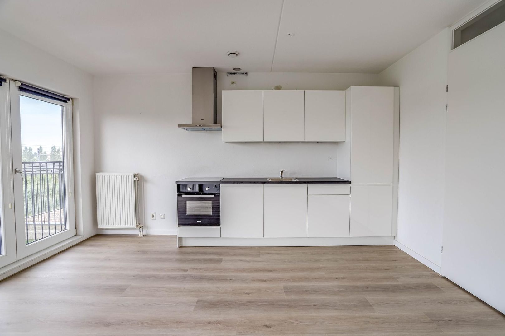 De keuken is recent vernieuwd (2024) en heeft een nette uitstraling. De keuken is voorzien van het volgende inbouwapparatuur: inductie kookplaat, afzuigkap, oven, koelkast en vriezer. Naast de keuken is voldoende ruimte om een eettafel te plaatsen. Via de openslaande deuren is het balkon toegankelijk. Het balkon is gelegen op het zuiden. Hier kun je op zonnige dagen heerlijk genieten van de buitenlucht.
