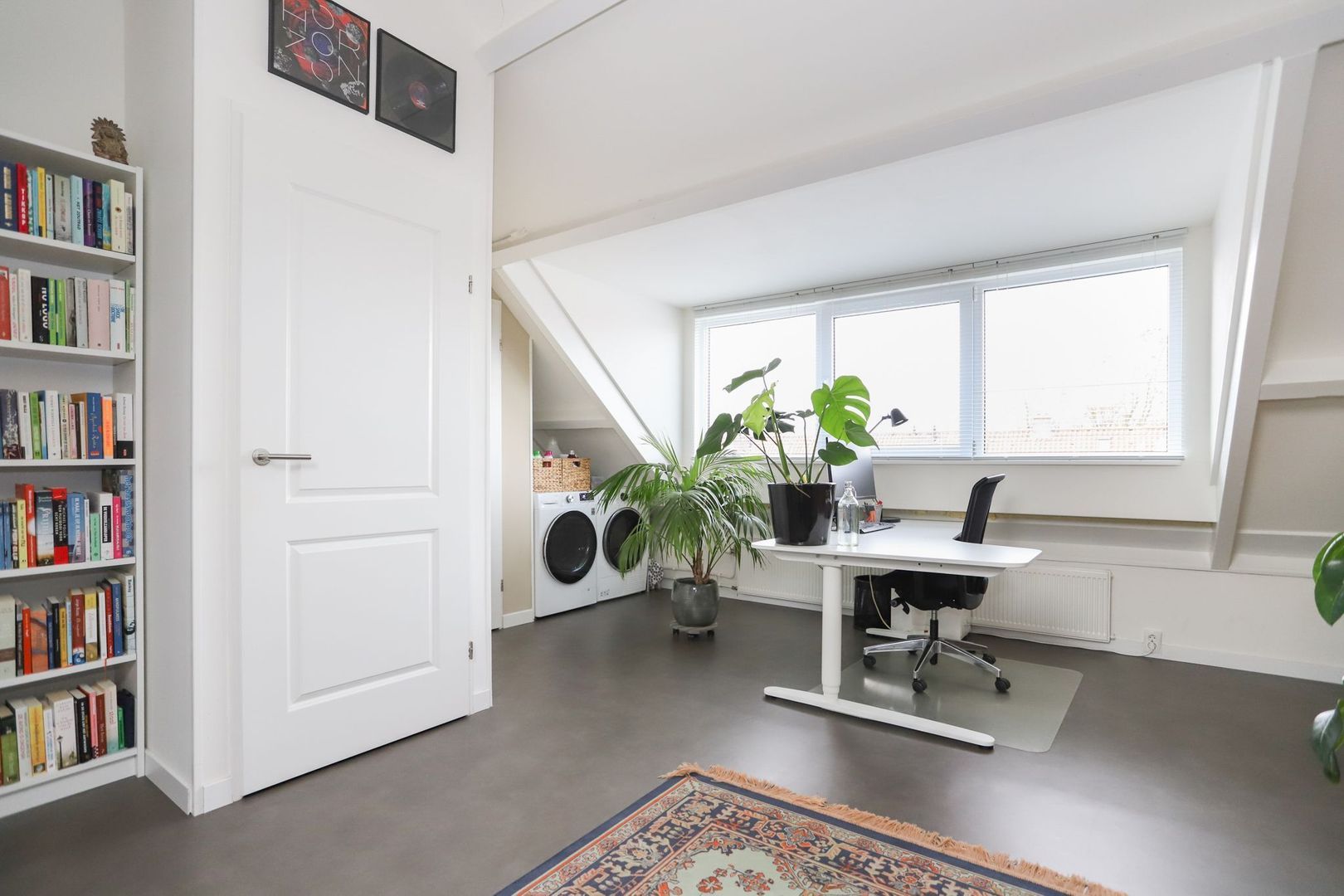 Tweede verdieping: Overloop met toegang tot de ruime vierde slaapkamer. Deze is momenteel in gebruik als werkkamer/ logeerkamer en is heerlijk ruim. Verder zijn hier de witgoedaansluitingen aanwezig.