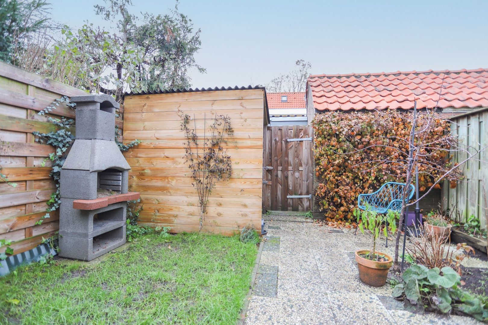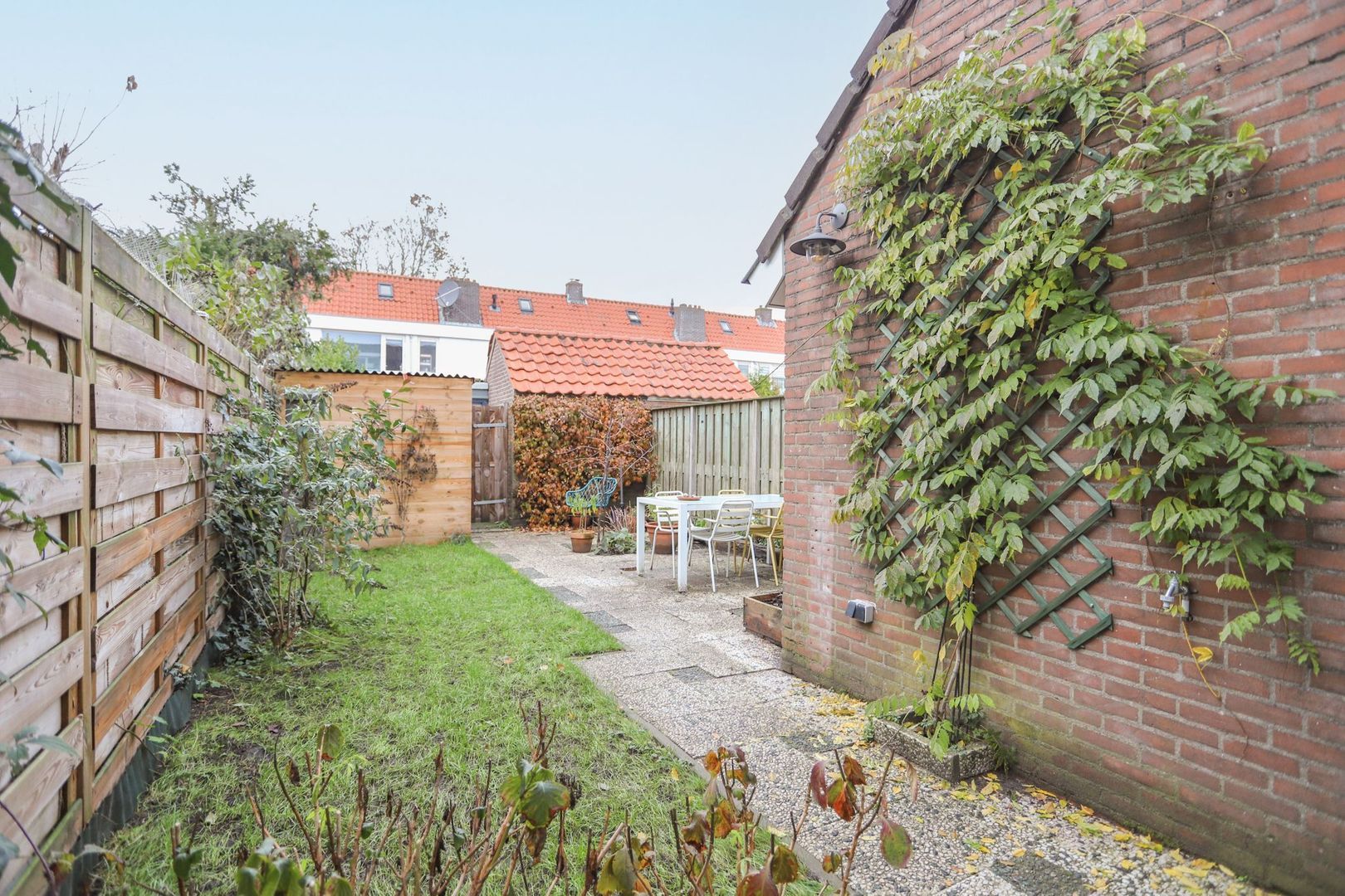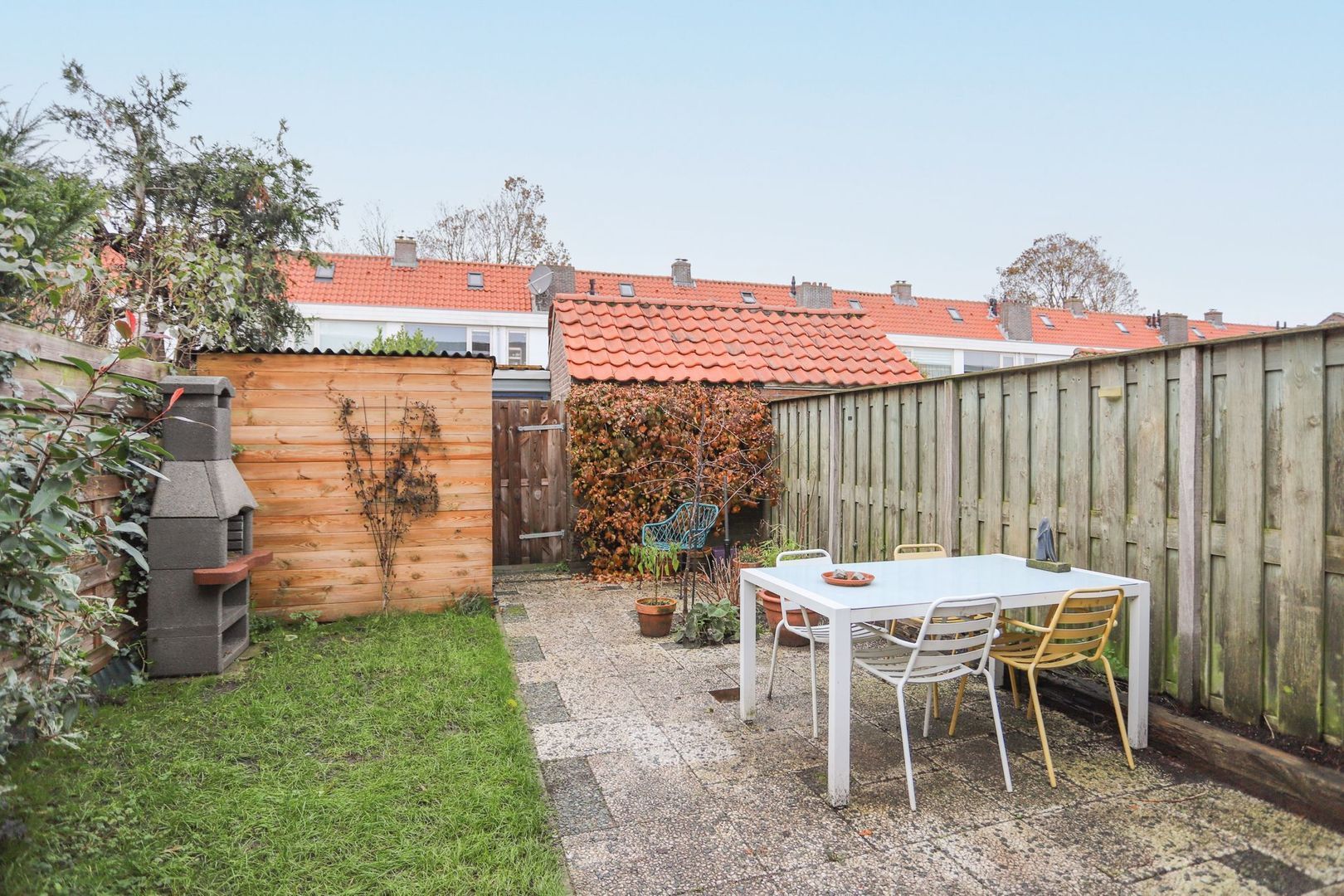De achtertuin is te betreden via de eethoek of de bijkeuken en is gelegen op het noordwesten. Door de diepte is hier in de zomer de zon van ca. 10.00 uur tot ca. 18.30 uur aanwezig.