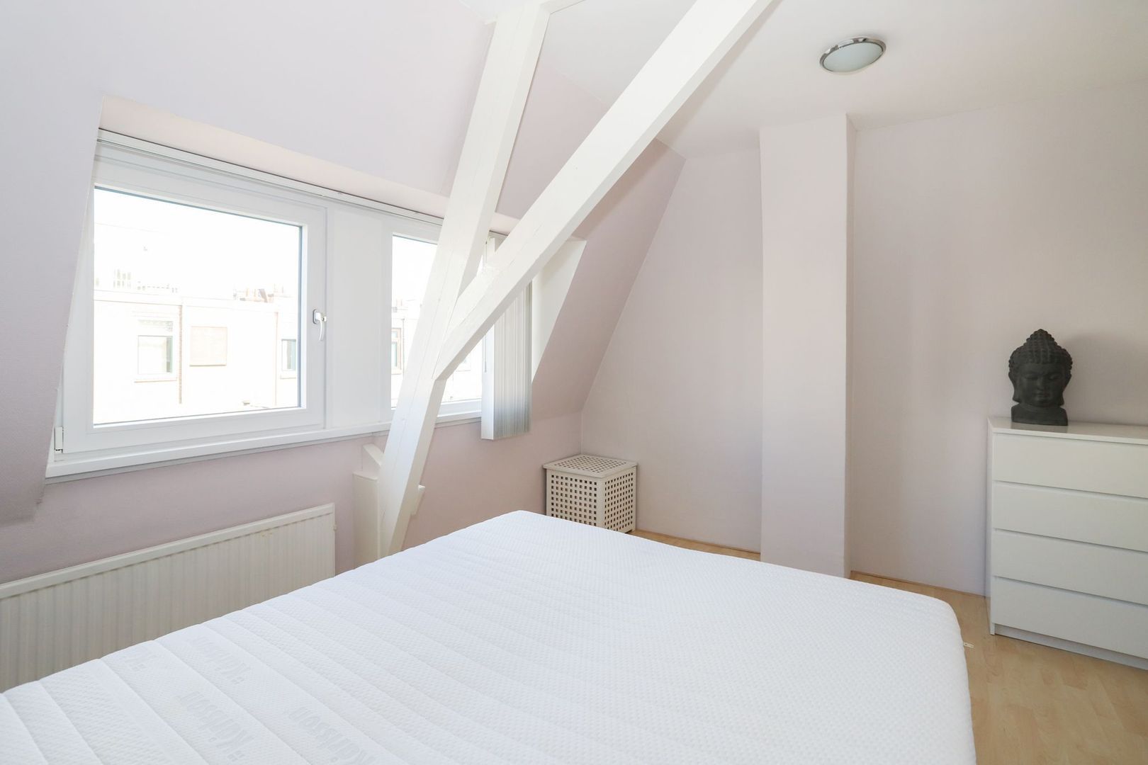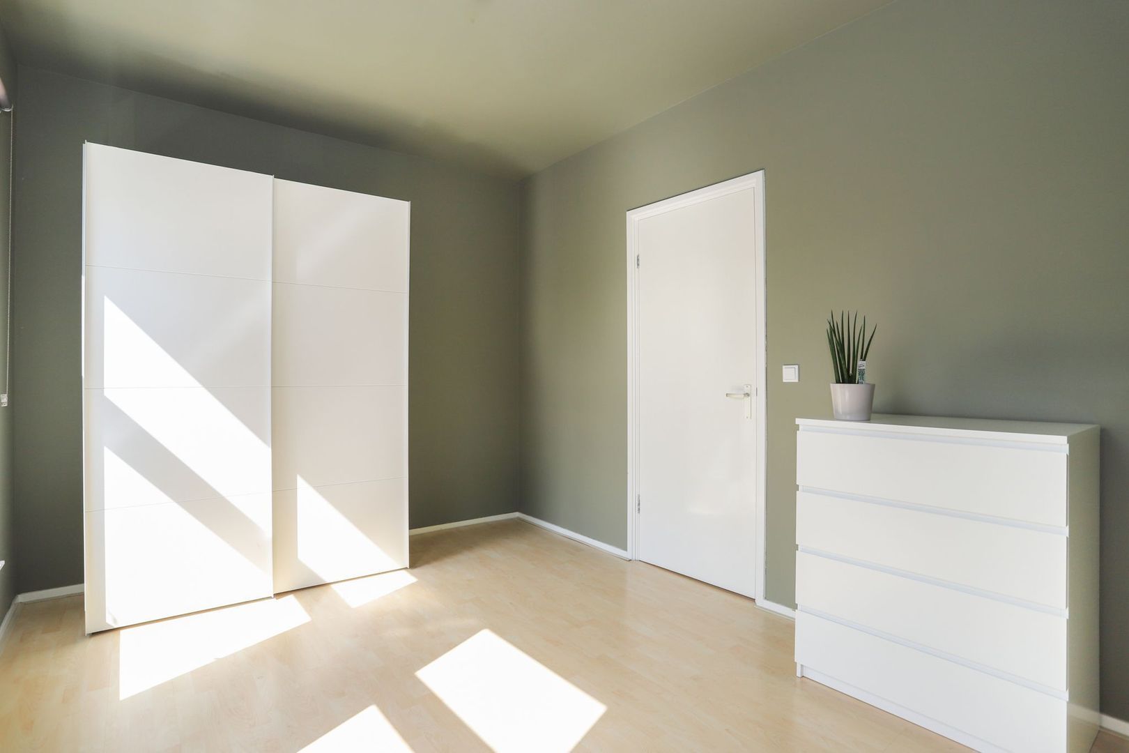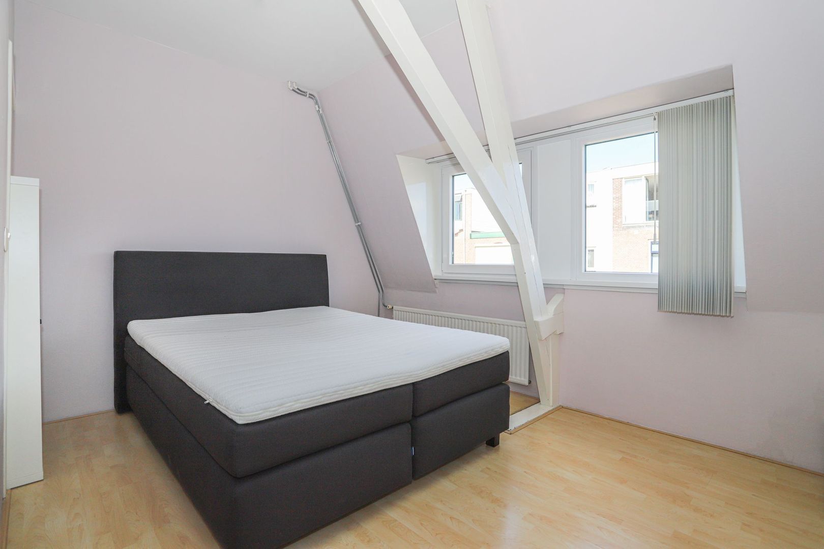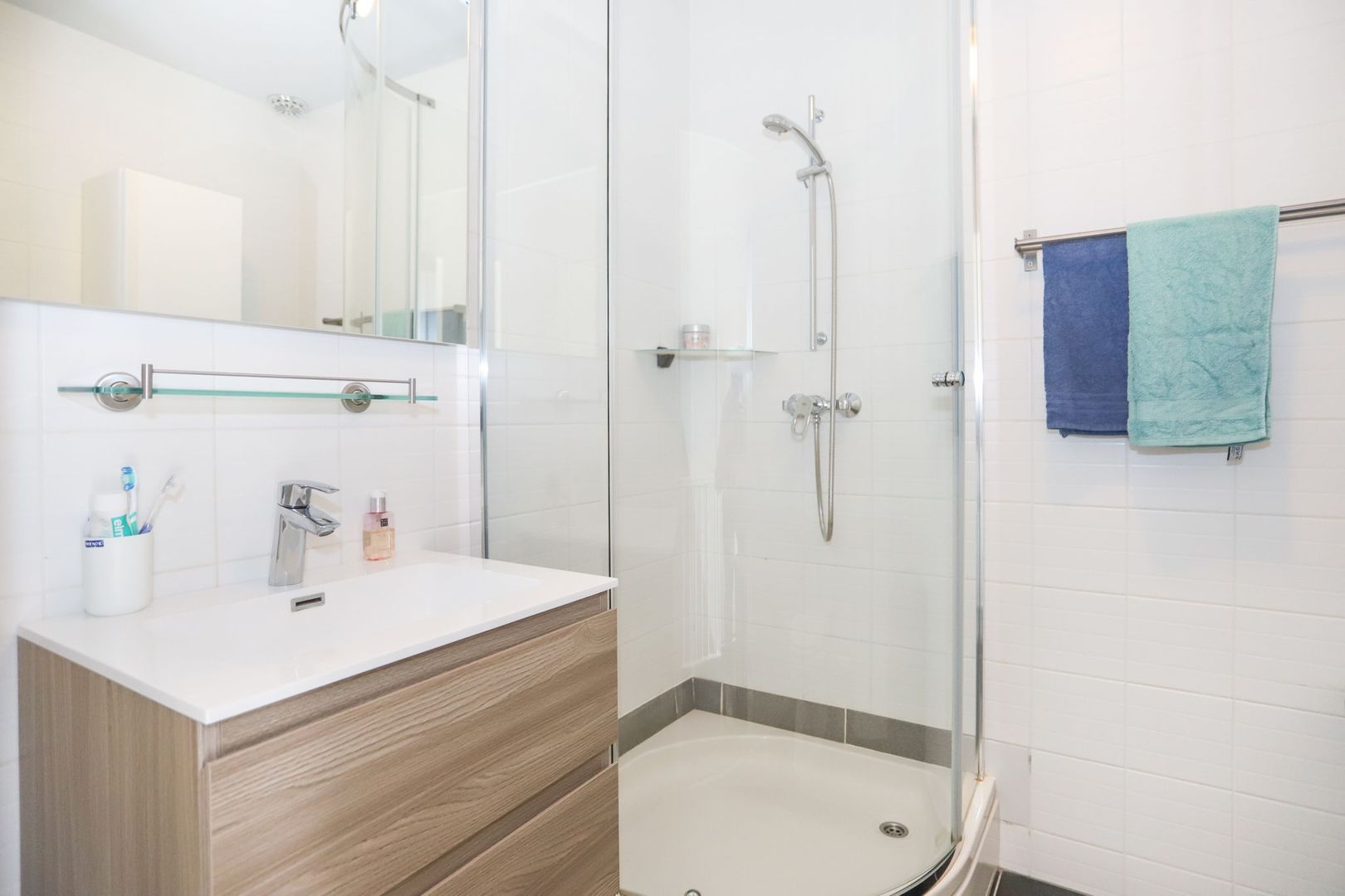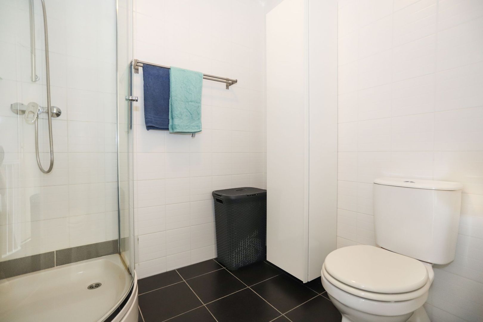 Eerste verdieping: Overloop met toegang tot twee ruime slaapkamers en de badkamer. Beide slaapkamers zijn gelegen over de breedte van de woning en netjes afgewerkt. De slaapkamer aan de achterzijde is voorzien van een dakkapel, daarnaast is hier de balkenconstructie zichtbaar waardoor modern en authentiek perfect worden gecombineerd tot een sfeervol geheel. De badkamer is volledig betegeld met donkere vloertegels en lichte wandtegels, wat zorgt voor een moderne, strakke uitstraling. Daarnaast is deze voorzien van een wastafel met meubel, douche en tweede toilet.