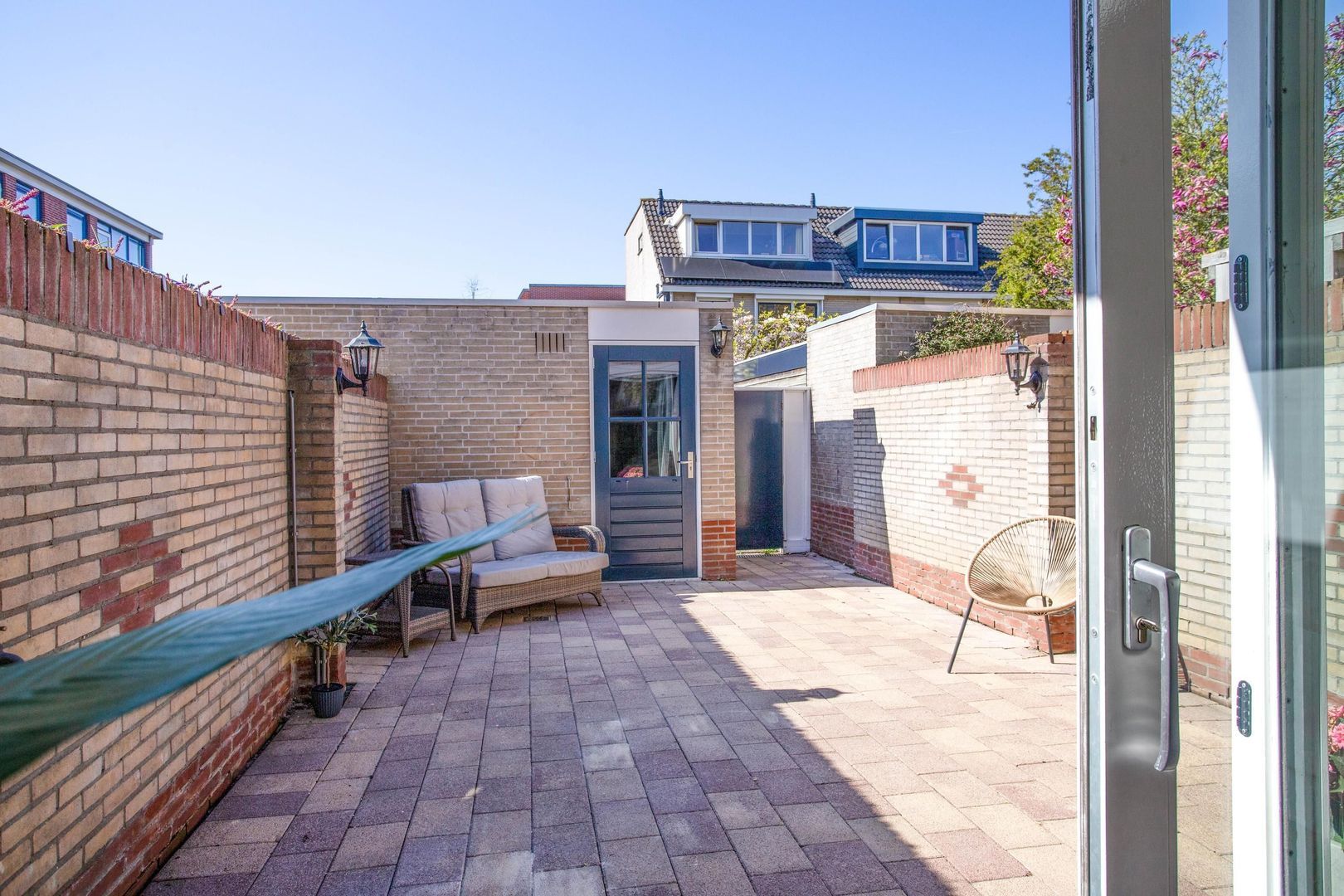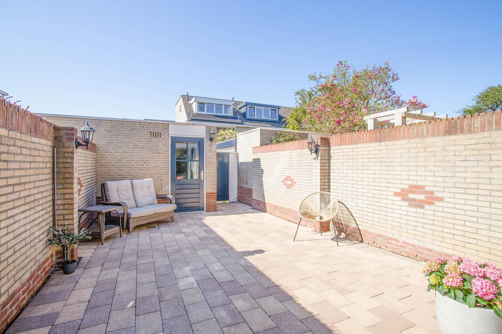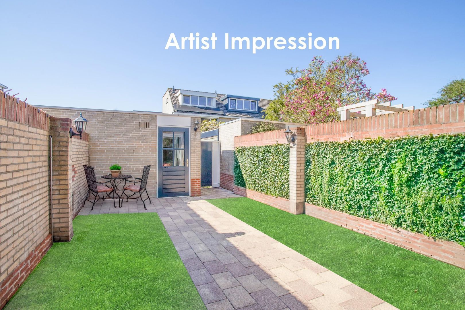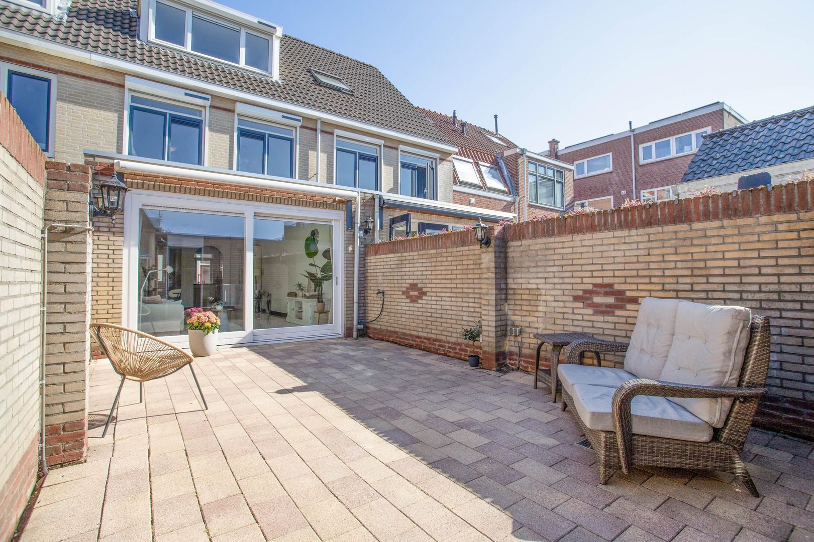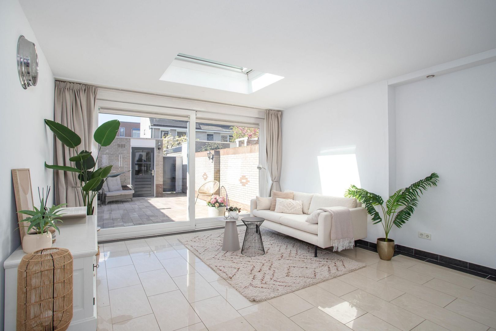 De uitgebouwde woonkamer biedt plaats aan een grote eettafel en tuingerichte zithoek. Er is veel daglicht door de schuifpui en lichtkoepel. Via de schuifpui bereik je de zonnige achtertuin van formaat die je zo dicht in de stad zelden ziet. Deze is uitgevoerd met een ruime berging. De poort aan de achterzijde geeft toegang tot een gemeenschappelijke binnenplaats en toegangshek vanaf de achterliggende Stroomstraat. Dankzij de diepte en de ligging op het westen is er vrijwel de gehele dag een plekje in de zon óf schaduw te vinden (al dan niet dankzij het elektrische zonnescherm).