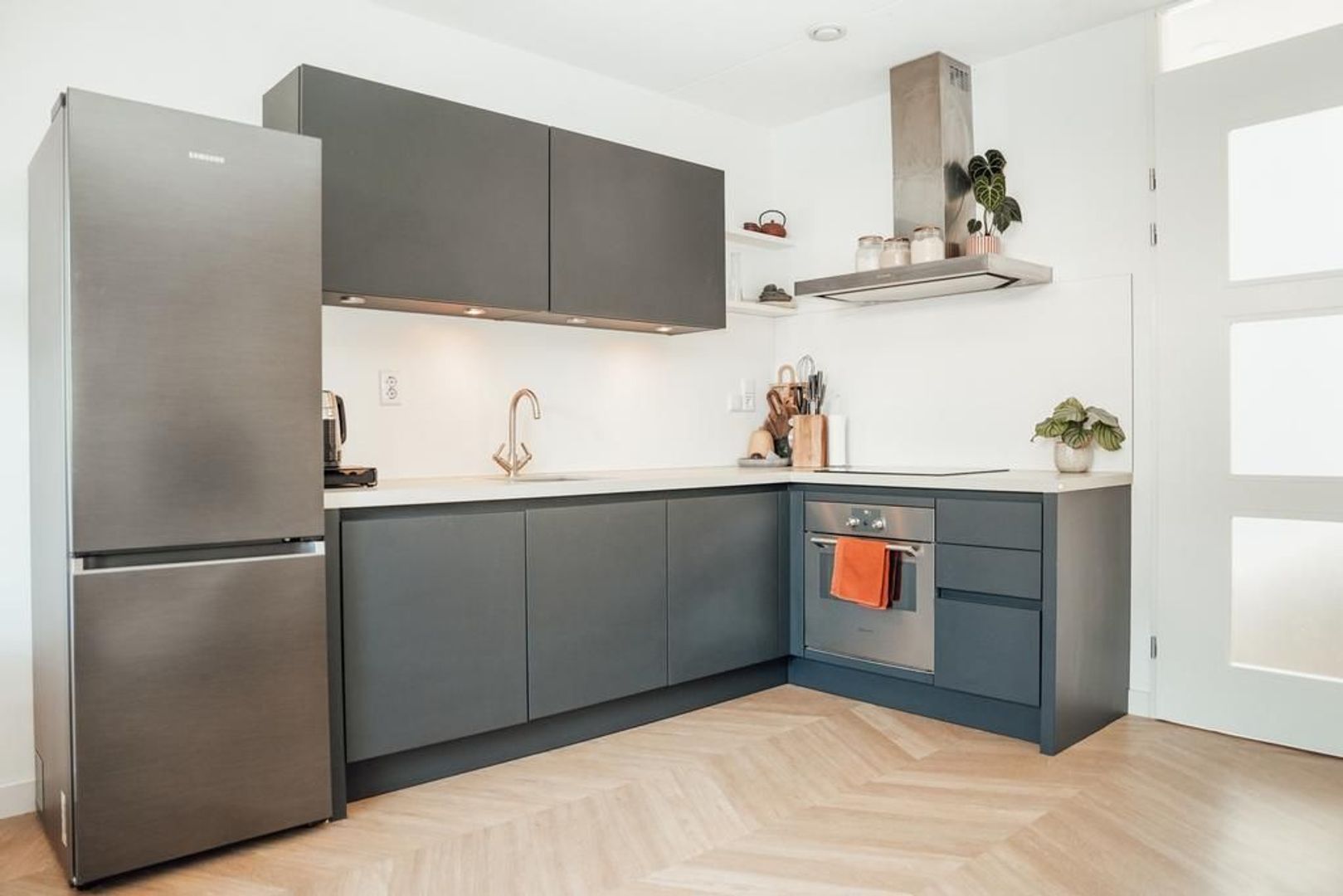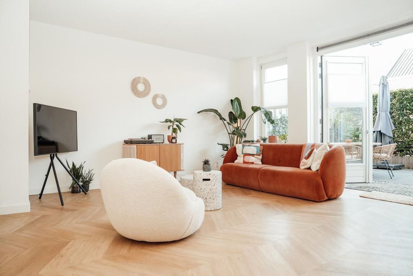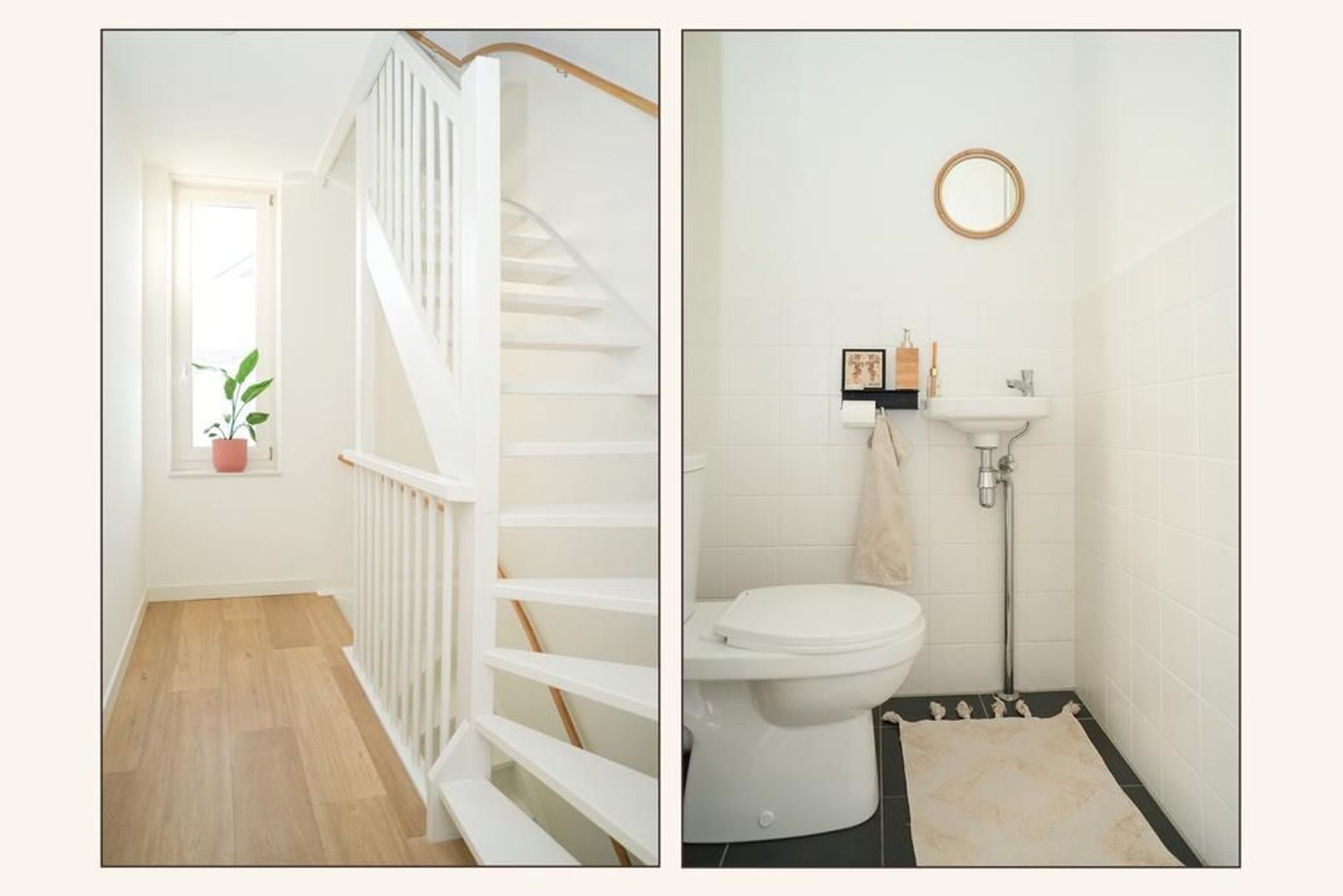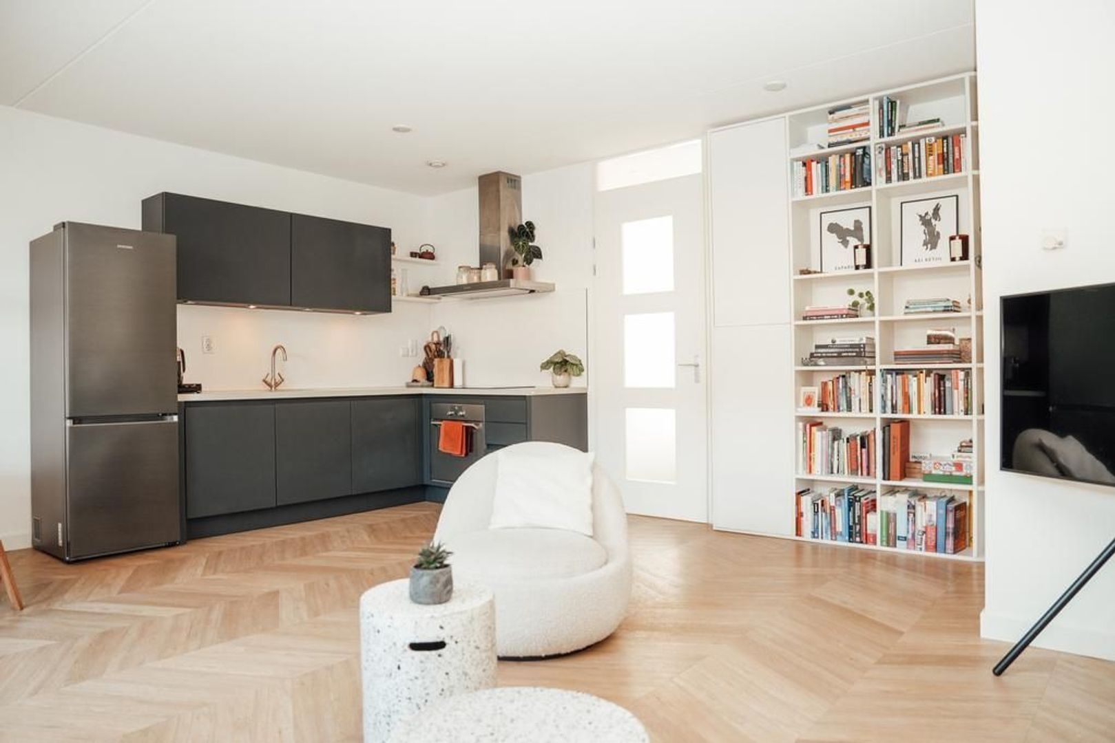 Begane grond: Entree met separaat toilet en opbergkast. De separate berging is enkel via de buitenzijde te bereiken. Hier is voldoende plek voor o.a. het stallen van fietsen. De sfeervolle woonkamer is voorzien van een nette PVC Hongaarse punt vloer, strakke wand en plafond afwerking en veel natuurlijk licht inval door de verschillende raampartijen. De open woonkeuken is voorzien van inbouwapparatuur zoals een inductiekookplaat, afzuigkap, combi-oven en een vaatwasser. Er is een losse koel-vriescombinatie aanwezig die momenteel in de schuur staat en die achter zal blijven in de keuken. Verder is er een fijne zithoek en eethoek, beide kijken uit op de zonnige achtertuin. Via de openslaande deuren is de achtertuin te bereiken. De tuin is gelegen op het zuidwesten een biedt een verzorgd terras, een overkapping en een vlonder.