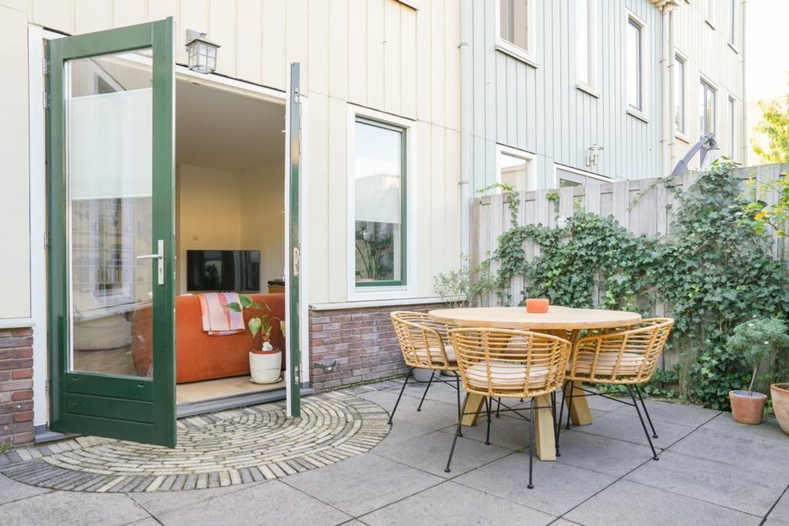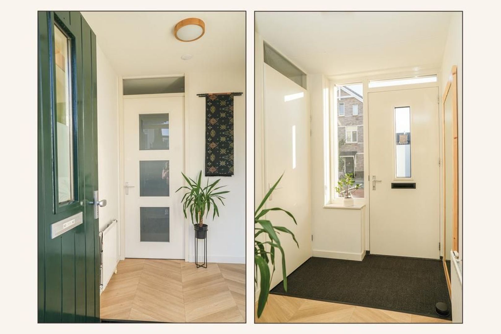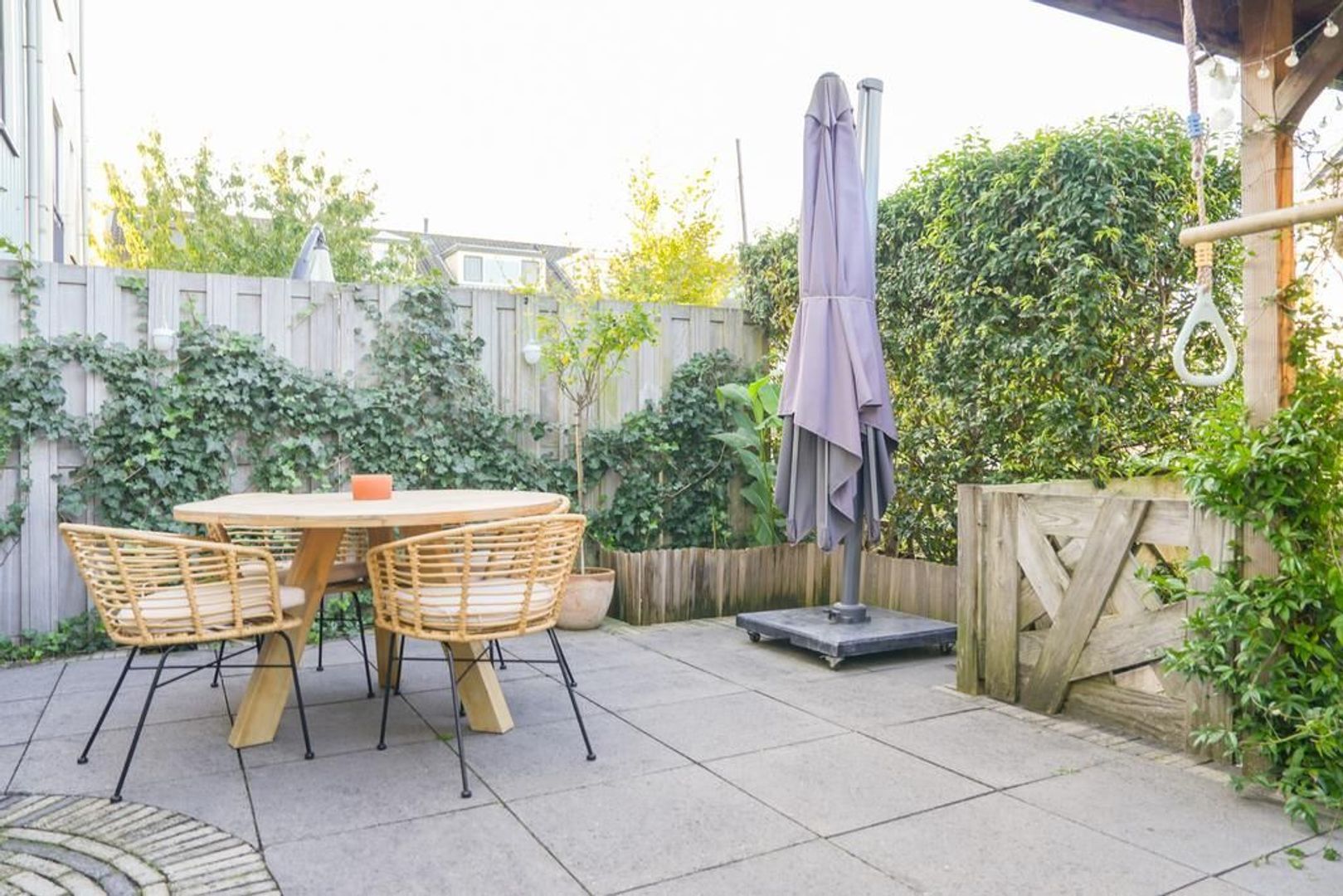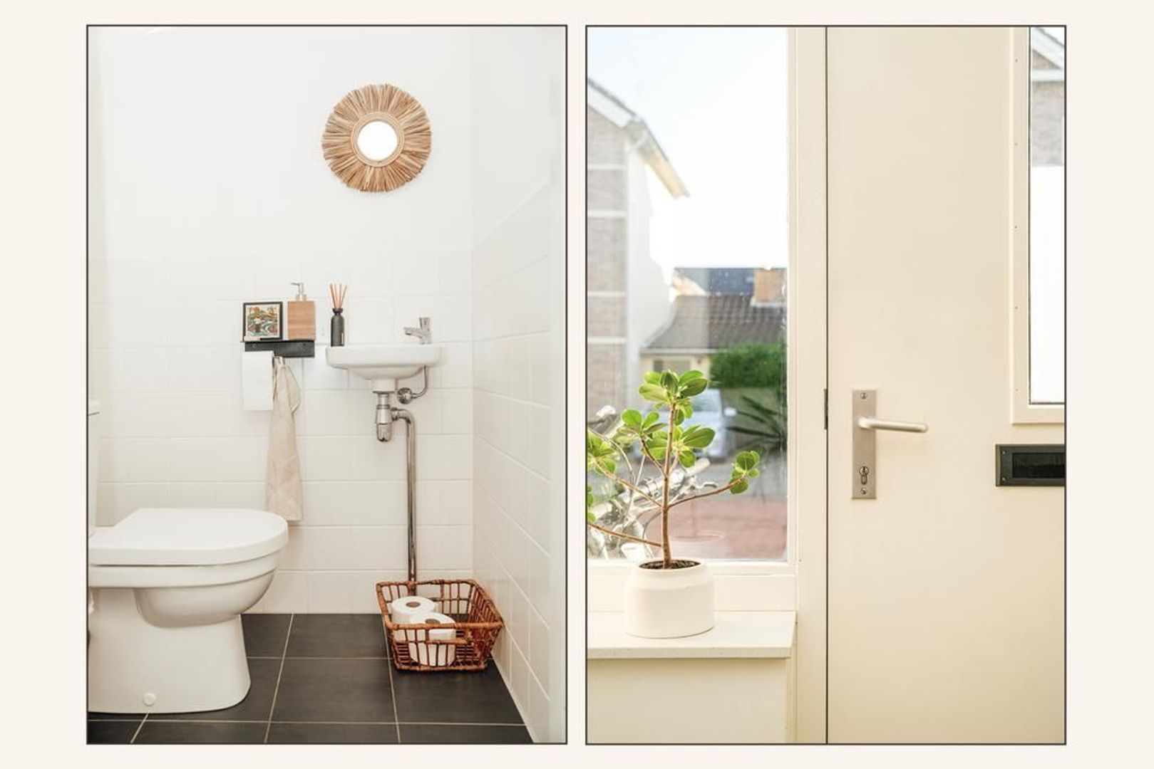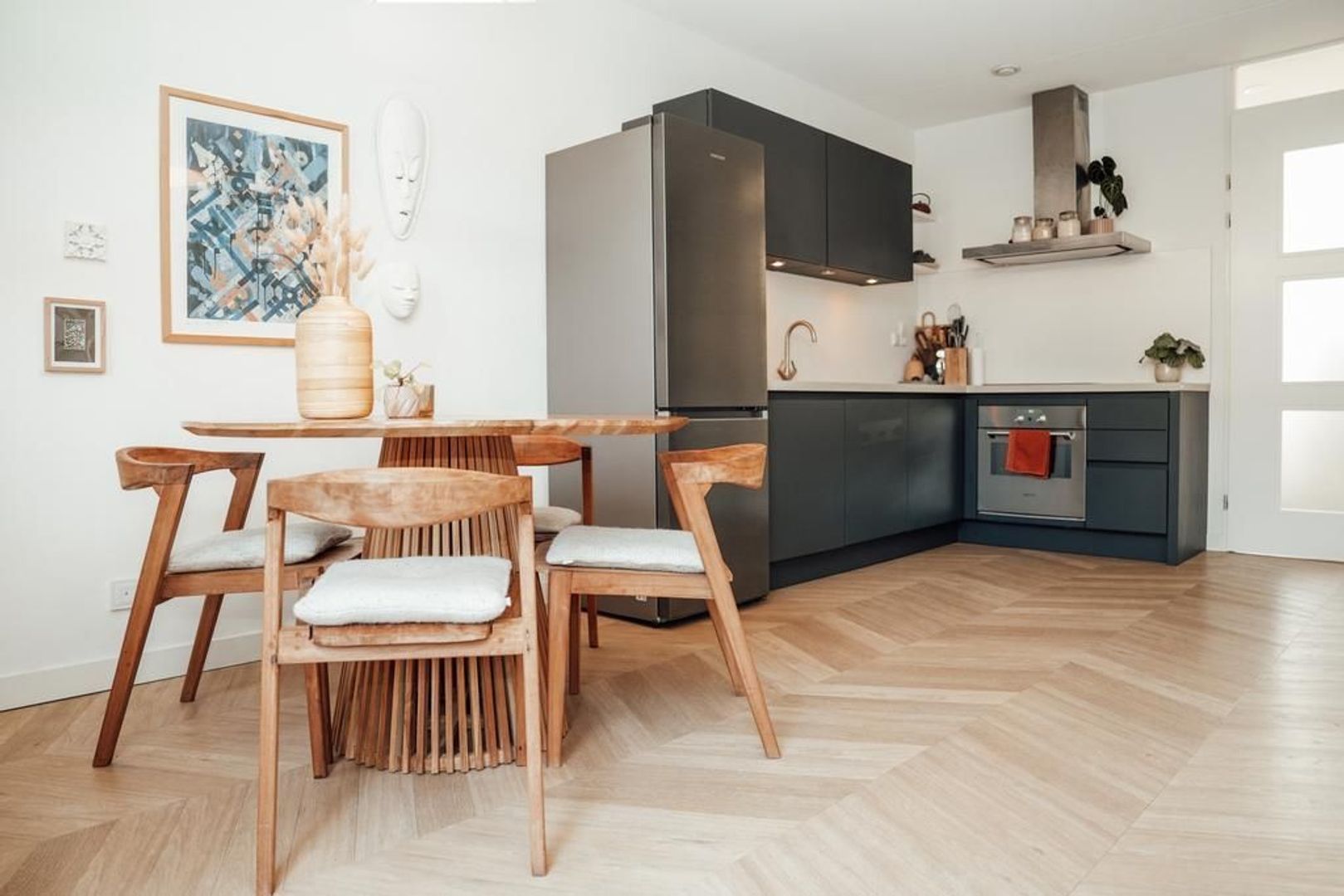 Begane grond: Entree met separaat toilet en opbergkast. De separate berging is enkel via de buitenzijde te bereiken. Hier is voldoende plek voor o.a. het stallen van fietsen. De sfeervolle woonkamer is voorzien van een nette PVC Hongaarse punt vloer, strakke wand en plafond afwerking en veel natuurlijk licht inval door de verschillende raampartijen. De open woonkeuken is voorzien van inbouwapparatuur zoals een inductiekookplaat, afzuigkap, combi-oven en een vaatwasser. Er is een losse koel-vriescombinatie aanwezig die momenteel in de schuur staat en die achter zal blijven in de keuken. Verder is er een fijne zithoek en eethoek, beide kijken uit op de zonnige achtertuin. Via de openslaande deuren is de achtertuin te bereiken. De tuin is gelegen op het zuidwesten een biedt een verzorgd terras, een overkapping en een vlonder.