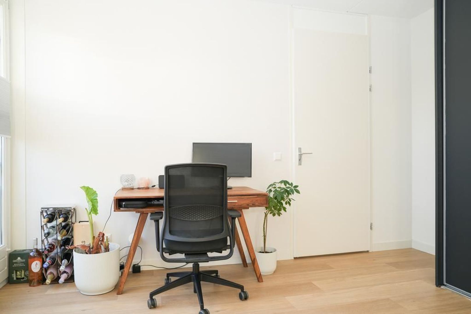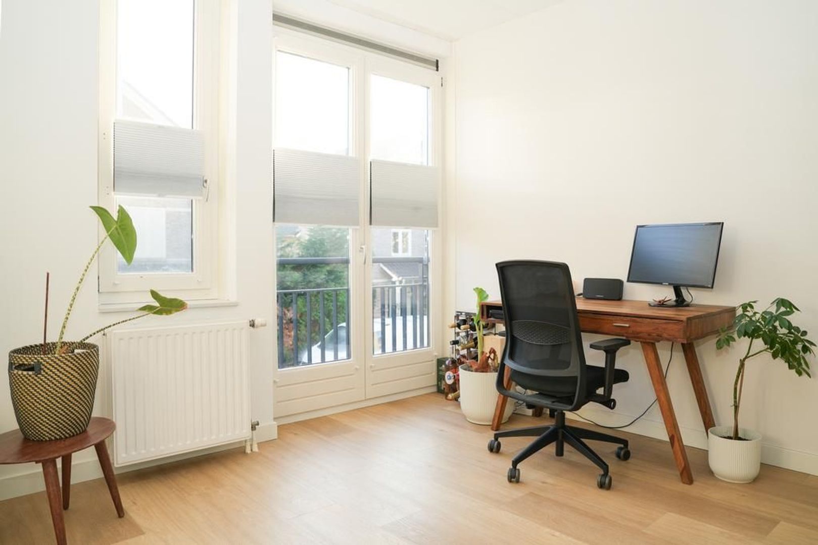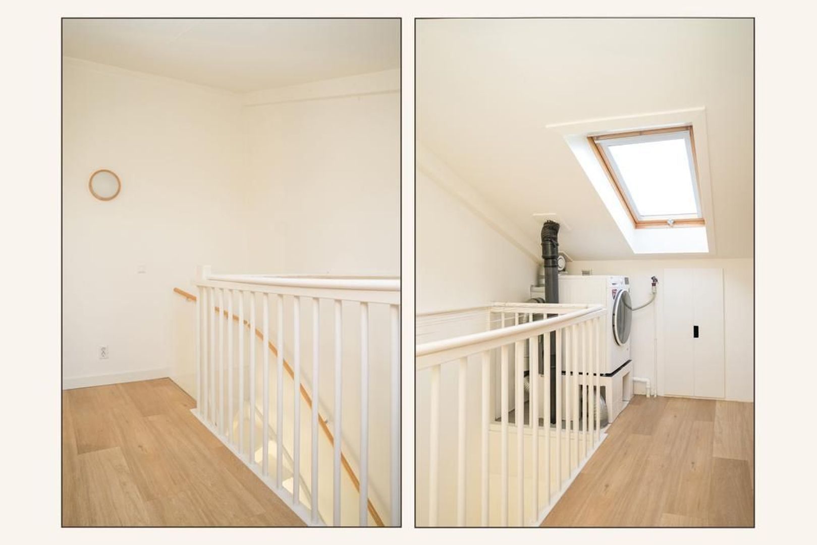 Tweede verdieping: Overloop met witgoedaansluiting en dakraam. Op deze verdieping is er een royale derde slaapkamer gelegen en een ruime berging achter het knieschot. De twee dakramen en het Franse balkon zorgen voor extra veel daglicht in de slaapkamer.