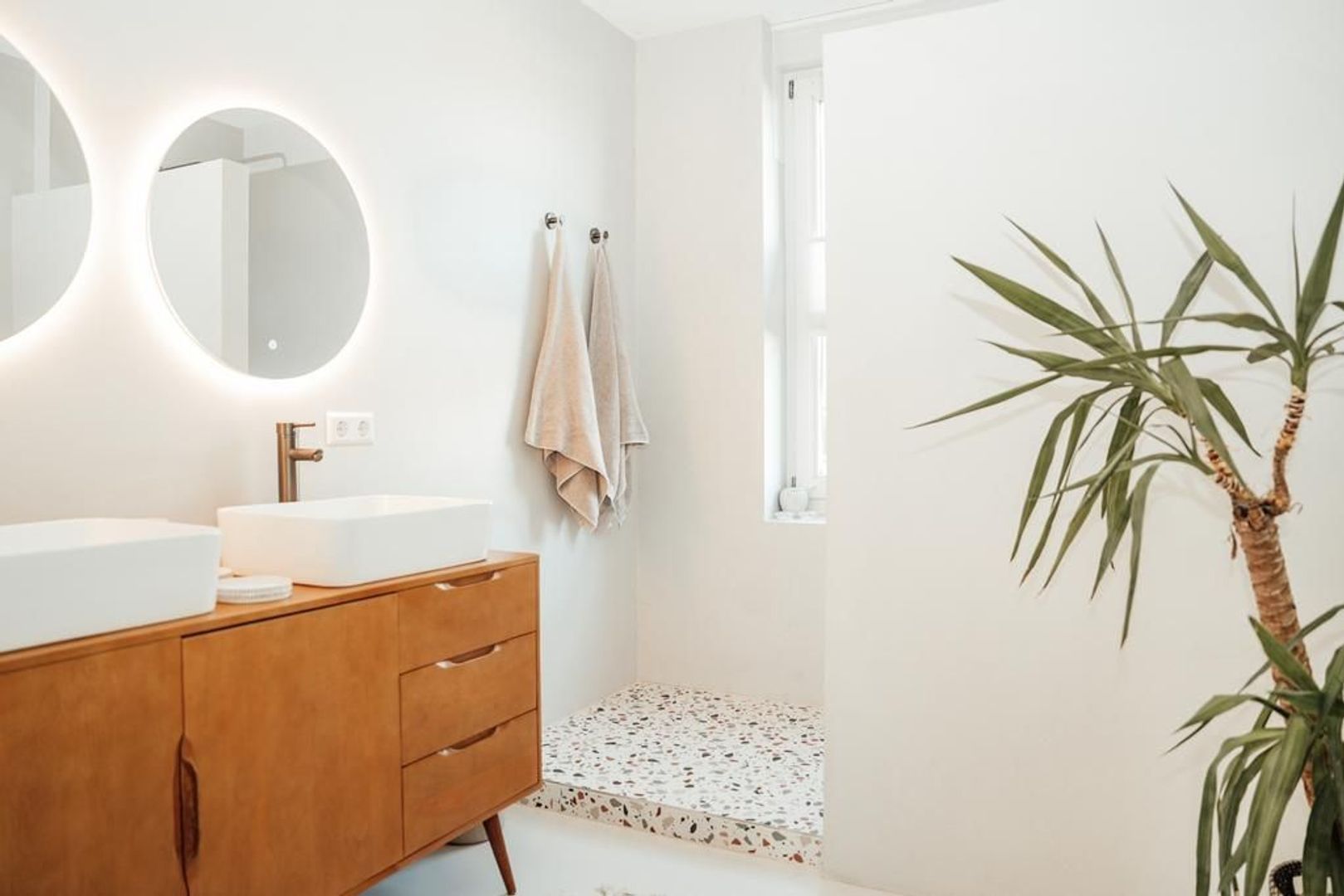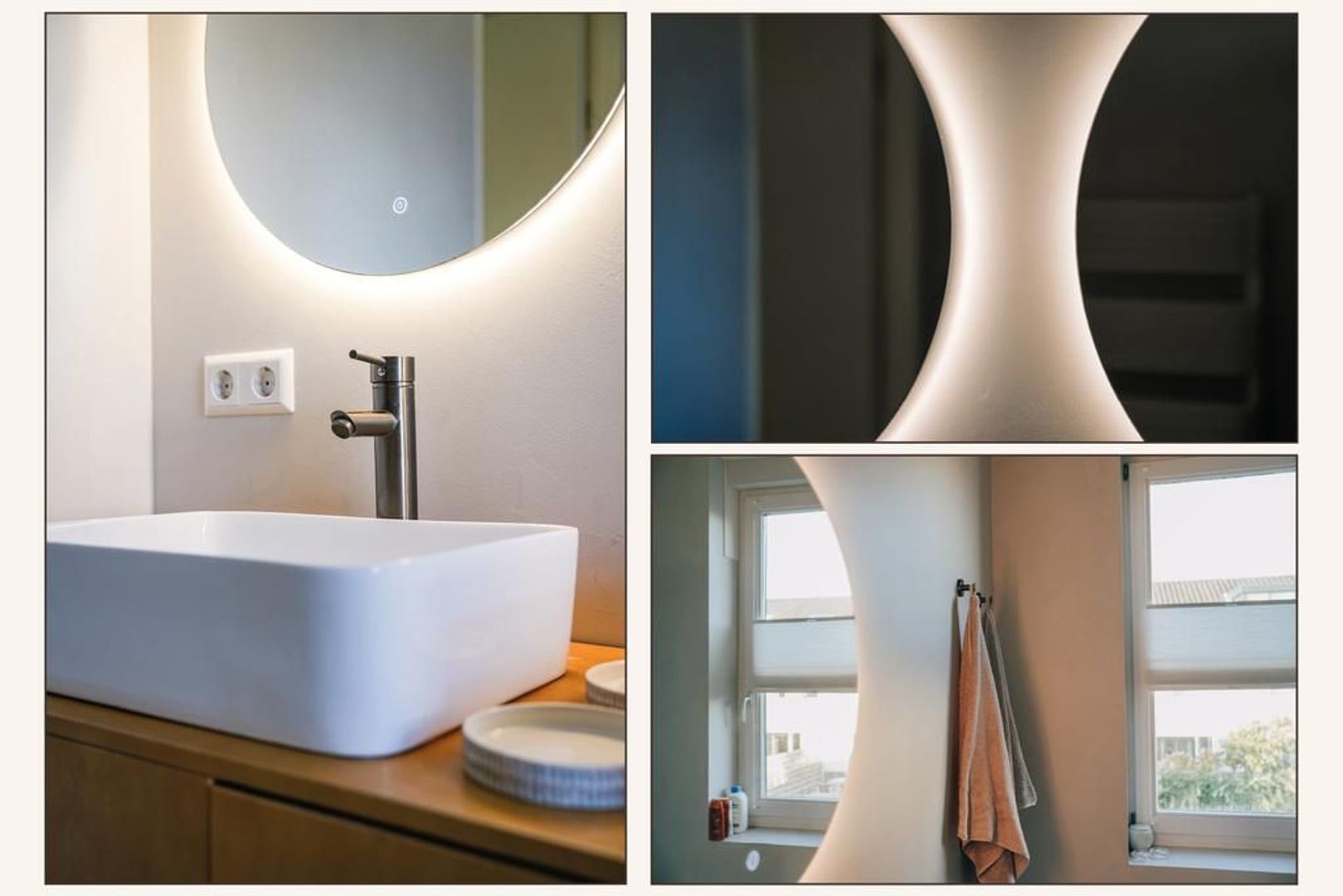 De badkamer is in 2021 volledig vernieuwd en voorzien van een inloopdouche en dubbelwastafel met meubel.