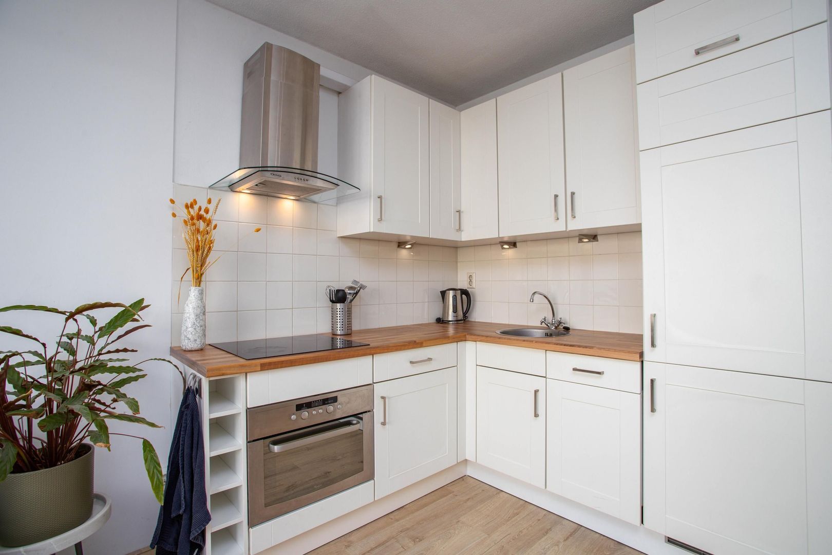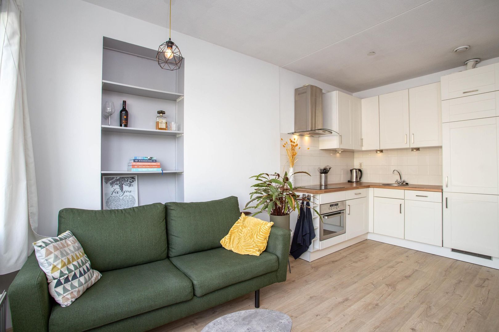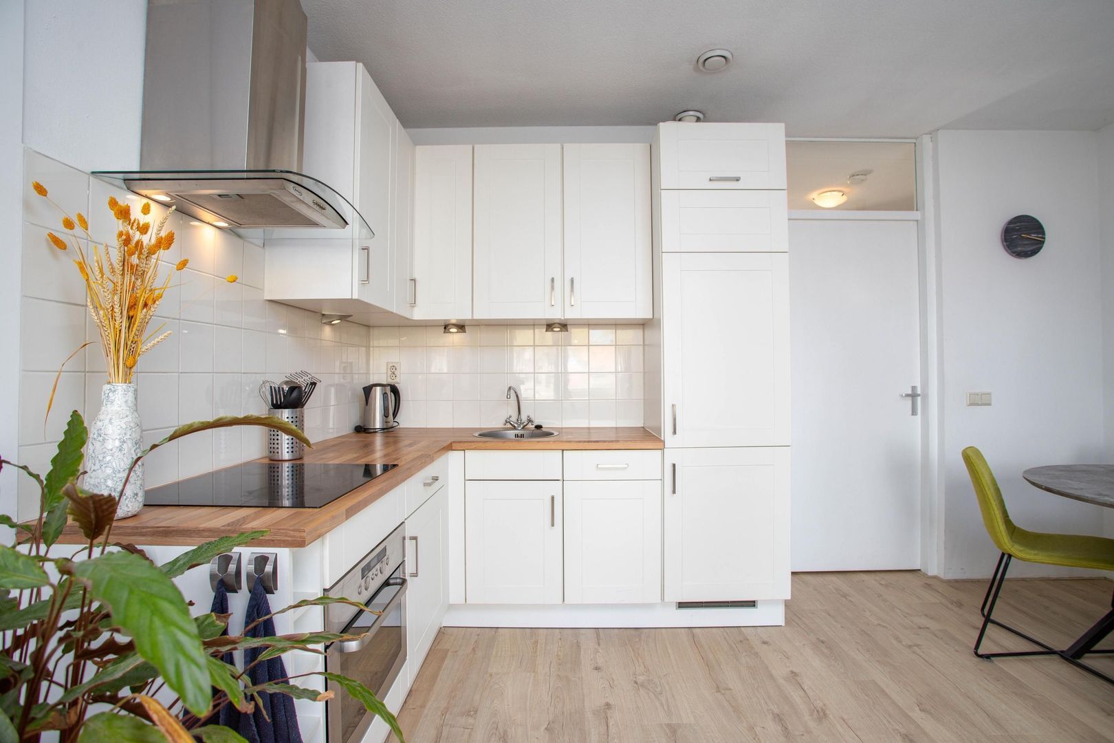 Je komt het appartement binnen via de entree, waar een vaste kast zich bevindt. Vanuit hier heb je toegang tot de woonkamer, de badkamer en de slaapkamer. De woonkamer bevindt zich aan de voorzijde van het appartement en heeft dankzij de grote ramen veel lichtinval. De open keuken heeft een neutrale uitstraling door de lichte kasten en het houten blad. De keuken beschikt over de volgende inbouwapparatuur: koelkast, vriezer, vaatwasser, oven, inductiekookplaat en afzuigkap. Er is ruimte genoeg voor een eettafel, waardoor er gezellig gekookt en gedineerd kan worden. De badkamer heeft een douche, toilet, wastafel met spiegelkast en aansluitingen voor de wasmachine en droger.