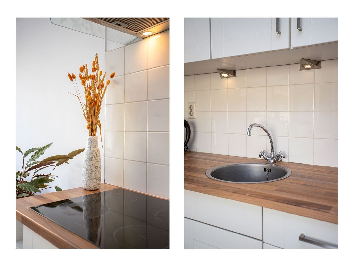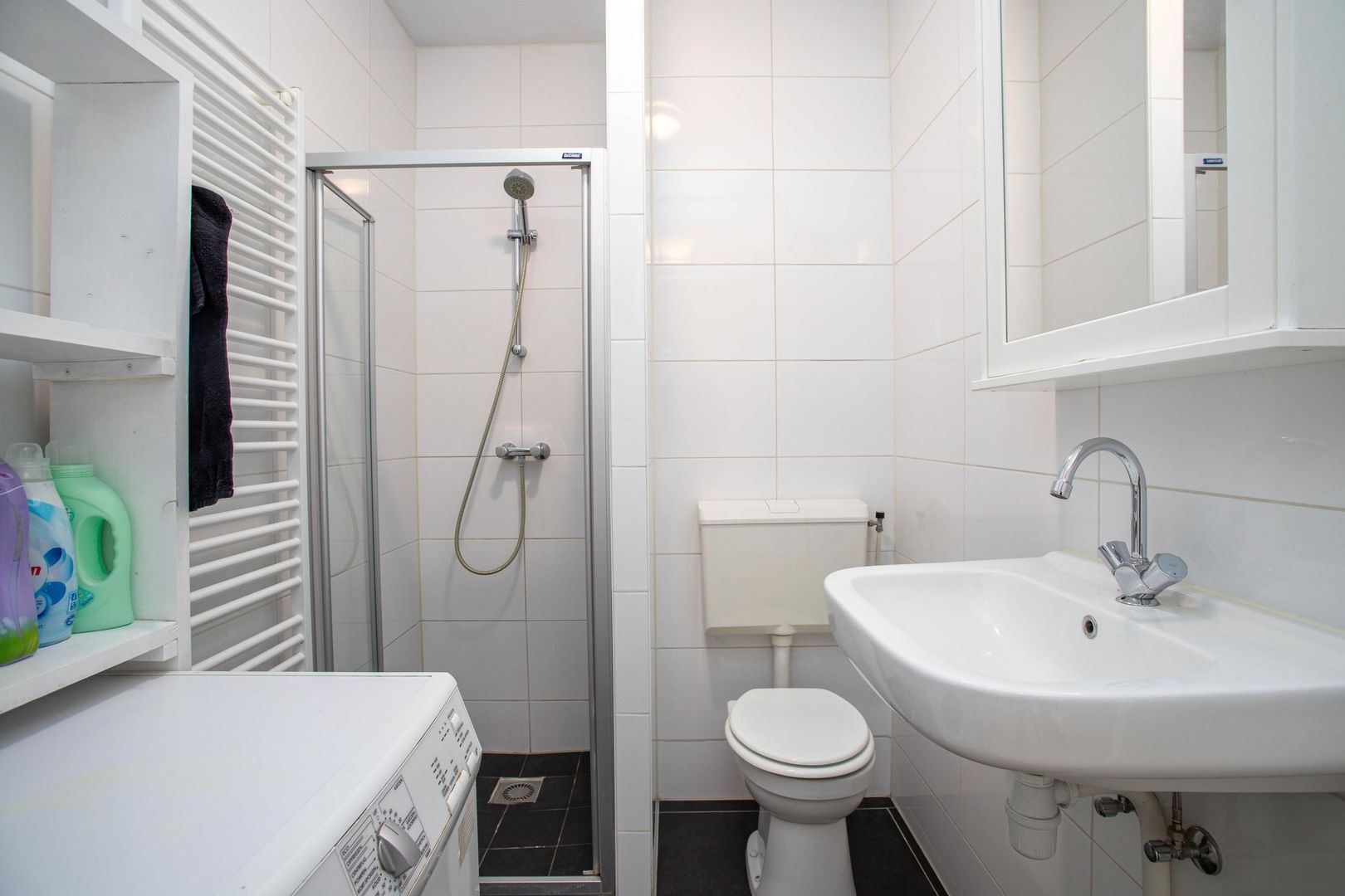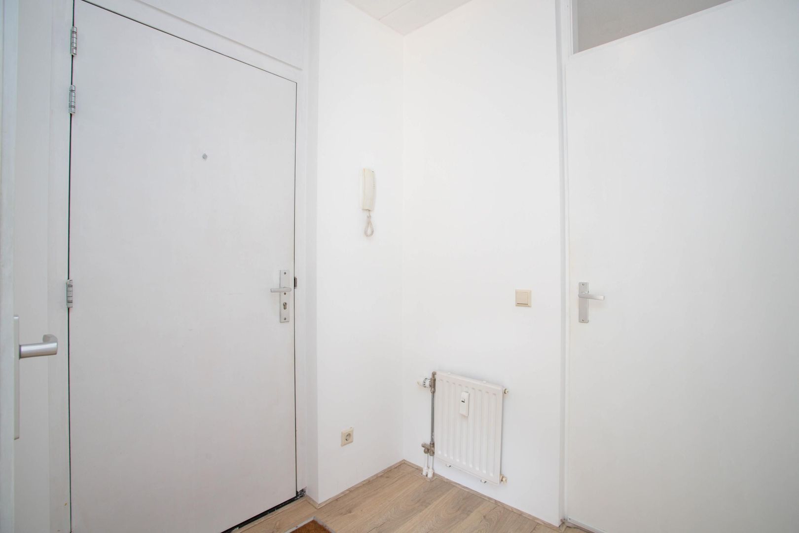 Je komt het appartement binnen via de entree, waar een vaste kast zich bevindt. Vanuit hier heb je toegang tot de woonkamer, de badkamer en de slaapkamer. De woonkamer bevindt zich aan de voorzijde van het appartement en heeft dankzij de grote ramen veel lichtinval. De open keuken heeft een neutrale uitstraling door de lichte kasten en het houten blad. De keuken beschikt over de volgende inbouwapparatuur: koelkast, vriezer, vaatwasser, oven, inductiekookplaat en afzuigkap. Er is ruimte genoeg voor een eettafel, waardoor er gezellig gekookt en gedineerd kan worden. De badkamer heeft een douche, toilet, wastafel met spiegelkast en aansluitingen voor de wasmachine en droger.