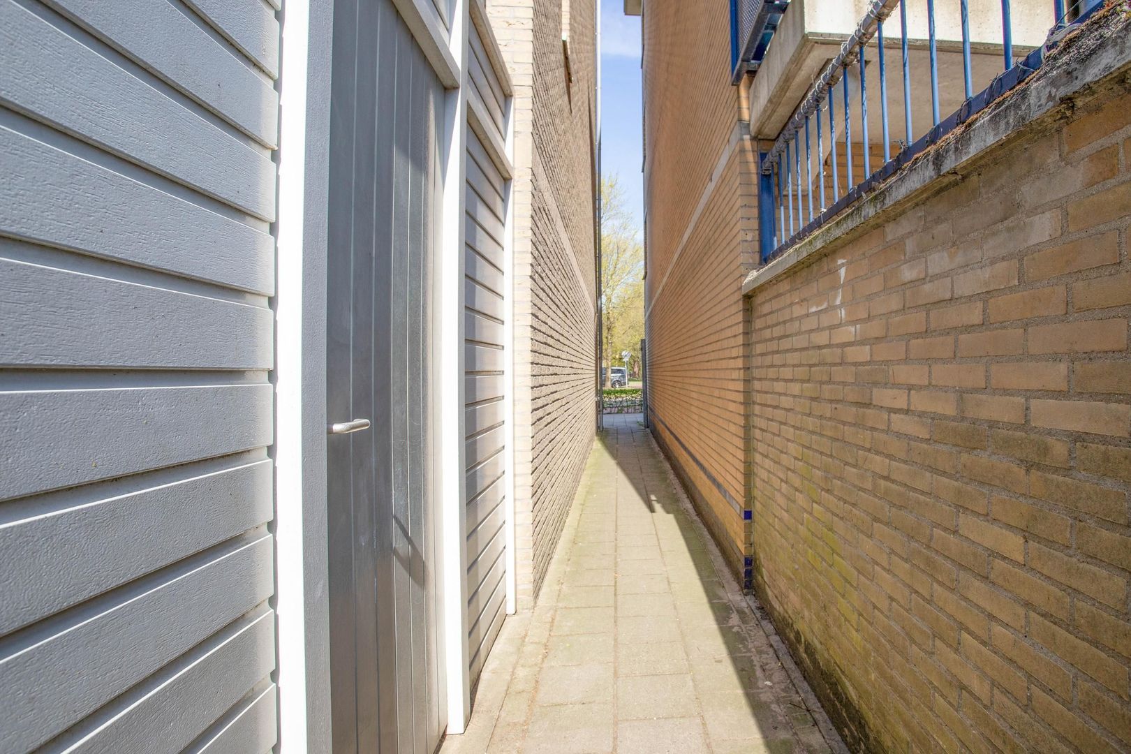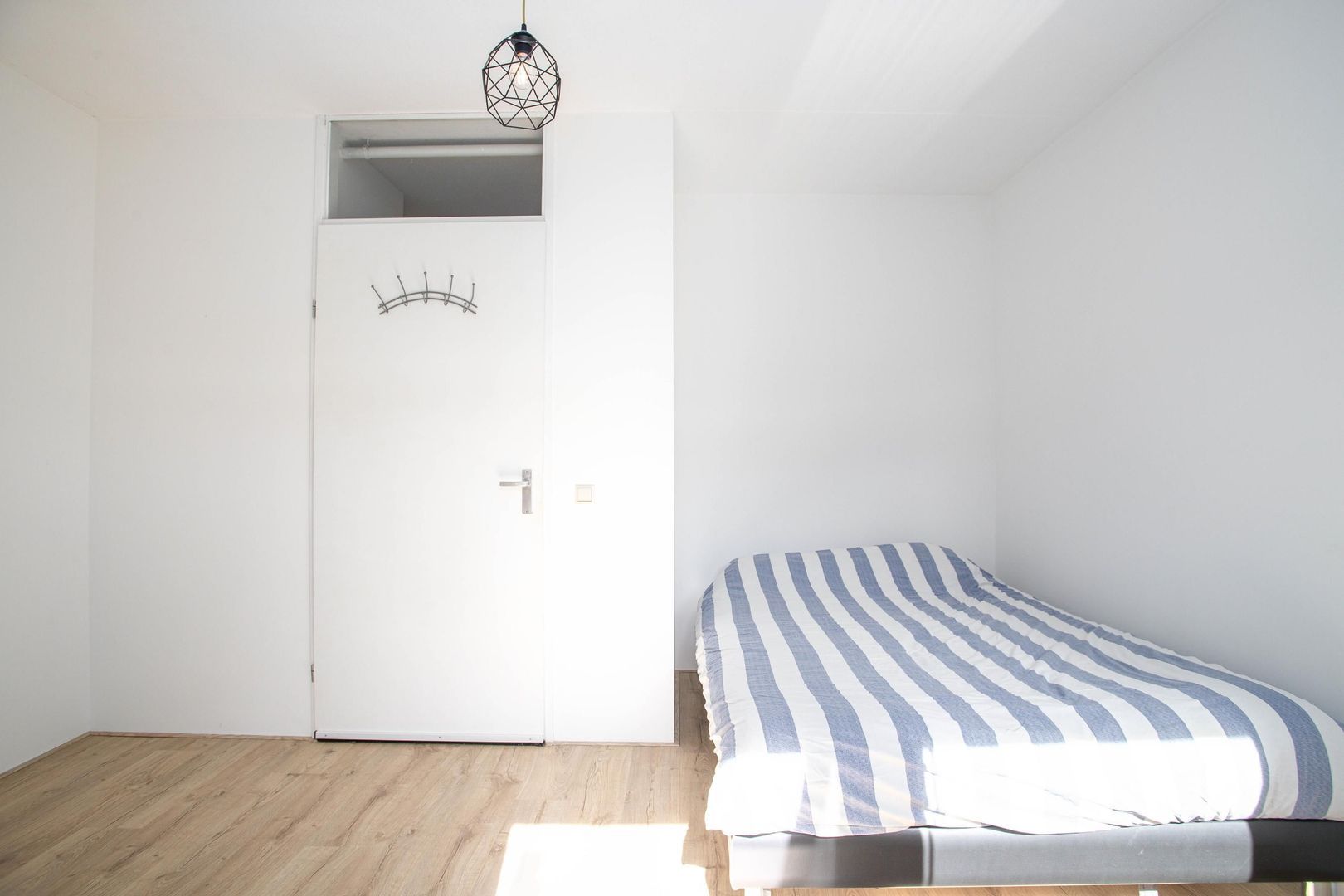 In de slaapkamer past een tweepersoonsbed en er is nog genoeg ruimte voor een grote kledingkast. Vanuit de slaapkamer heb je toegang tot de tuin, welke ideaal is gelegen op het zonnige zuidwesten. De tuin is betegeld en is de perfecte plek voor een tuintafel of -set om optimaal van de buitenlucht te kunnen genieten. Via de achterom kom je in de steeg, waarna je gemakkelijk de straat op kunt.