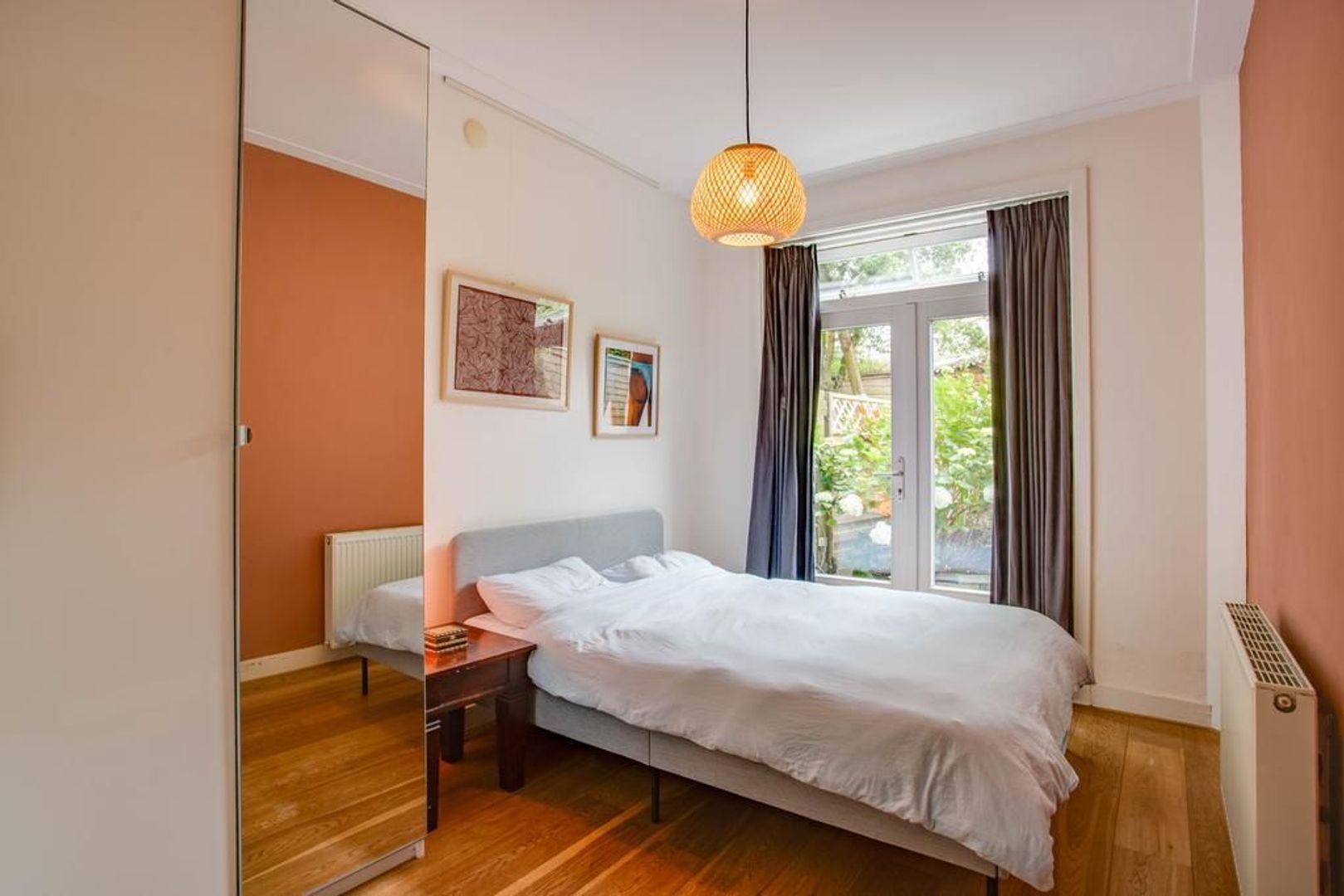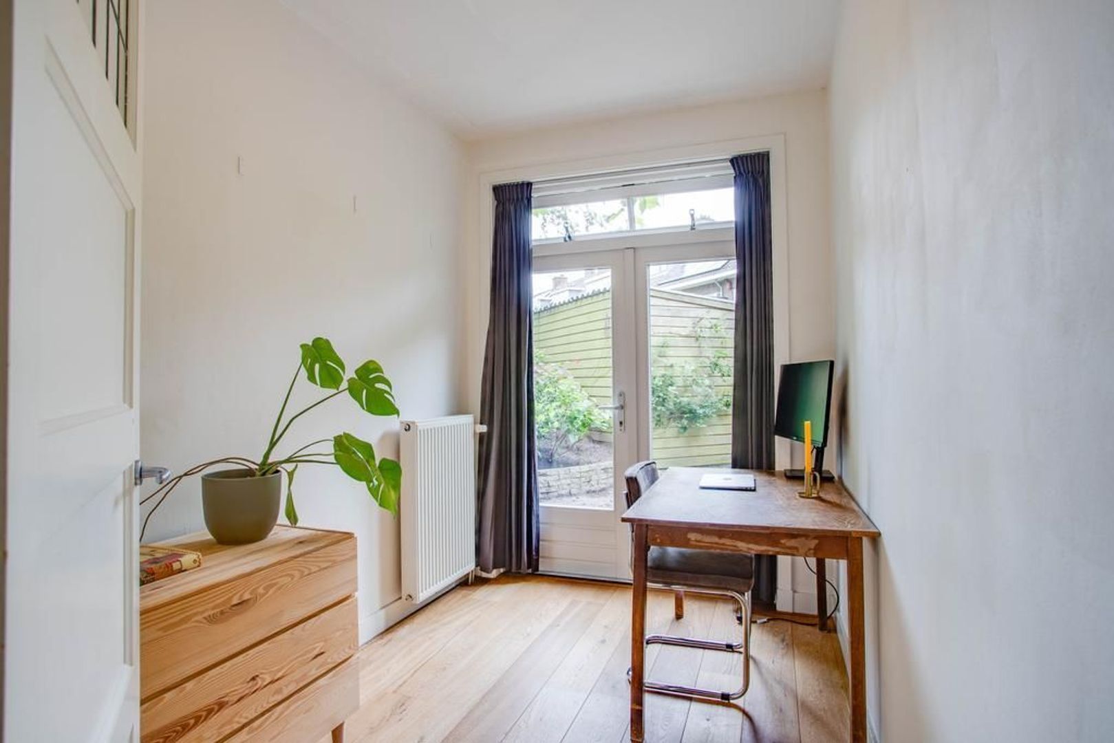 De tweede slaapkamer is vergelijkbaar van formaat en is voorzien van openslaande deuren naar de tuin. De derde slaapkamer is iets kleiner van formaat, maar zeker nog een fijne derde slaapkamer. Deze kamer is bijvoorbeeld ook uitstekend geschikt als werk-, hobby- of speelkamer. Ook deze kamer is, net als de tweede slaapkamer, voorzien van openslaande deuren naar de tuin.