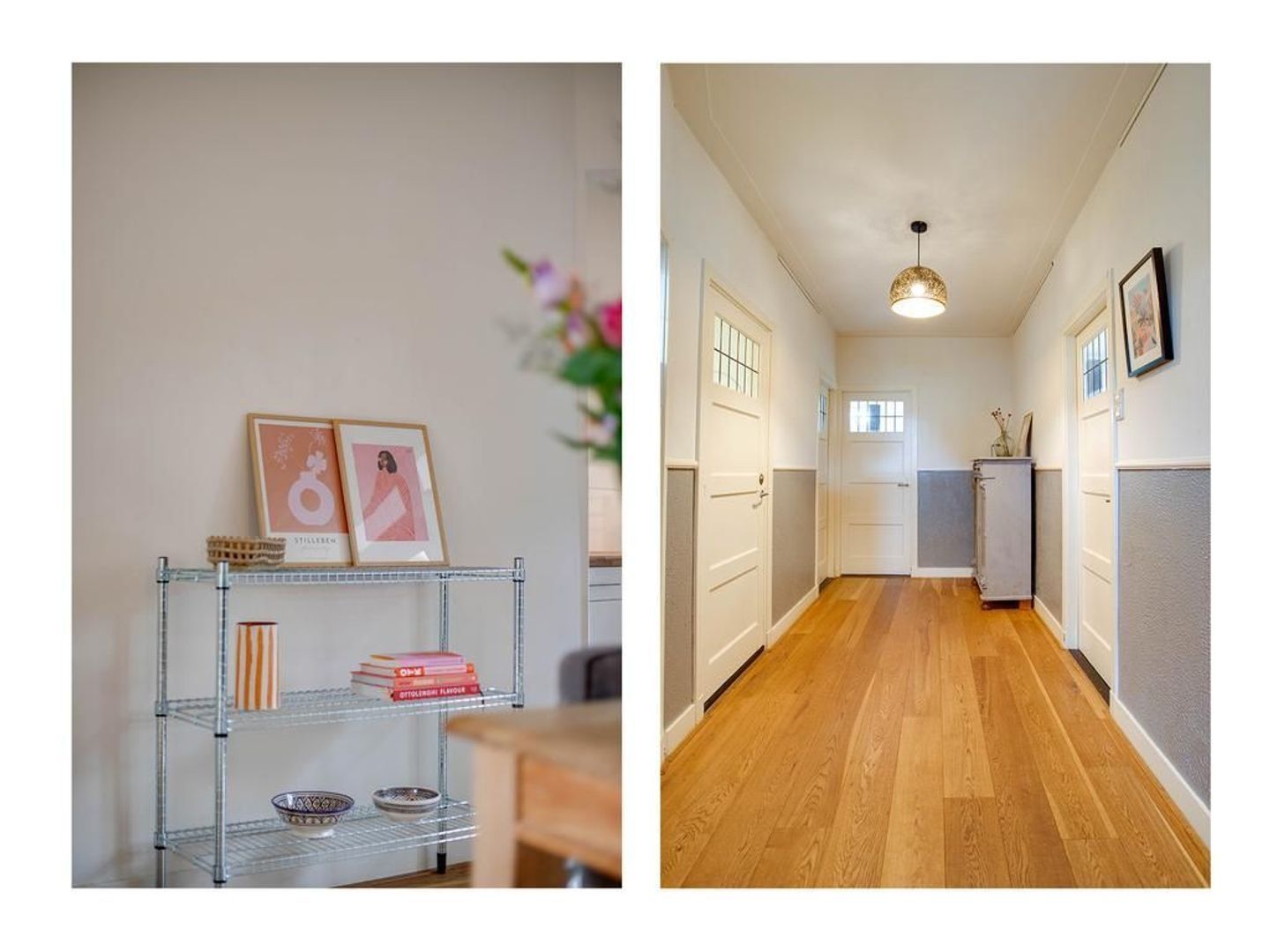 Via de ruime voortuin bereik je de entree van de woning. Entree met meterkast en garderobe. Vervolgens een centrale hal, waar zich ook een separaat toilet bevindt. De hal geeft toegang tot de woonkamer, de eetkamer en de 3 slaapkamers. Bij binnenkomst van de woning vallen de authentieke details direct op. Zo is de woning voorzien van paneeldeuren, originele schouw en en-suite deuren.