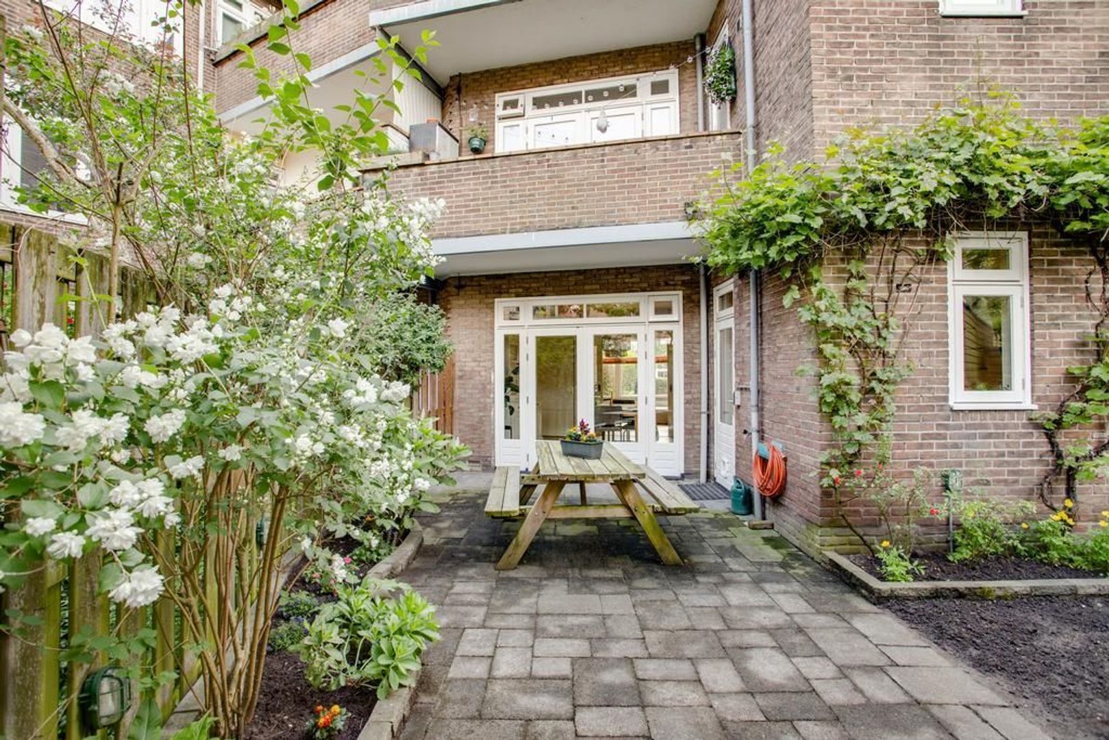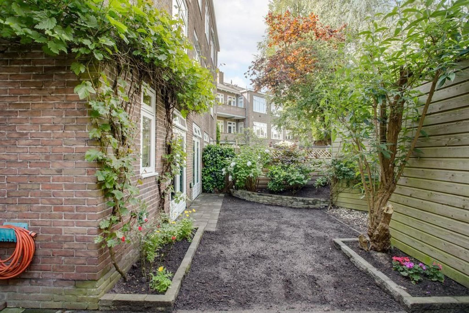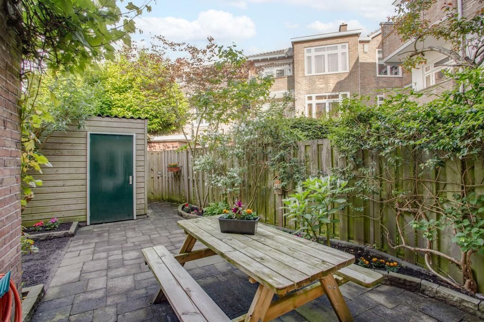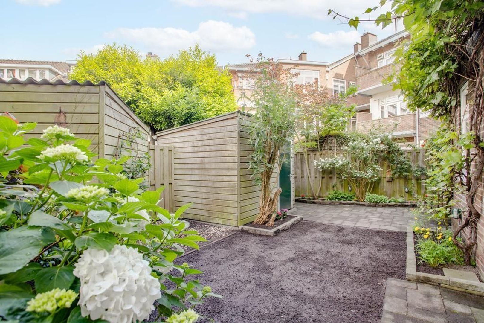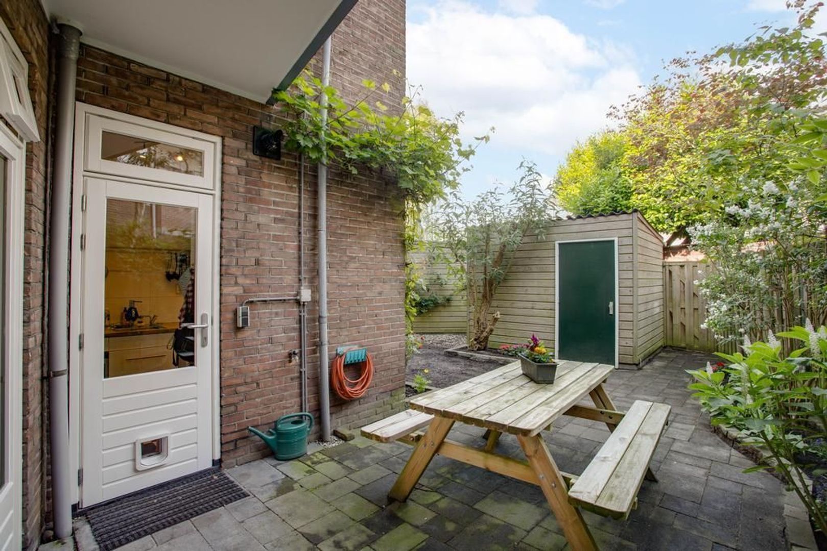 • Achtertuin op het noordwesten plus voortuin op het zuidoosten, waardoor er altijd een plek in de zon én schaduw te vinden is (achtertuin voorzien van berging);