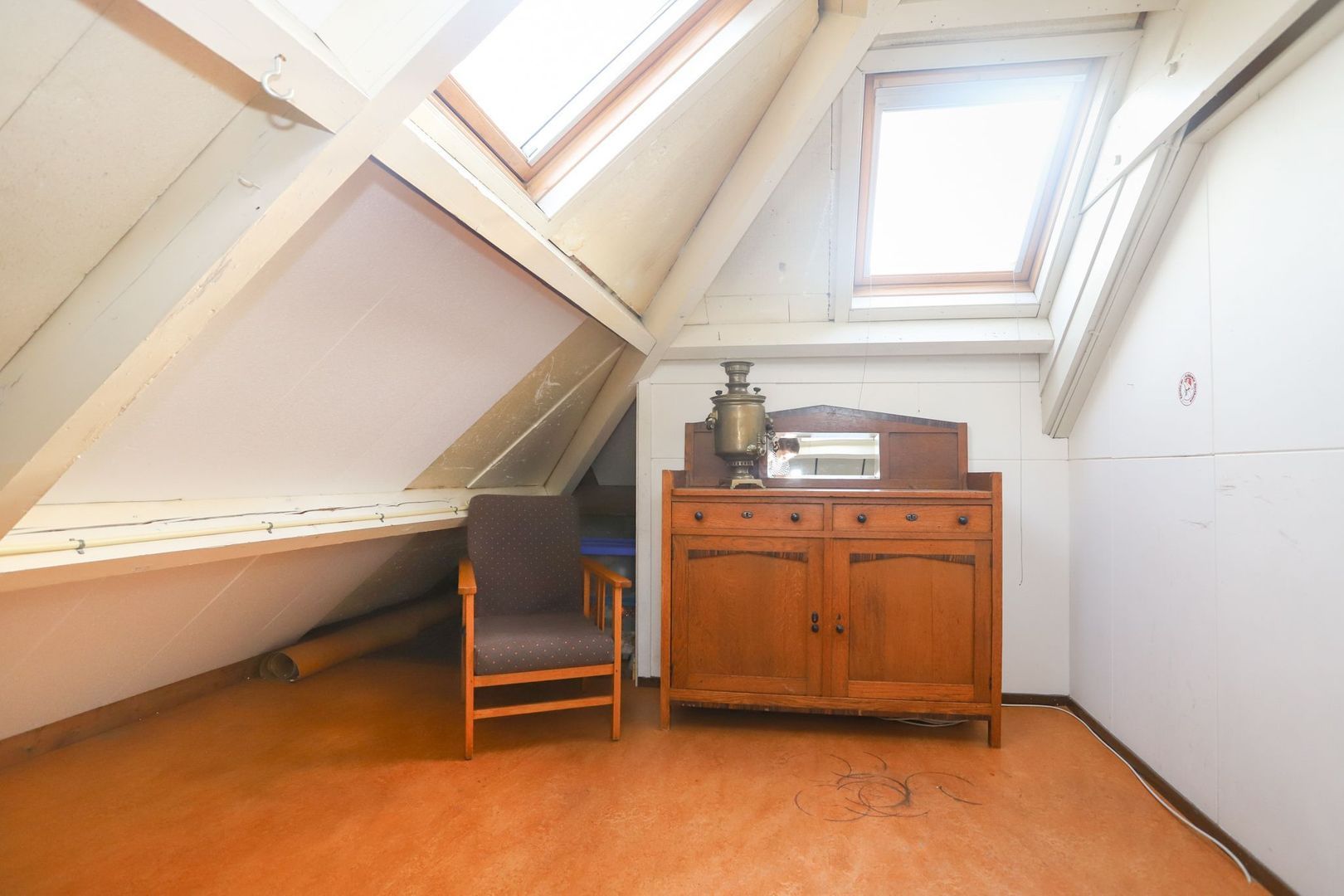 Overloop met cv-ketel (2017) en toegang tot twee slaapkamers. De grote slaapkamer is voorzien van maar liefst 3 dakramen, wat de kamer heerlijk licht maakt. Zowel op de overloop als in de grote slaapkamer is er veel opbergmogelijkheid onder de schuine kap.