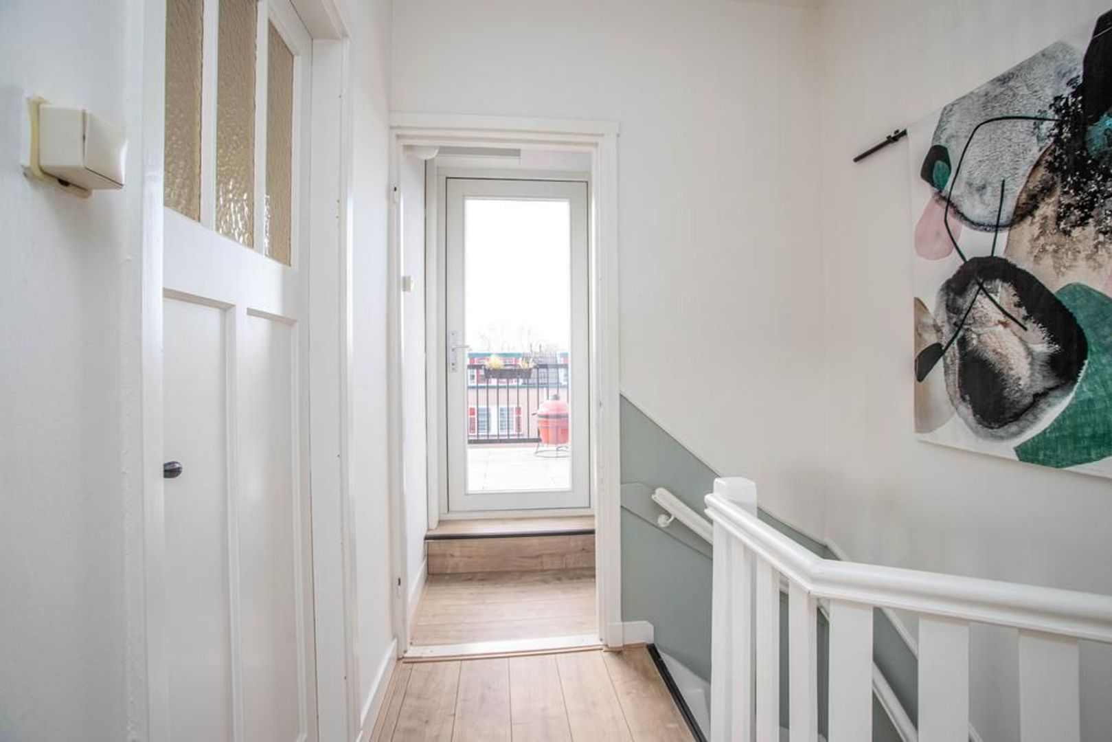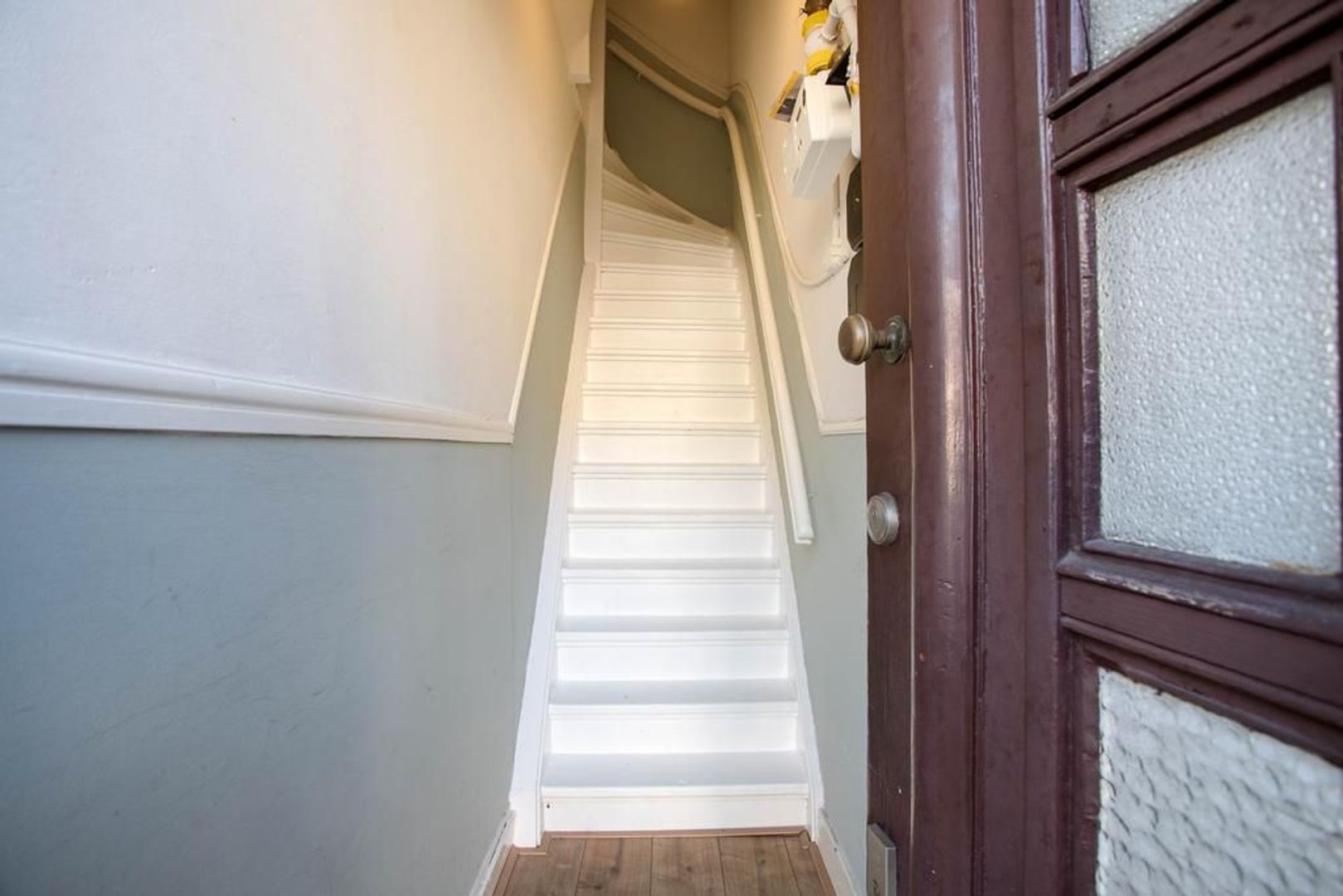Eigen entree naar de eerste verdieping. Via een achtergelegen pad is de eigen (fietsen)berging bereikbaar.