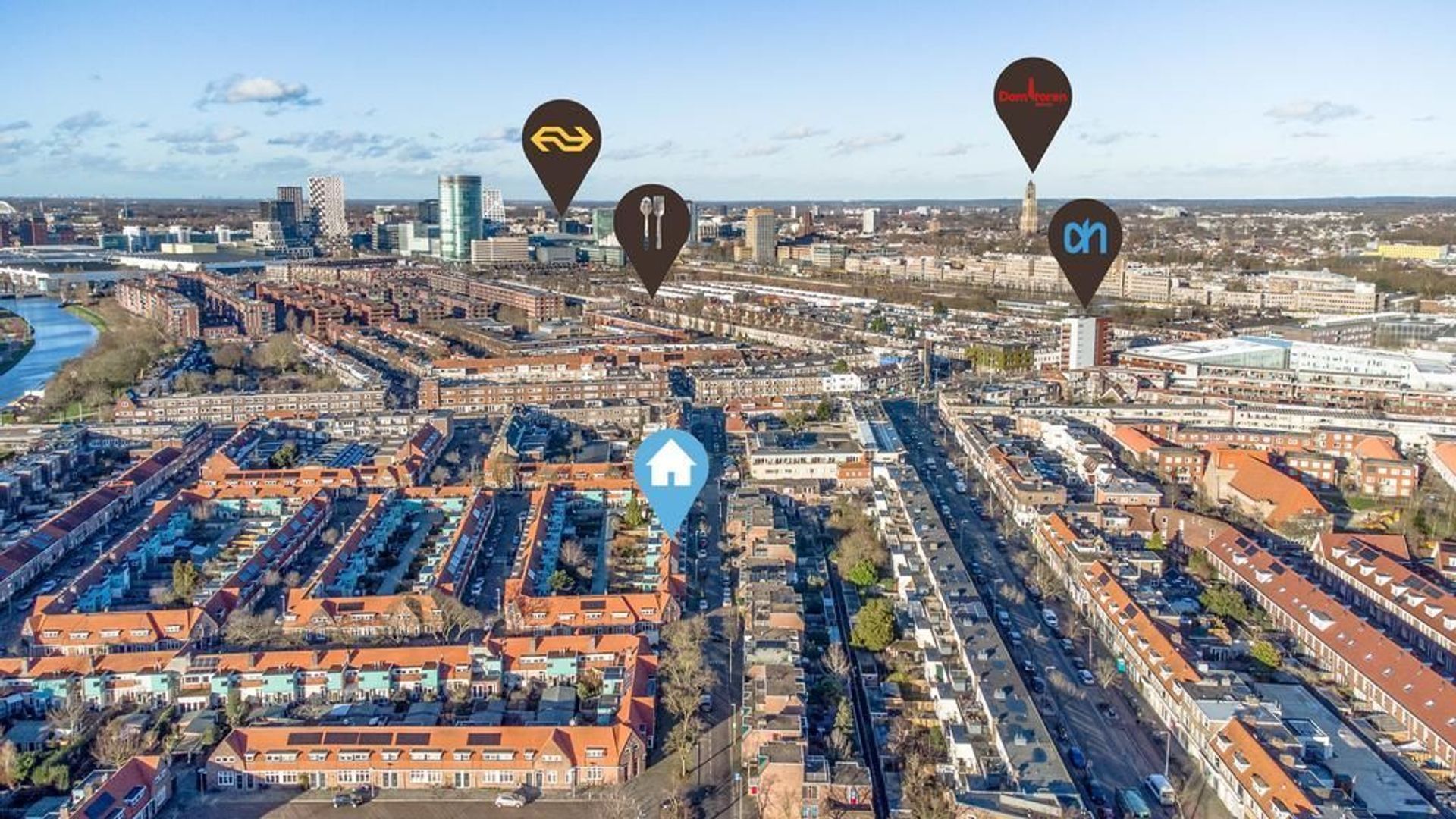 De Rijnlaan ligt in de Rivierenwijk. Op loopafstand vind je alle dagelijkse voorzieningen, zoals supermarkten, een slager en een bakker. Ook basisscholen en kinderdagverblijven liggen in de directe omgeving. Bij de watertoren (Rotsoord) zijn diverse horecagelegenheden te vinden, en je kunt er heerlijk langs het water zitten. Voor de allerkleinsten is er een kinderboerderij in de buurt. Binnen vijf minuten fietsen bereik je het Ledig Erf en fiets je zo de binnenstad in. Voor het openbaar vervoer kun je terecht bij station Vaartsche Rijn of Utrecht Centraal. Voor de deur is er voldoende parkeerruimte beschikbaar, betaald of met vergunning.