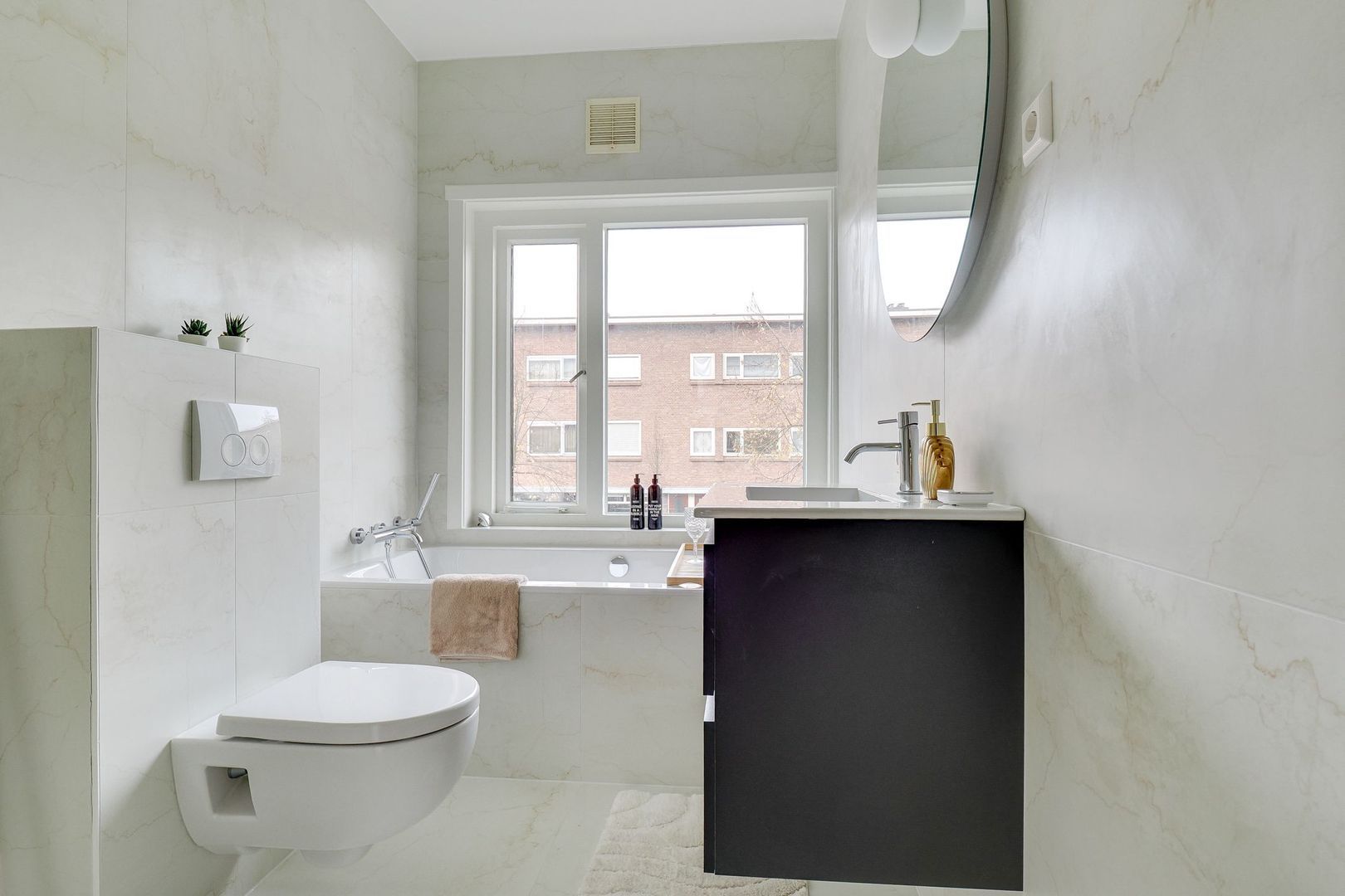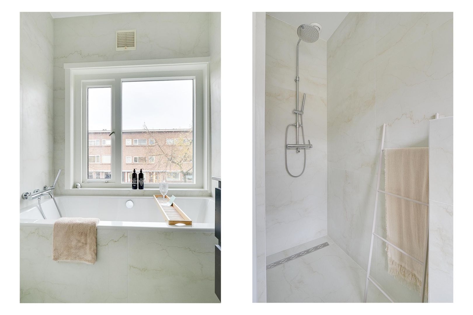 Op de eerste verdieping bevinden zich drie slaapkamers, waarvan twee met vaste kasten. De badkamer is volledig vernieuwd en voorzien van stijlvol tegelwerk en een praktische indeling. Hierdoor is er ruimte ontstaan voor een ligbad, tweede toilet, inloopdouche en wastafelmeubel.