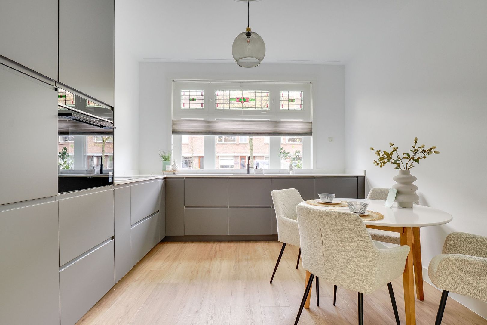 Via de woonkamer bereik je de moderne keuken (2025). Deze is volledig vernieuwd en uitgerust met alle benodigde inbouwapparatuur, waaronder een vaatwasser, combi-oven, inductiekookplaat met geïntrigeerd afzuigsysteem, Quooker en koel-/vrieskast.