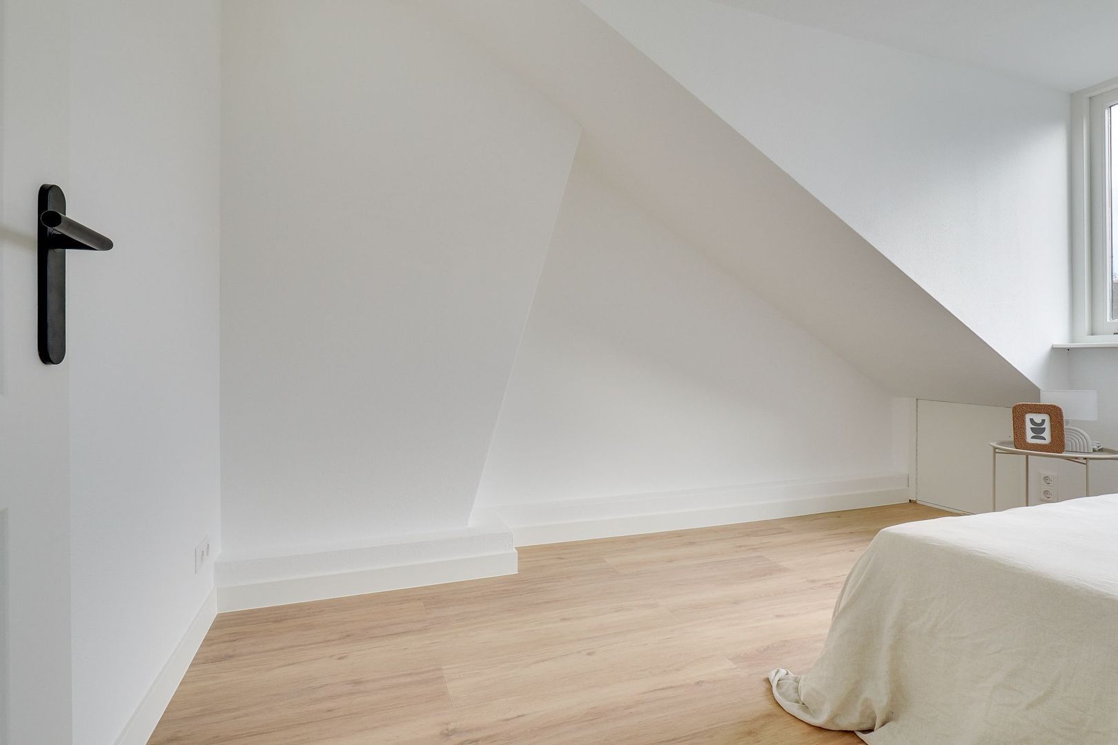 De tweede verdieping biedt een ruime zolderetage met airconditioning. Op de overloop zijn in een afgesloten ruimte aansluitingen aanwezig voor de wasmachine en droger. De voorzolder biedt mogelijkheden tot een speelhoek of lichte werkplek en is voorzien van een bergkast. Verder vind je hier nog twee slaapkamers en een praktische vliering met veel opbergruimte. Dankzij de dakkapellen aan zowel de voor- als achterzijde is deze verdieping opvallend licht en ruim.