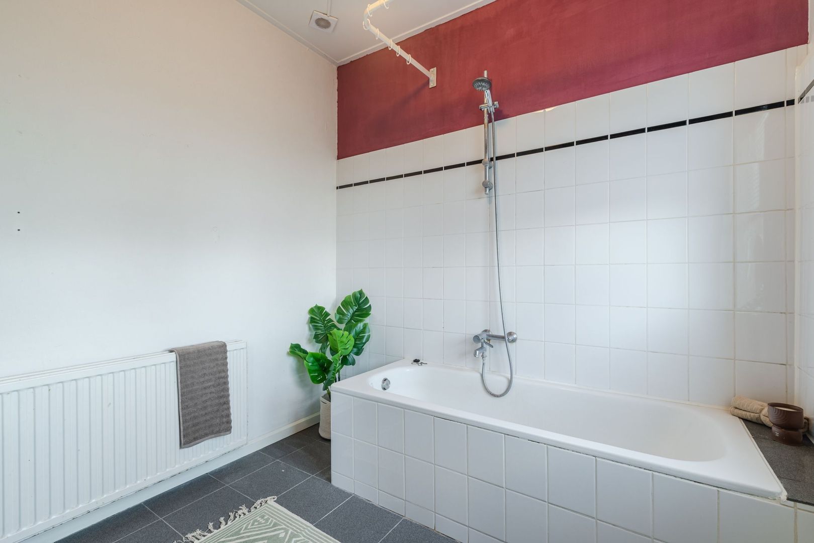 Vanaf de overloop heb je toegang tot de nette badkamer, voorzien van een ligbad, douche en dubbele wastafel.