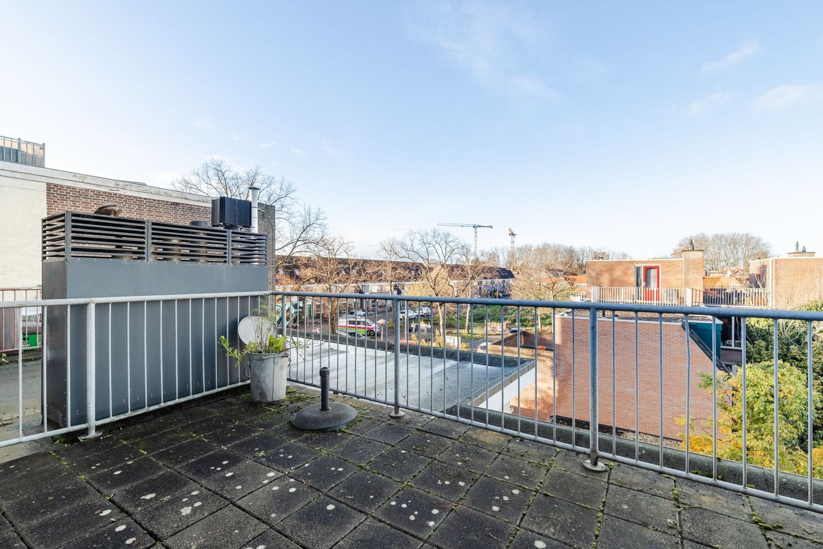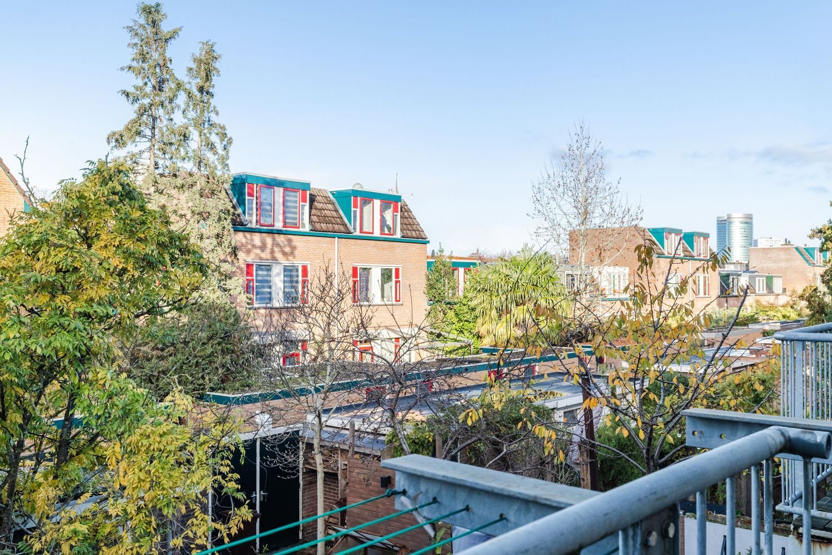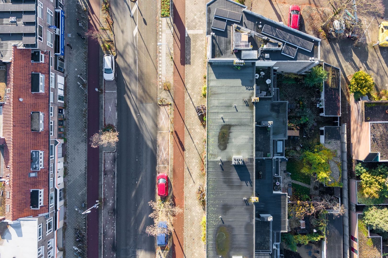 Via dezelfde overloop bereik je het royale dakterras, eveneens gelegen op het westen. Hier kun je in de zomer heerlijk genieten van rust, zon en privacy — met het bruisende centrum van Utrecht op korte afstand.