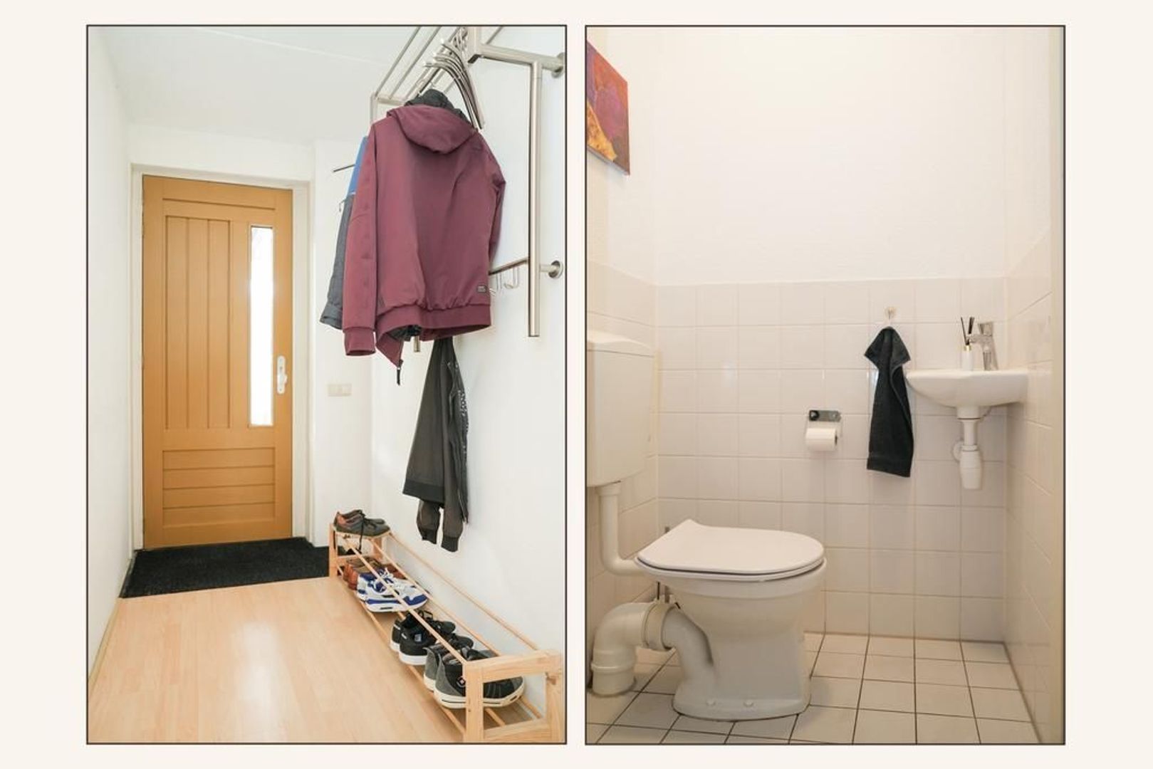 Eerste verdieping: Wanneer je bij de woning aan komt heb je direct de loggia / voortuin hier heb je de middag- en avondzon. Entree met meterkast, opbergkast en separaat toilet. De woonkamer is ruim van formaat en fijn licht door de verschillende raampartijen. Er is hier voldoende ruimte voor een goede zithoek en een eethoek. De openkeuken is voorzien van inbouwapparatuur zoals een inductiekookplaat (2023), afzuigkap, combimagnetron, koelkast en een vaatwasser. Via de keuken is ook de voortuin te bereiken.
