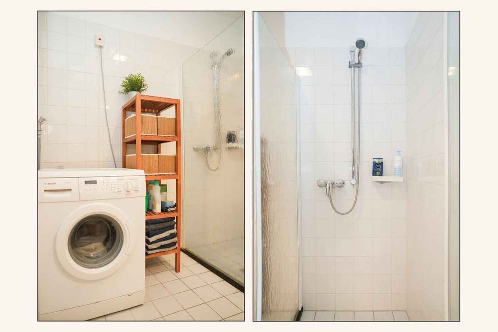 De badkamer is uitgevoerd met tegelwerk en voorzien van een inloopdouche, wastafel en de wasmachine aansluiting.