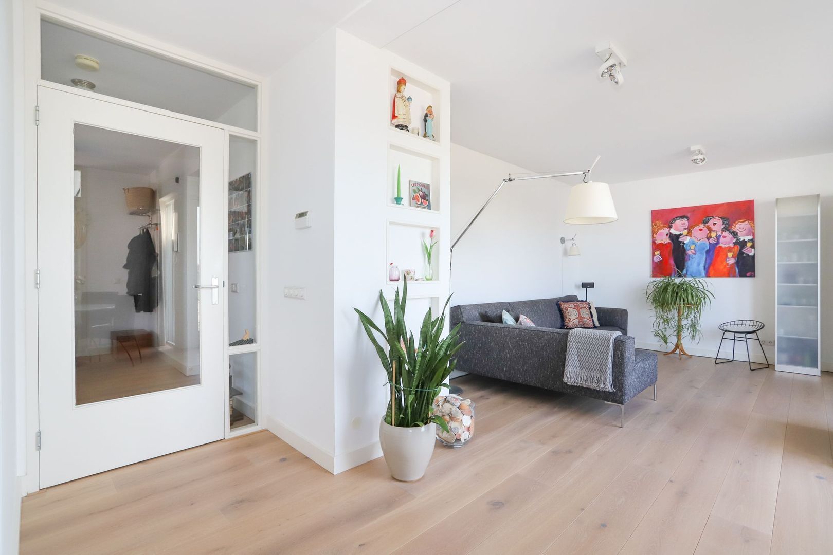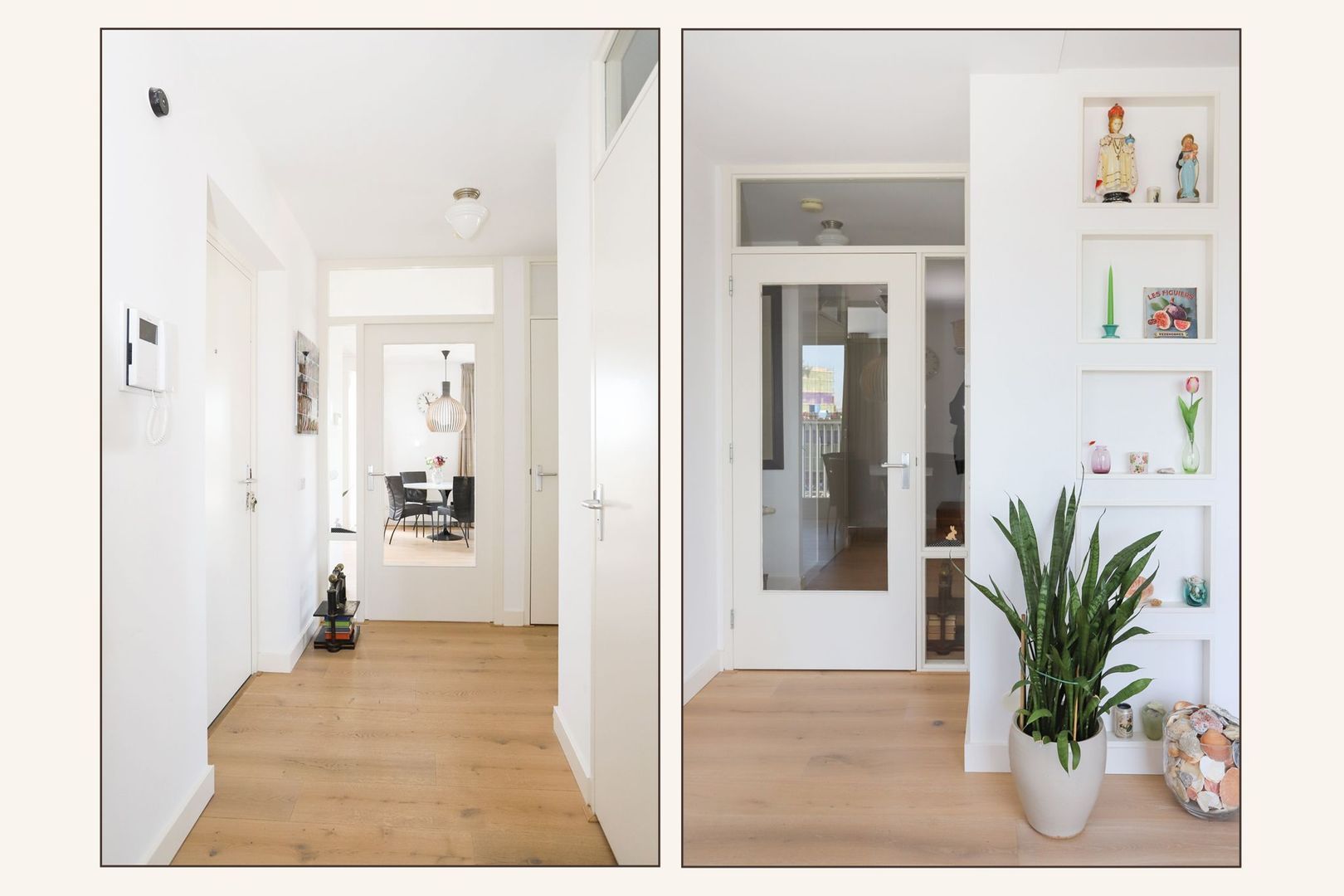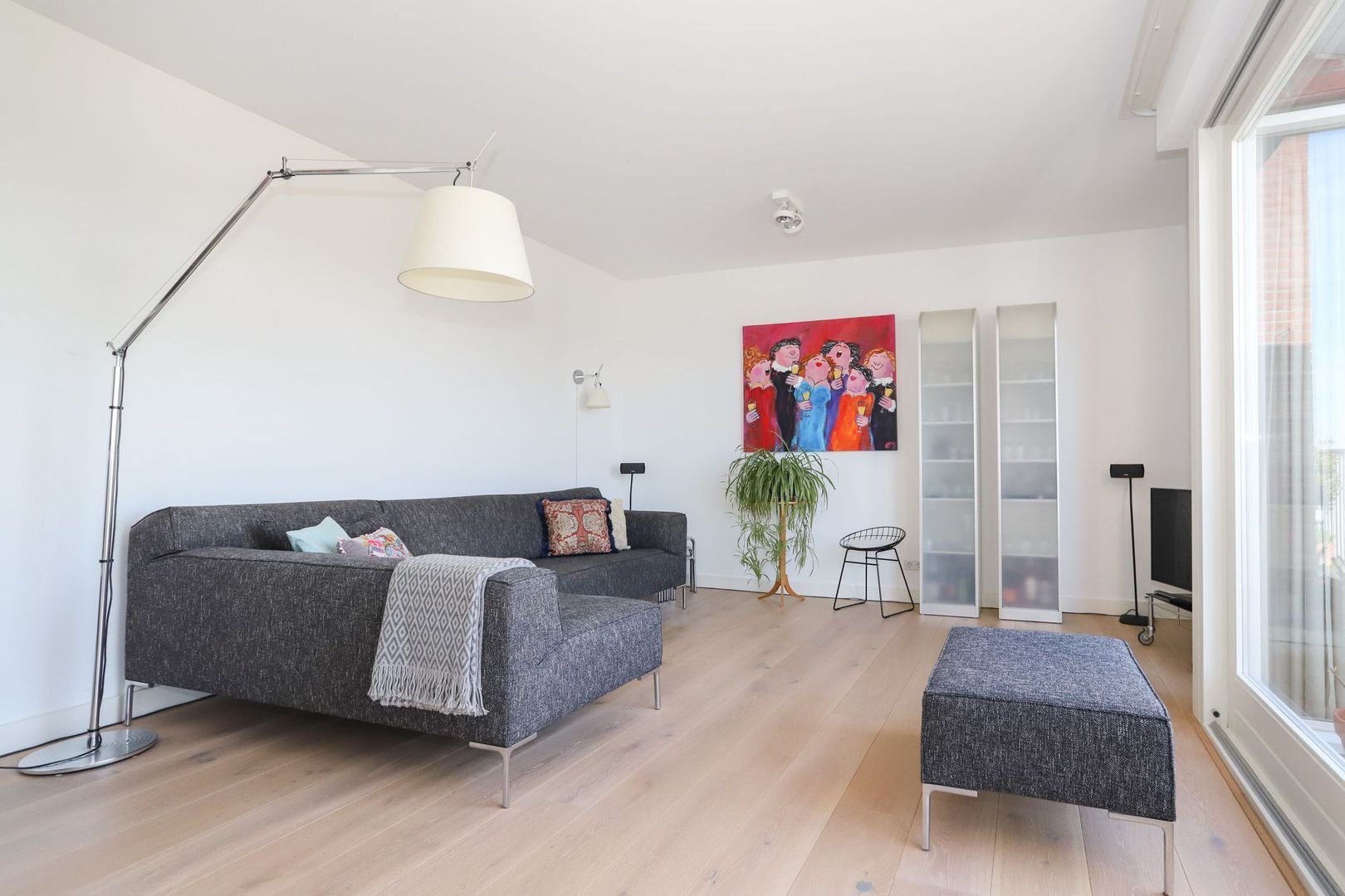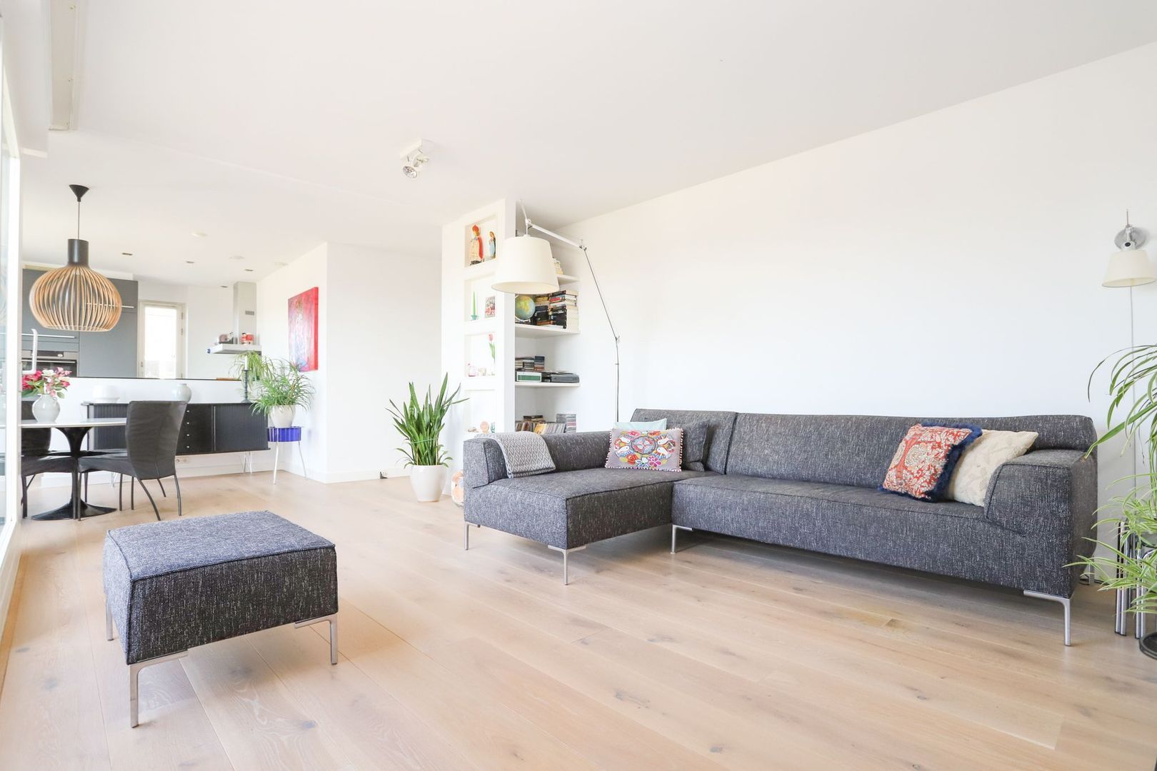 Vijfde (bovenste) verdieping: Ruime entree met videofooninstallatie, vaste kast met witgoedaansluitingen en toegang tot alle vertrekken. De woonkamer is aan de achterzijde van het complex gelegen, waardoor je door de grote raampartijen heerlijk vrij wegkijkt op het Merwedekanaal. Verder is de woonkamer comfortabel van formaat en is er meer voldoende ruimte voor een fijne zit- en eethoek waarbij verschillende indelingsvarianten mogelijk zijn. Daarnaast biedt de woonkamer toegang tot het aangename balkon die is gelegen op het zonnige zuidwesten en voorziet in privacy én een fantastisch uitzicht op het Merwedekanaal. De ligging staat garant voor heerlijk zonnige dagen. Liever de schaduw opzoeken? Door de zonwering kun je heerlijk buiten vertoeven.