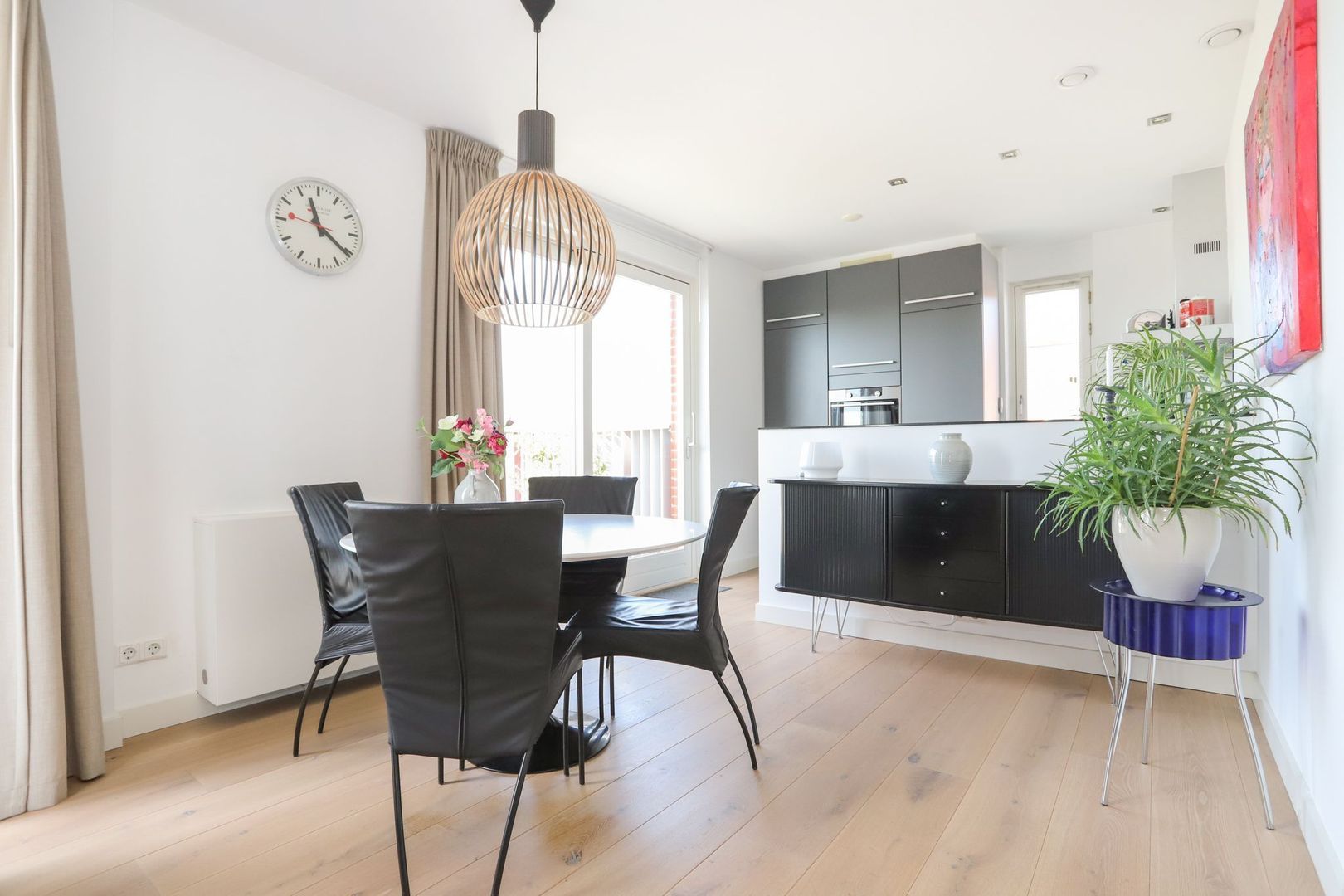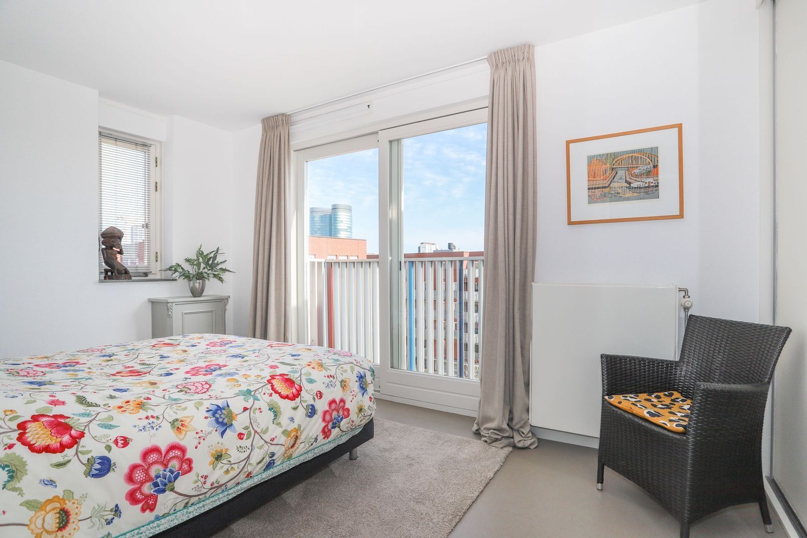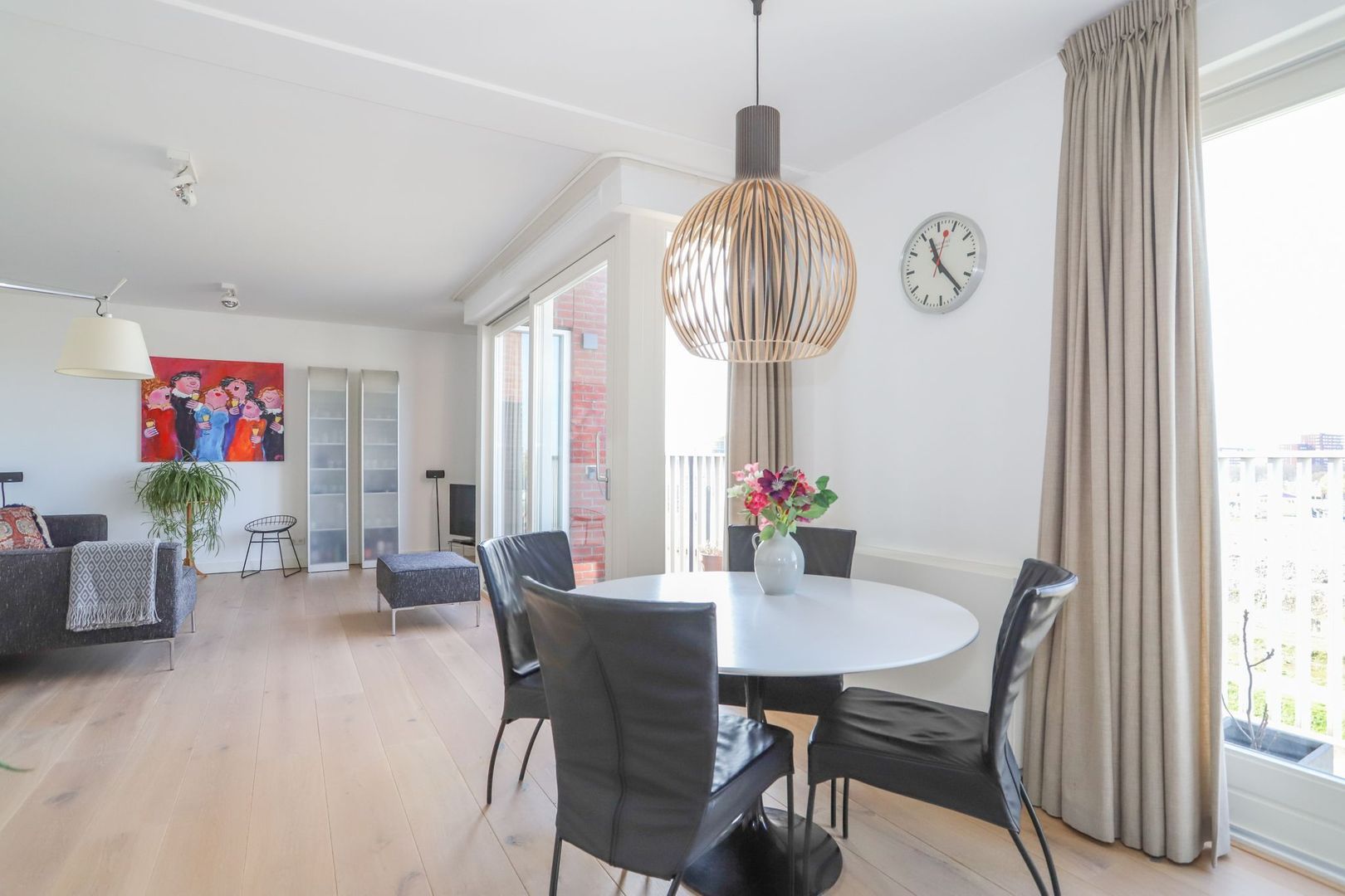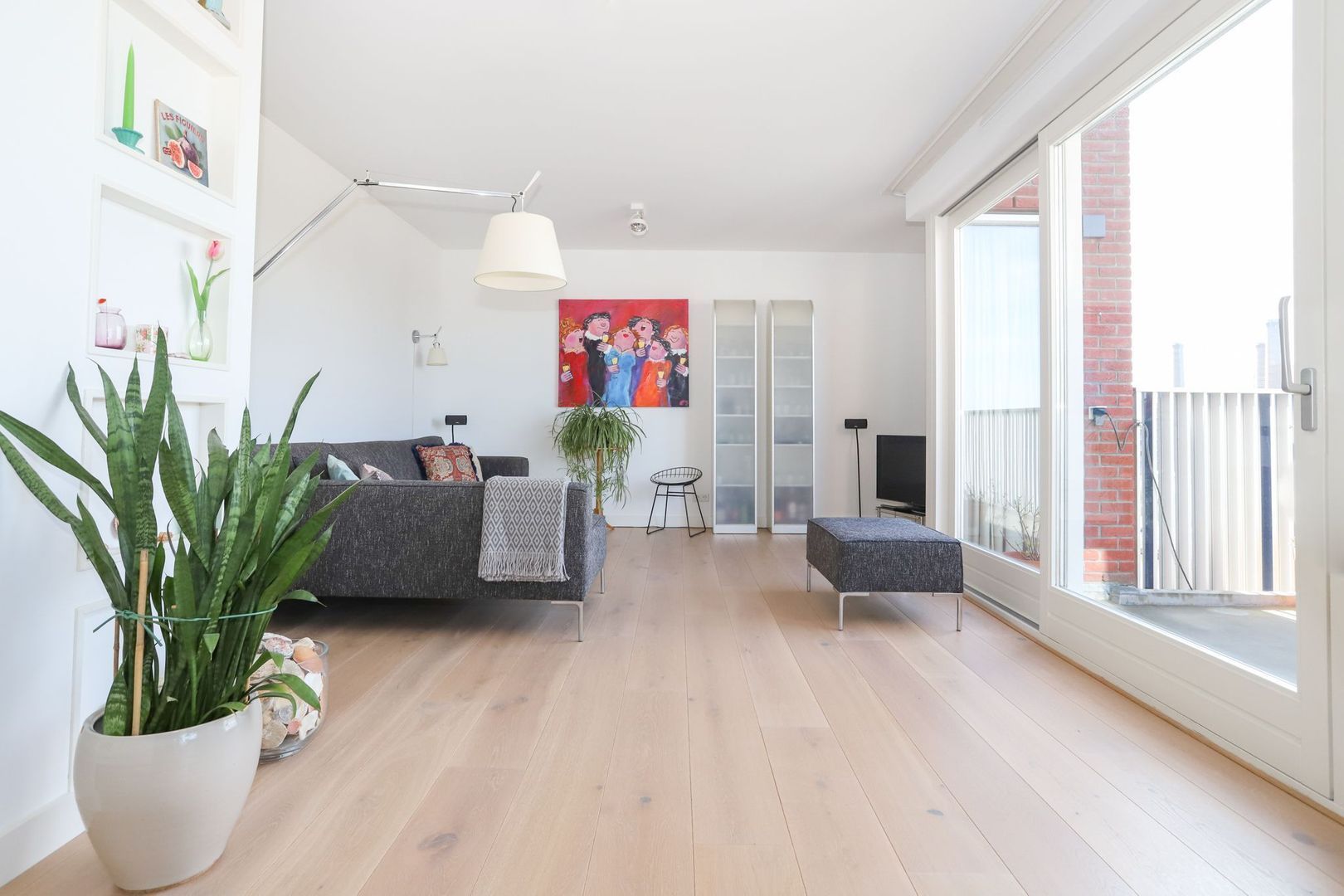 Vijfde (bovenste) verdieping: Ruime entree met videofooninstallatie, vaste kast met witgoedaansluitingen en toegang tot alle vertrekken. De woonkamer is aan de achterzijde van het complex gelegen, waardoor je door de grote raampartijen heerlijk vrij wegkijkt op het Merwedekanaal. Verder is de woonkamer comfortabel van formaat en is er meer voldoende ruimte voor een fijne zit- en eethoek waarbij verschillende indelingsvarianten mogelijk zijn. Daarnaast biedt de woonkamer toegang tot het aangename balkon die is gelegen op het zonnige zuidwesten en voorziet in privacy én een fantastisch uitzicht op het Merwedekanaal. De ligging staat garant voor heerlijk zonnige dagen. Liever de schaduw opzoeken? Door de zonwering kun je heerlijk buiten vertoeven.