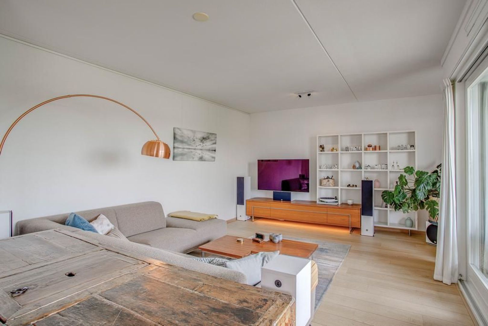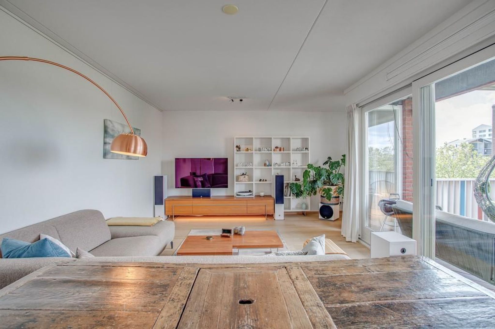 Via de schuifpuien in de woonkamer en eetkamer is het royale balkon toegankelijk. Door de ligging op het zuidwesten kan je hier heerlijk genieten van de zon en met uitzicht over het water. De zon staat vanaf het einde van de ochtend tot zonsondergang op het balkon. Hierdoor geniet jij 's avonds van een prachtige zonsondergang en ervaar je vanaf nu de paarse luchten vanaf je eigen balkon!