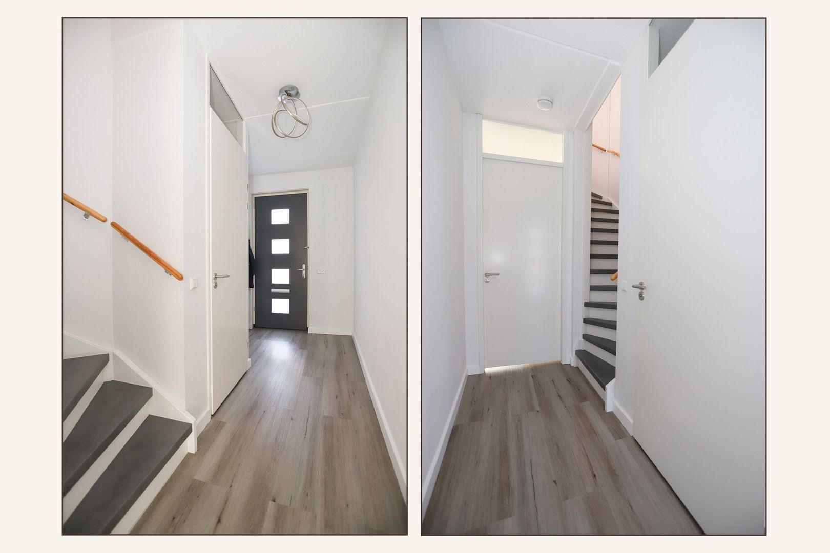 Begane grond: Ruime entree met garderobe, meterkast, separaat toilet en trapopgang naar de eerste verdieping.