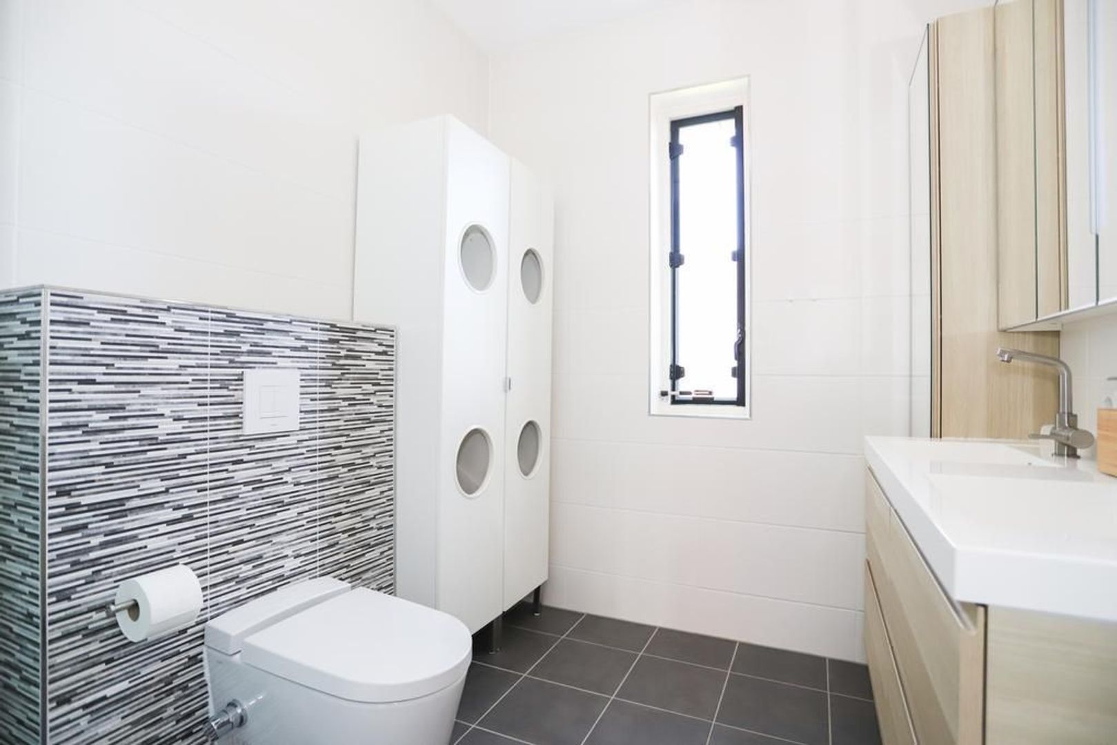 Op de eerste verdieping zijn drie slaapkamers van ruime formaat aanwezig en de moderne badkamer is uitgevoerd met een inloopdouche, dubbele wastafel en een tweede toilet.