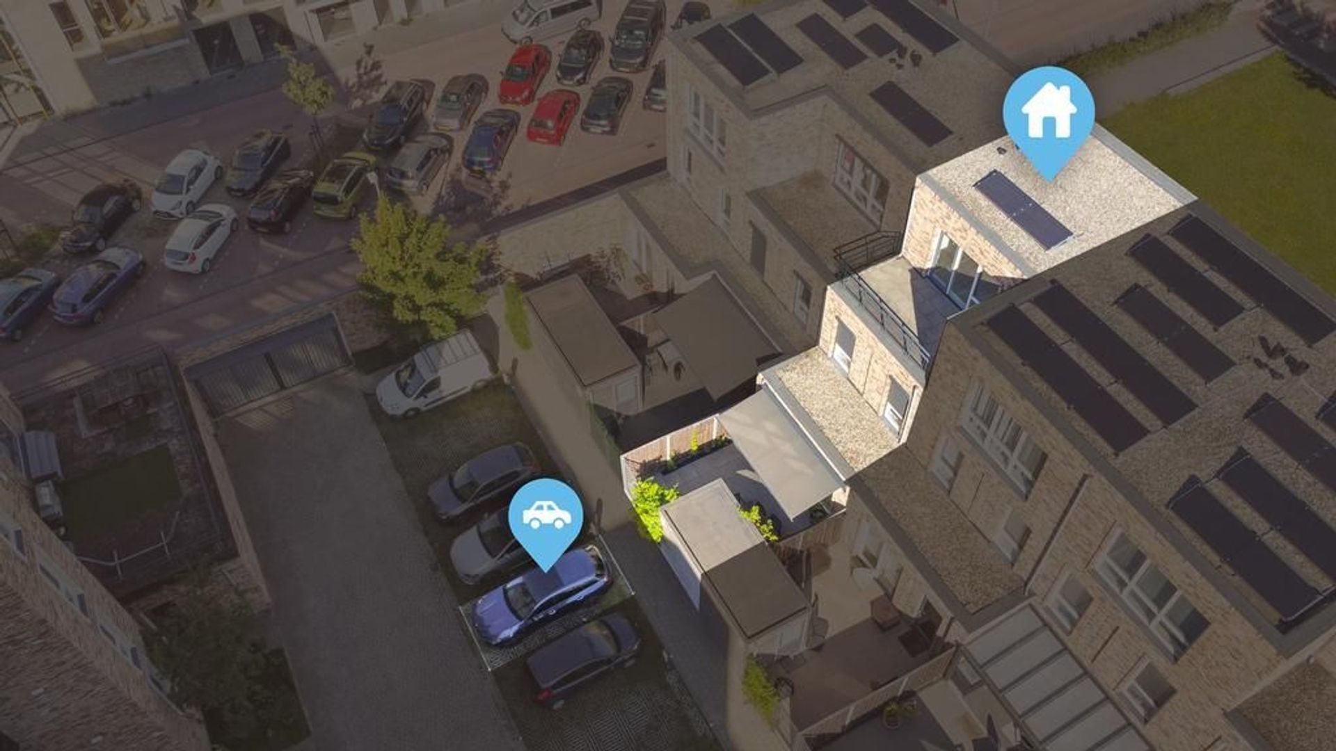 • Gratis parkeren op de openbare weg of op je eigen parkeerplaats op het afgesloten terrein (bekabeling van de