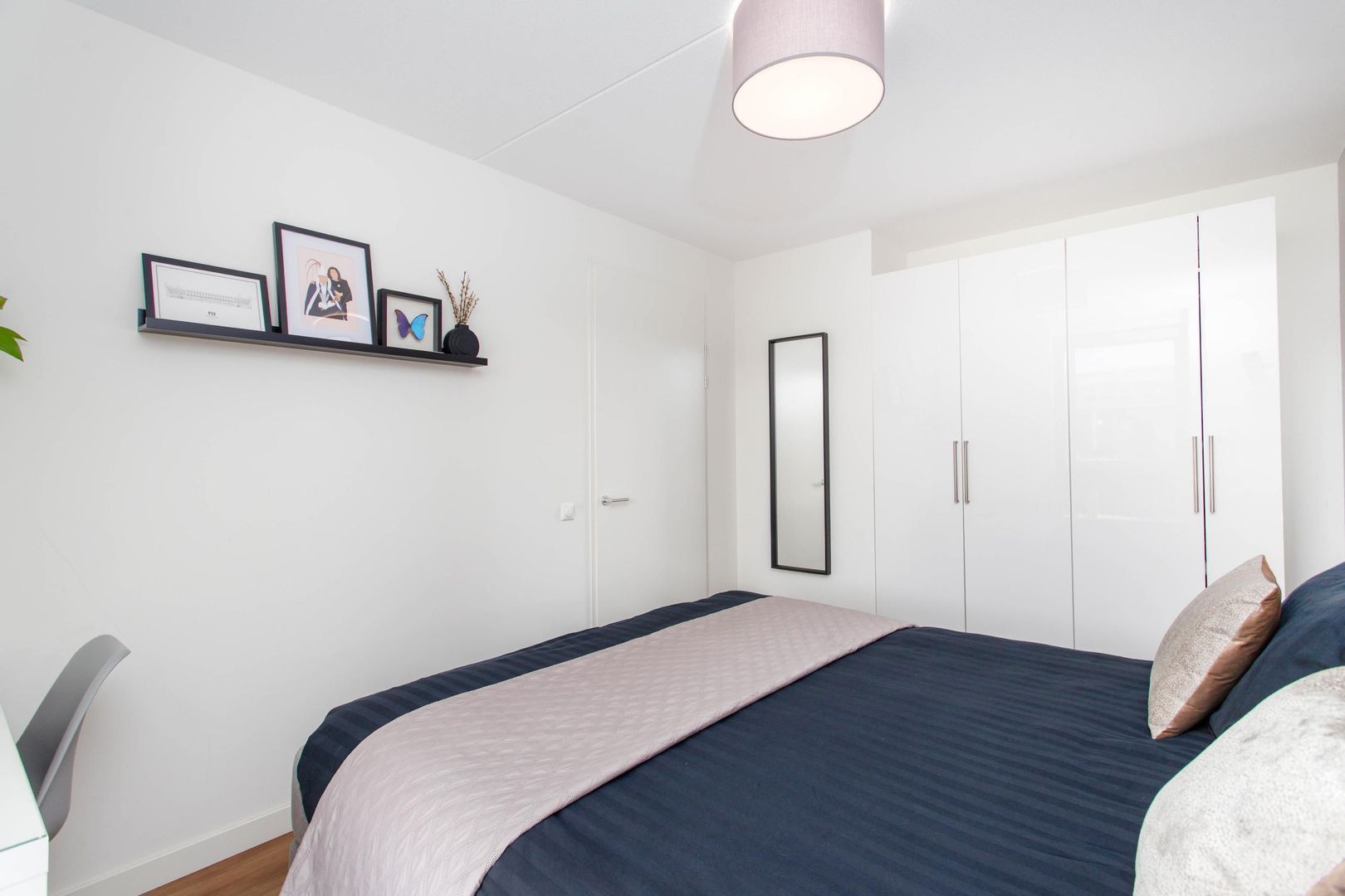 Via de hal zijn de twee ruime slaapkamers bereikbaar, die net als de rest van de woning zijn voorzien van een pvc-vloer en strak gestuukte wanden. De badkamer is ruim van formaat en beschikt over een inloopdouche en wastafel. Het separate toilet en de inpandige berging met aansluiting voor de wasmachine completeren het appartement.