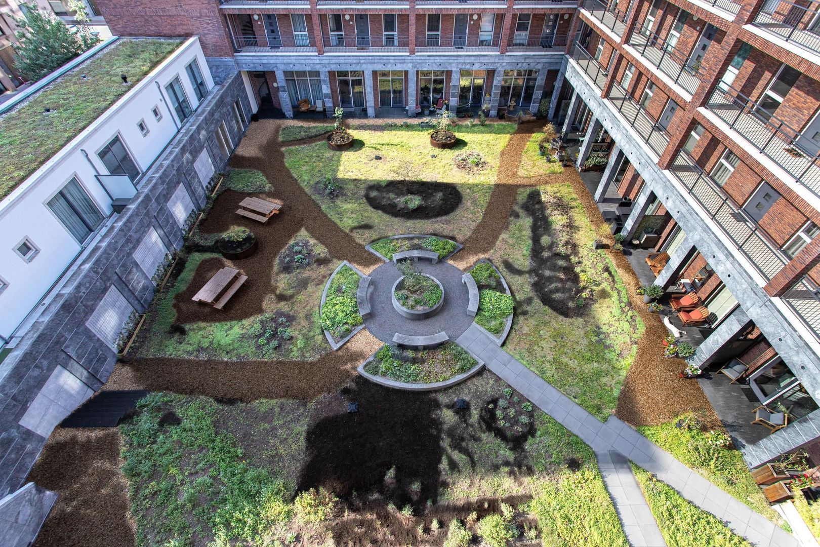 Gezamenlijke entree met video-intercom, brievenbussen, trappenhuis en lift. Op deze verdieping bevindt zich tevens de gemeenschappelijke binnentuin. Zowel met de trap als met de lift is de onderbouw bereikbaar, waar de parkeerplaats en berging zijn gelegen.