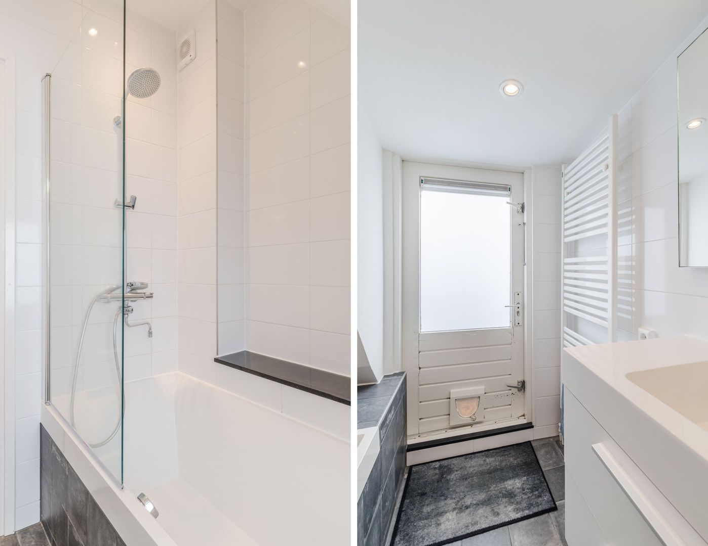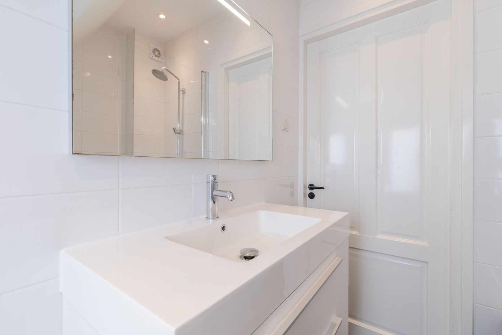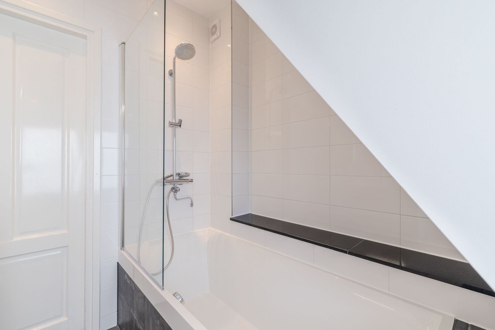 De moderne badkamer is voorzien van een groot bad, regendouche en wastafel, en biedt directe toegang tot het ruime dakterras van 23 m² – een heerlijke plek om van ’s ochtends tot ’s avonds van de zon en het uitzicht te genieten. De gehele verdieping is afgewerkt met een verzorgde laminaatvloer.