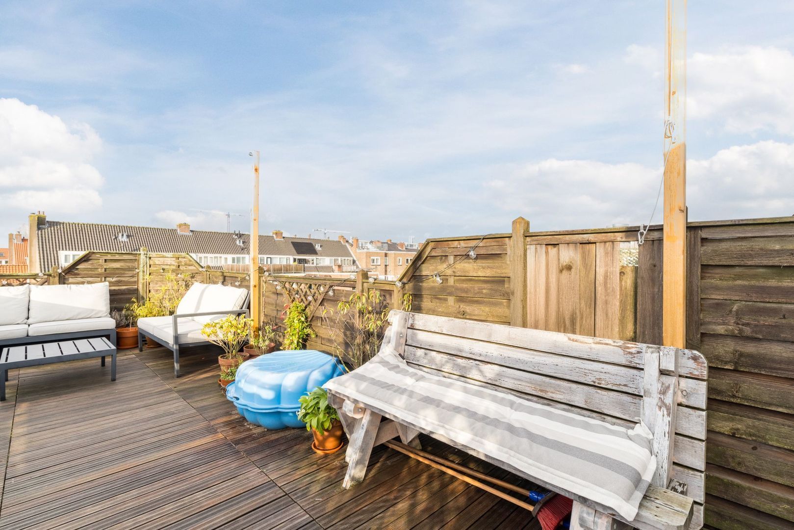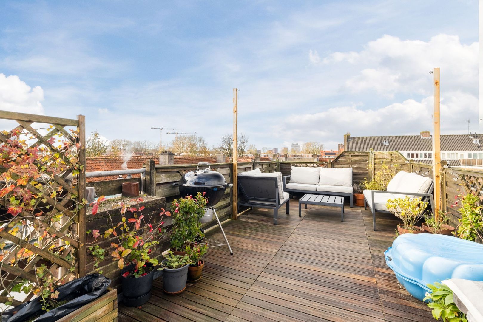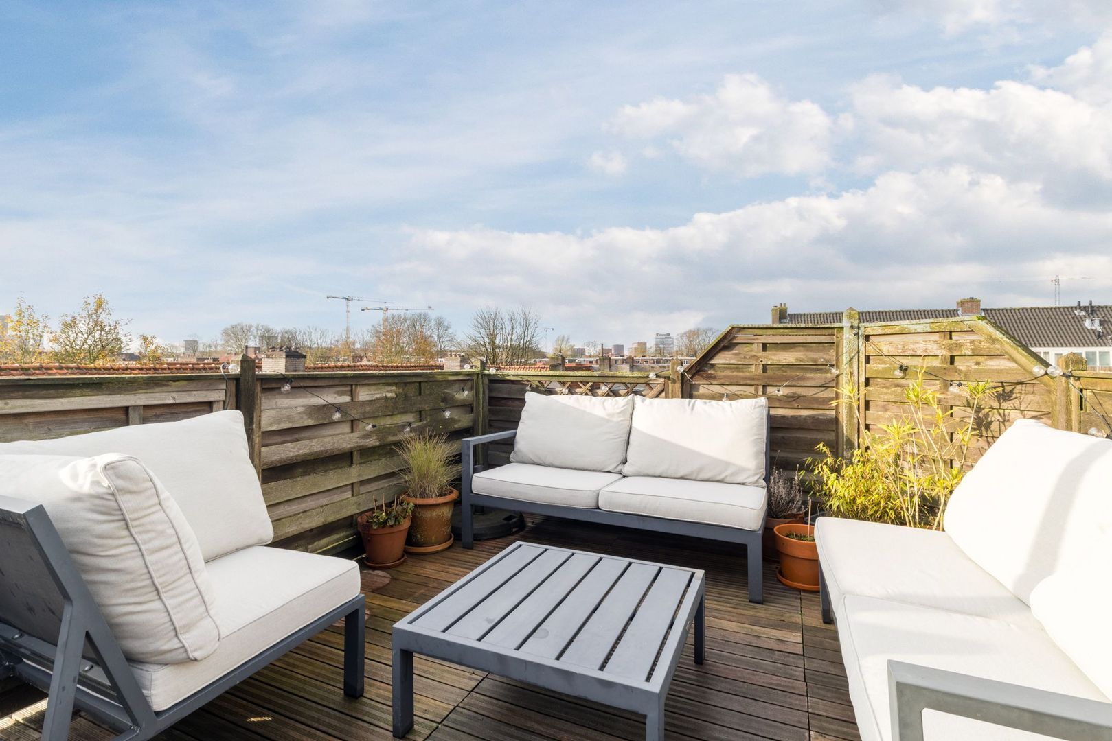 Op de slaapverdieping zijn maar liefst drie slaapkamers aanwezig. Dit, in combinatie met de zolderkamer, maakt dat deze bovenwoning qua woonruimte – zowel binnen als buiten – niet onderdoet voor een gezinswoning in de stad. De badkamer is uitgevoerd met verzorgd tegelwerk, een ligbad en een wastafel met meubel. Tevens geeft de badkamer toegang tot het fantastische dakterras, dat vrijwel de hele dag zon heeft en een prachtig uitzicht biedt. De deur naar het terras is recentelijk vervangen. Het terras is voorzien van verzorgde vlonderdelen en heeft geen direct aangrenzende buren.