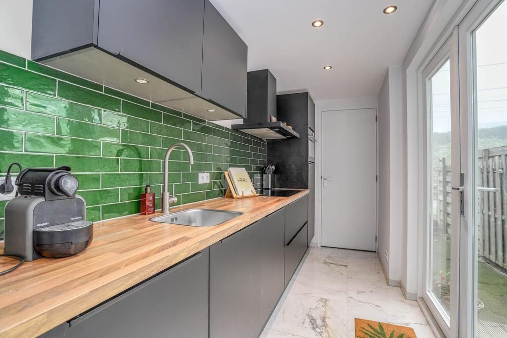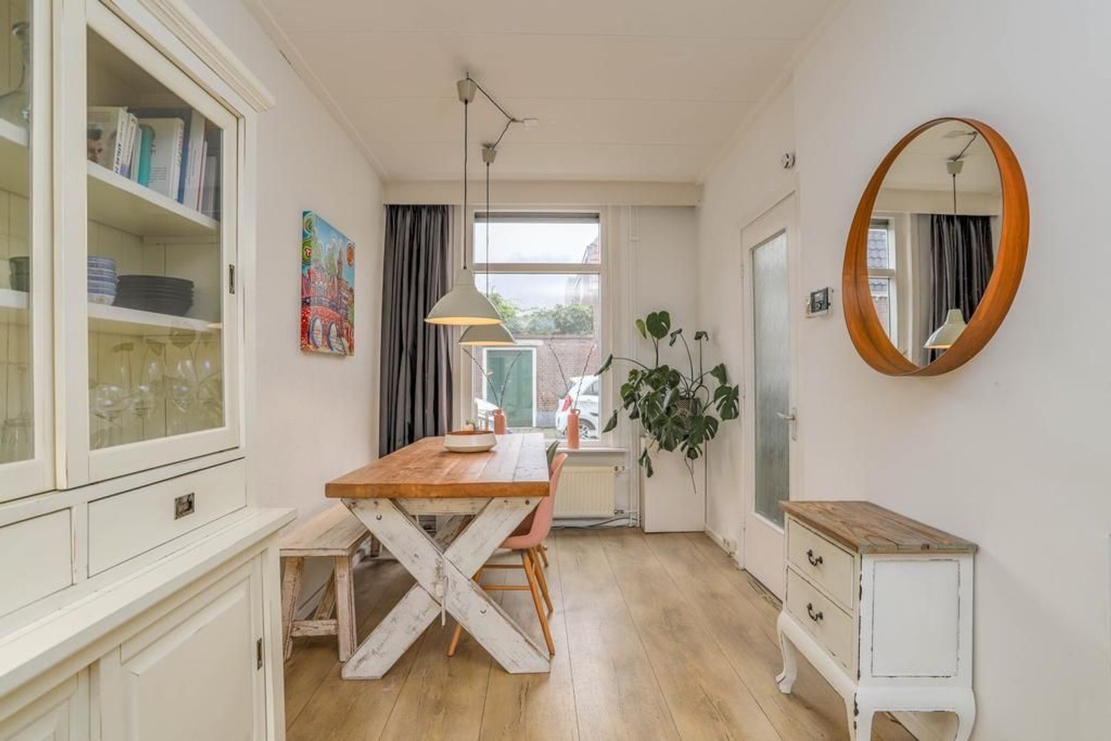 Wanneer je de woning met de karakteristieke voorgevel binnenloopt, kom je direct in de hal. In de hal bevindt zich de meterkast, evenals de trapopgang en de deur naar de eet-/woonkamer. De eetkamer biedt de perfecte plek voor een lange eettafel, waar heerlijk gedineerd kan worden met uitzicht op de gezellige straat. De woonkamer heeft een prettige lichtinval door de grote ramen op het zuidwesten, die uitkijken op de tuin. Aansluitend vind je de in 2020 gemoderniseerde keuken. De zwarte keuken met een hout-look blad kenmerkt zich door de unieke groene tegels op de wand en de witmarmeren vloer. De keuken is voorzien van de volgende inbouwapparatuur: wasbak, vaatwasser, inductiekookplaat, afzuigkap, combi-oven en koelkast. Achter in de keuken vind je het toilet. Via de keuken bereik je met openslaande deuren de tuin met berging. In de tuin kunnen gezellige zithoekjes worden gecreëerd met vrij uitzicht naar achteren.