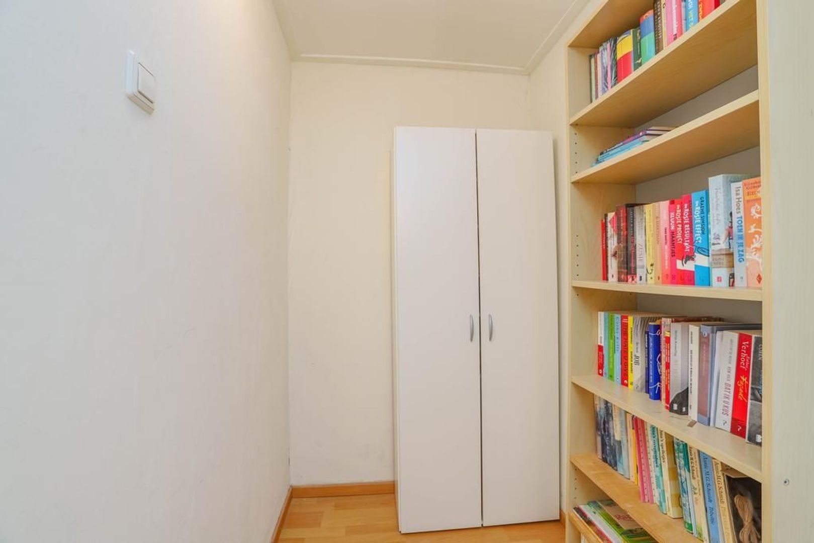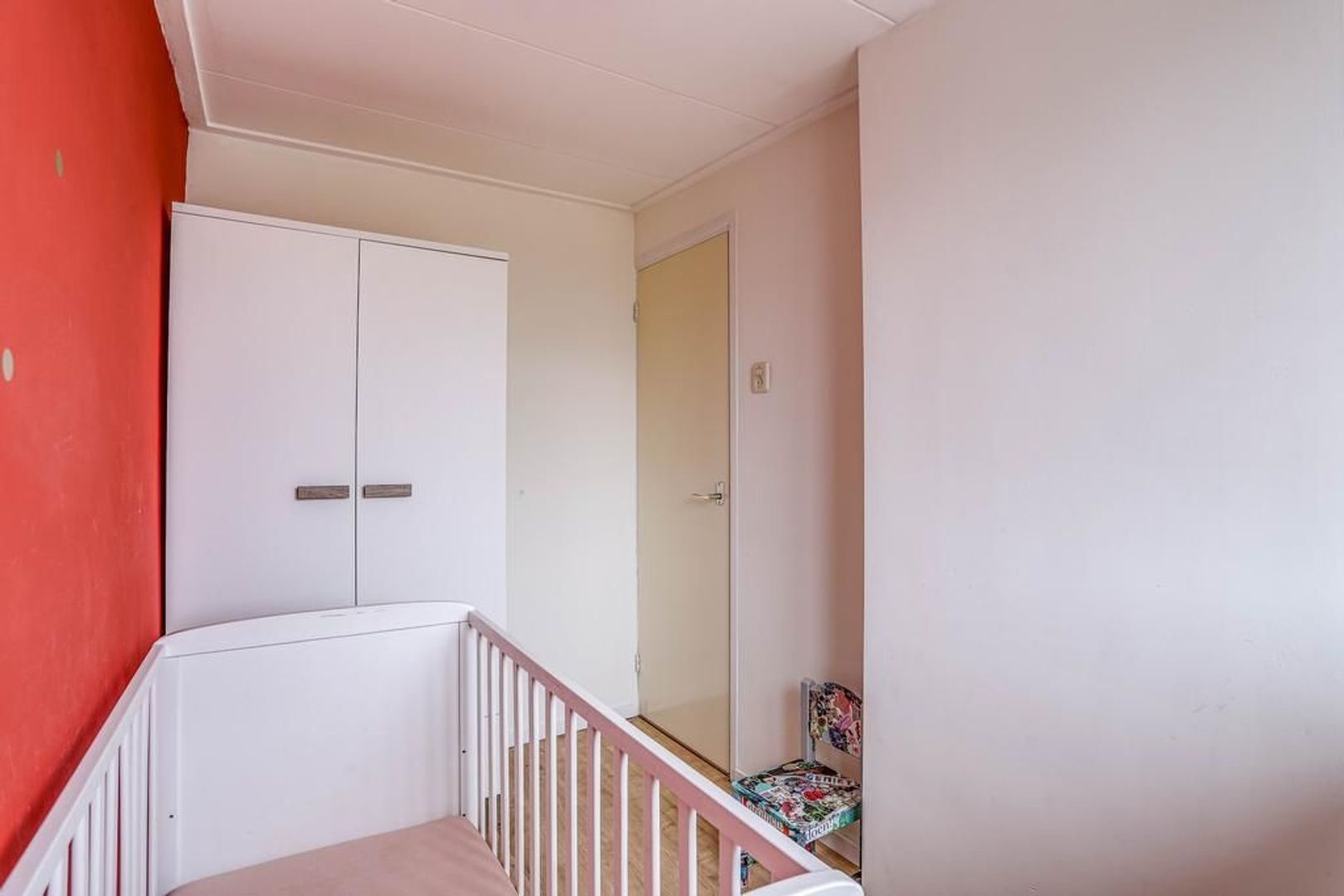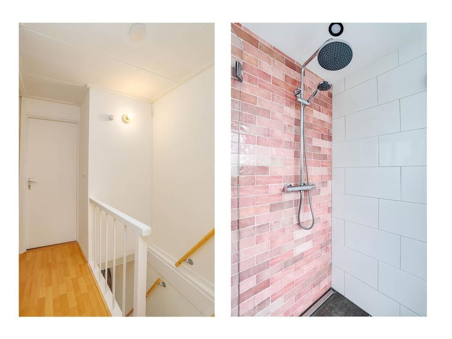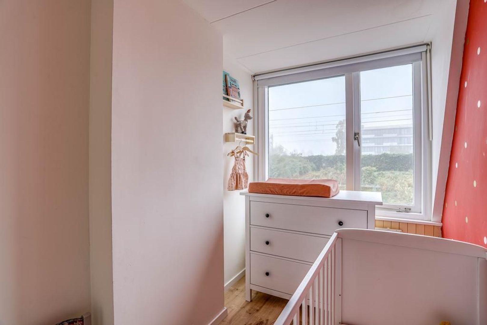 De overloop geeft toegang tot de twee slaapkamers en de badkamer. De grote slaapkamer ligt aan de voorzijde van de woning en heeft een inbouwkast. De tweede slaapkamer ligt aan de achterzijde van de woning en kijkt uit op de achtertuin. De in 2020 gerenoveerde badkamer is erg modern en voorzien van een douche, toilet, wastafel, wastafelmeubel en wasmachine aansluiting. Op de overloop is er een handig hoekje waar kasten zouden kunnen worden geplaatst om zo een inloopkast creëren.