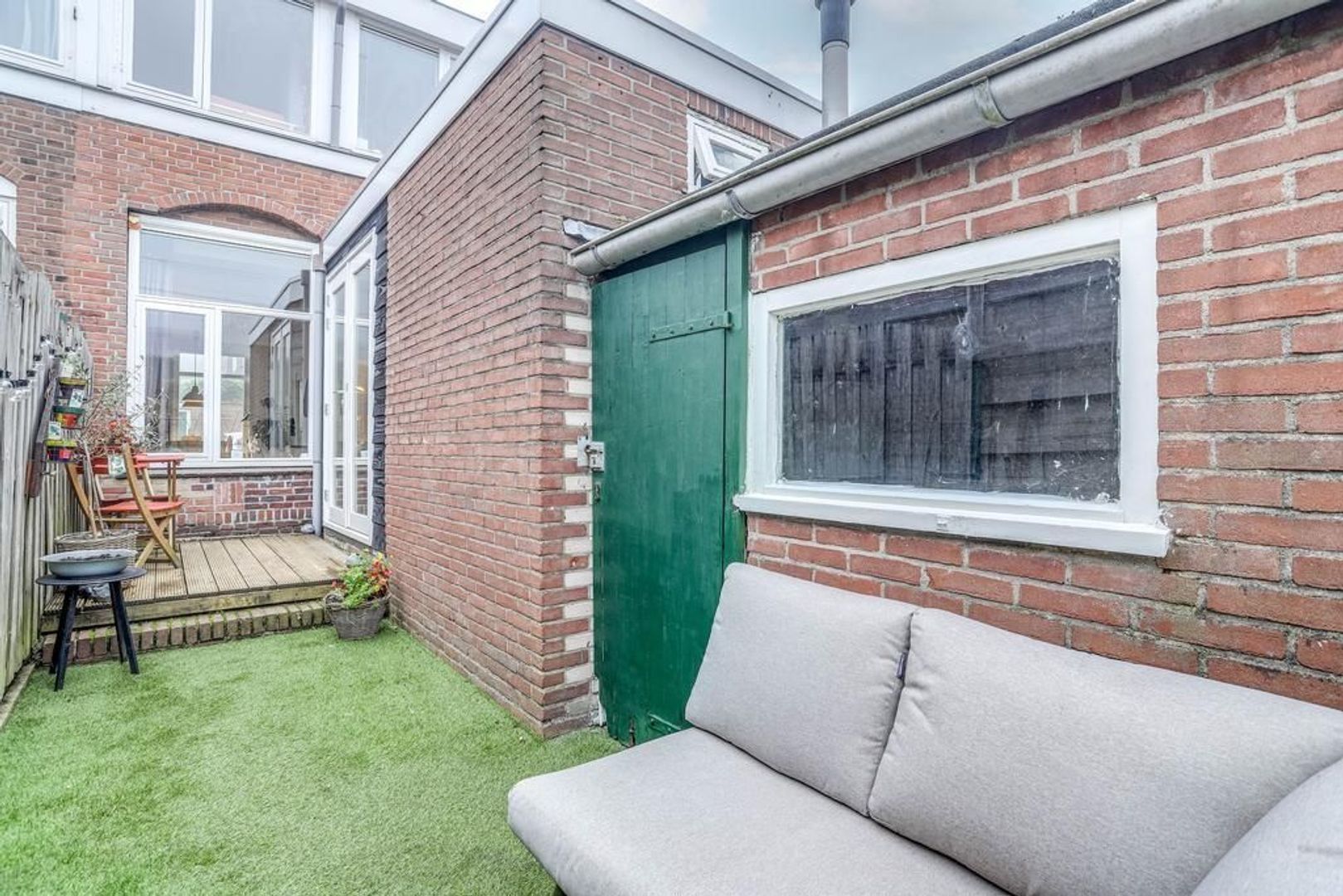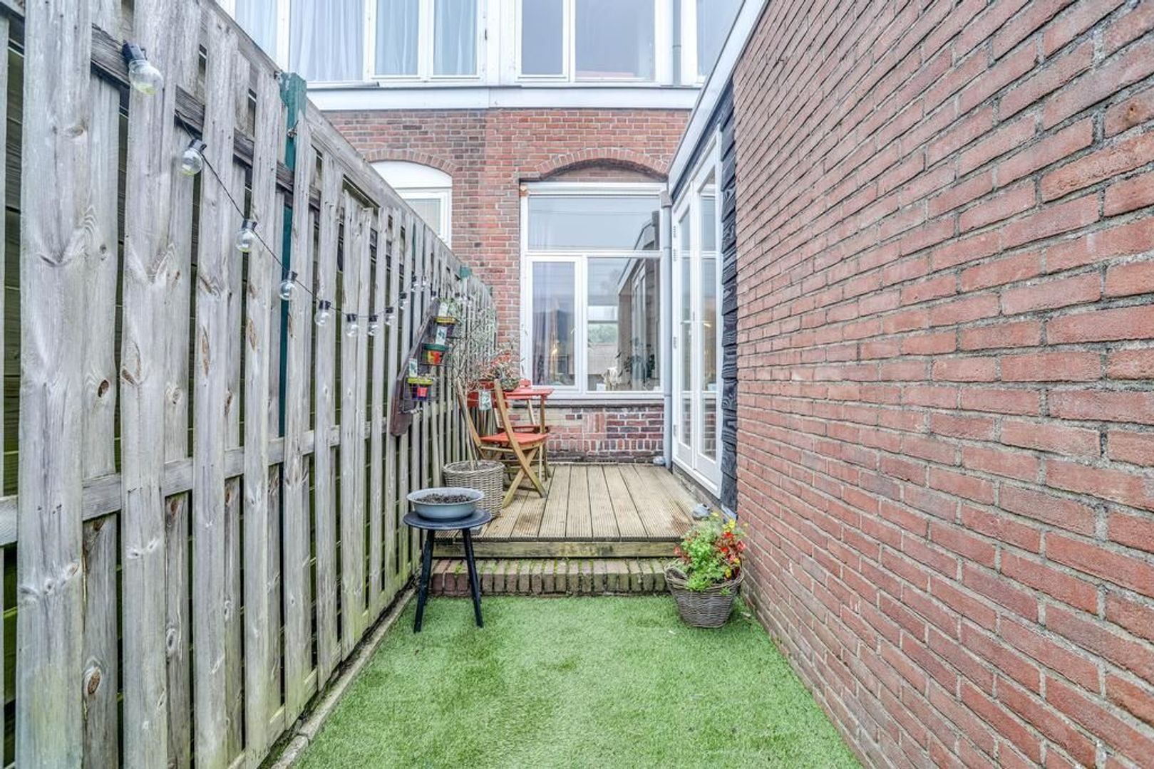 De lichte woonkamer is van een aangenaam formaat en heeft prachtige hoge plafonds. In de uitbouw vind je een moderne keuken, die ook toegang biedt tot het toilet en de achtertuin. De tuin, gelegen op het zuidwesten en uitgerust met een berging, is een heerlijke plek waar je van de middag tot de avond heerlijk kunt genieten van de zon. Op de bovenverdieping zijn er naast twee slaapkamers een functionele badkamer en een ruime overloop.
